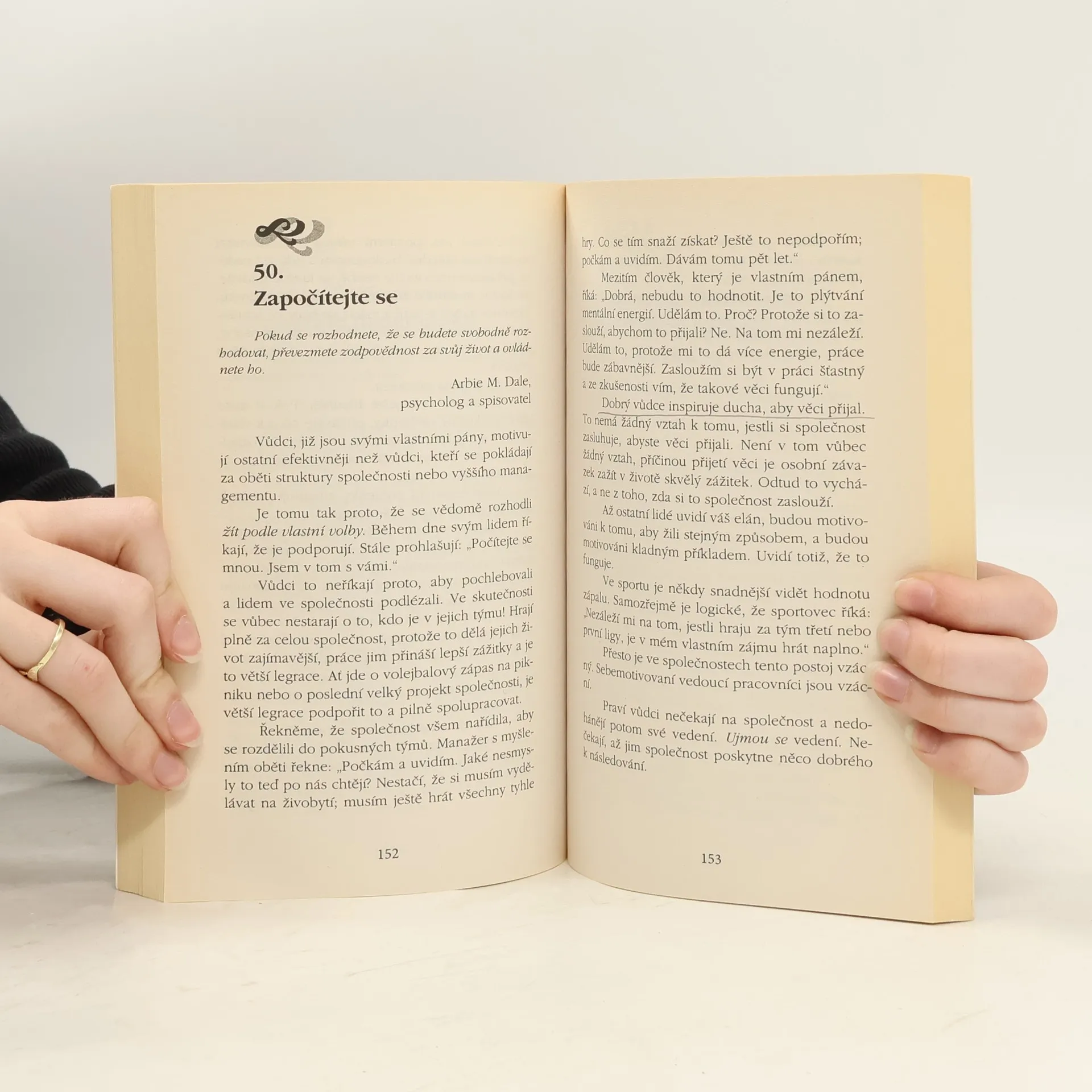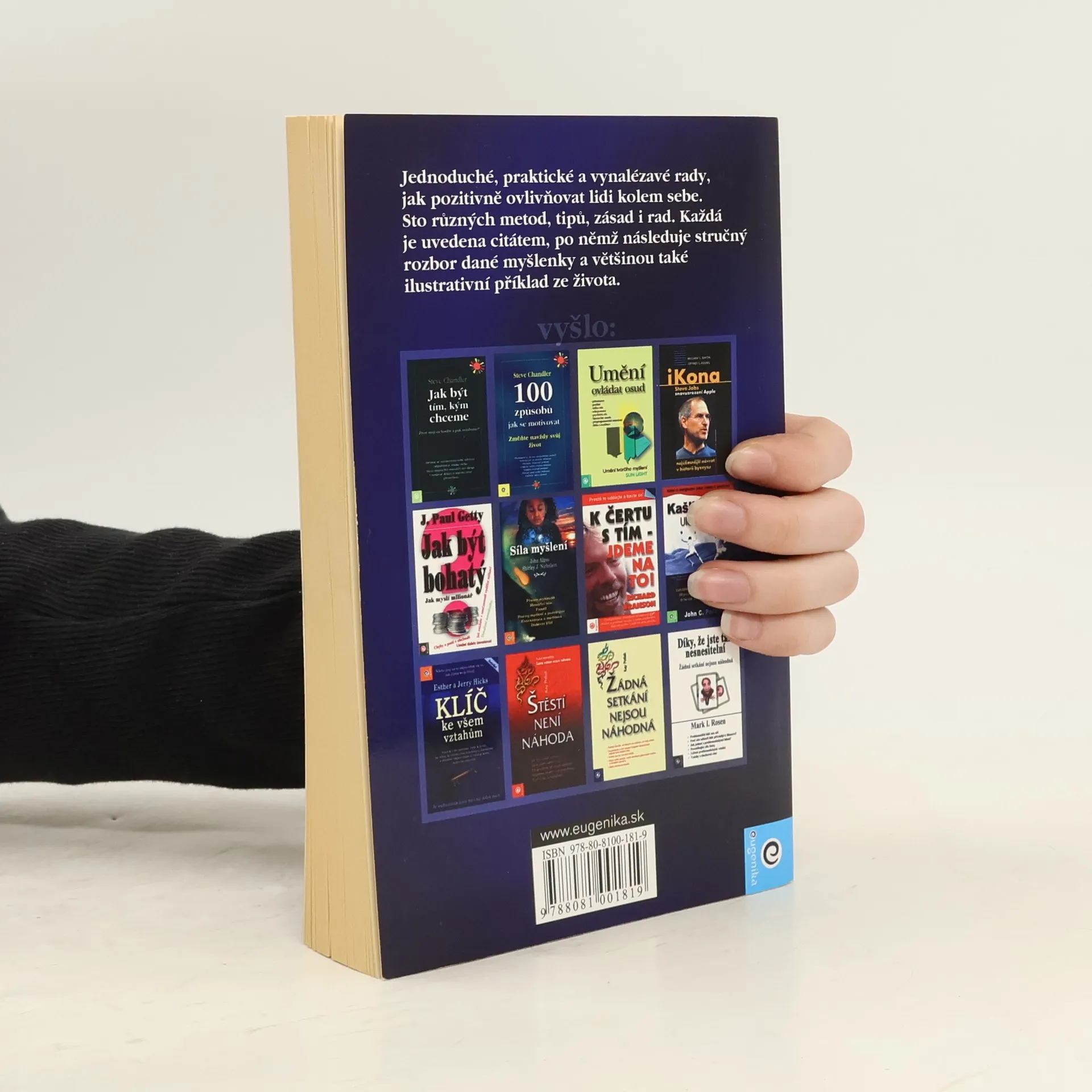 Jednoduché, praktické a vynalézavé rady, jak pozitivně ovlivňovat lidi kolem sebe. Sto různých metod, tipů, zásad i rad. Každá je uvedena citátem, po němž následuje stručný rozbor dané myšlenky a většinou také ilustrativní příklad ze života.