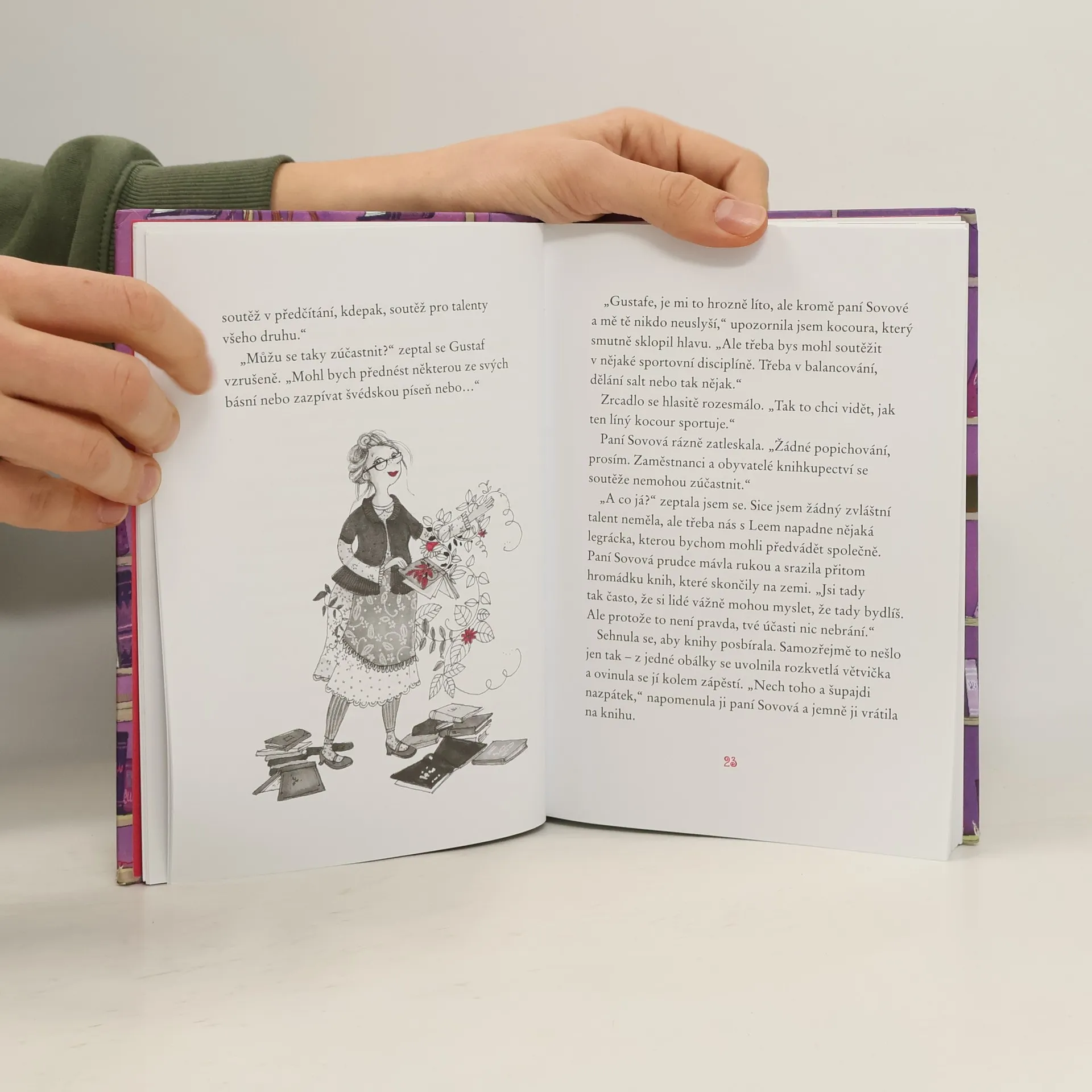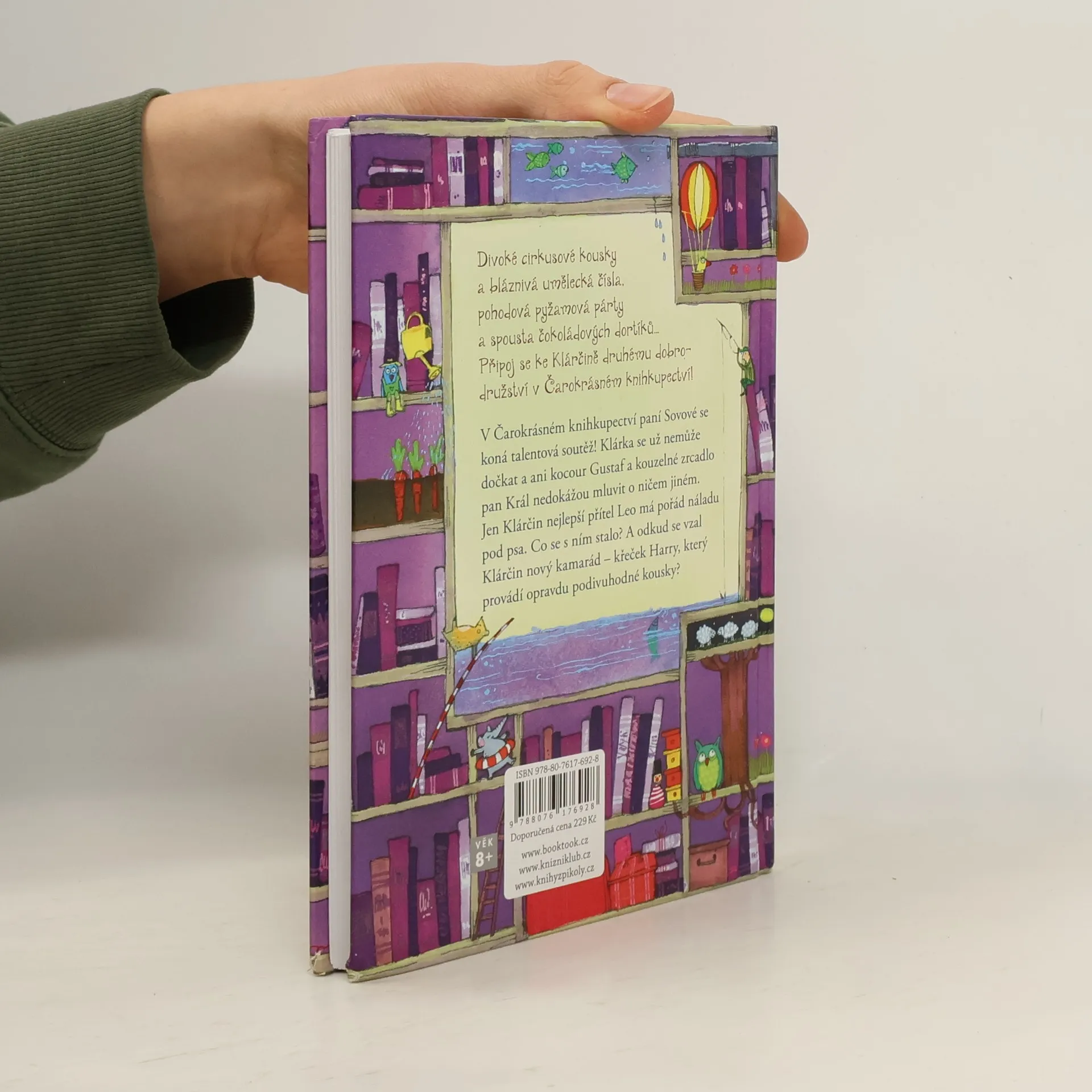 Divoké cirkusové kousky a bláznivá umělecká čísla, pohodová pyžamová párty a spousta čokoládových dortíků – připoj se Klárčině druhému dobrodružství v Čarokrásném knihkupectví! V Čarokrásném knihkupectví paní Sovové se koná talentová soutěž! Klárka už se nemůže dočkat a ani kocour Gustaf a kouzelné zrcadlo pan Král nedokážou mluvit o ničem jiném. Jen Klárčin nejlepší přítel Leo má pořád náladu pod psa. Co se s ním stalo? A odkud se vzal Klárčin nový kamarád – křeček Harry, který provádí opravdu podivuhodné kousky? Kniha je určena pro čtenáře od 8 let.
