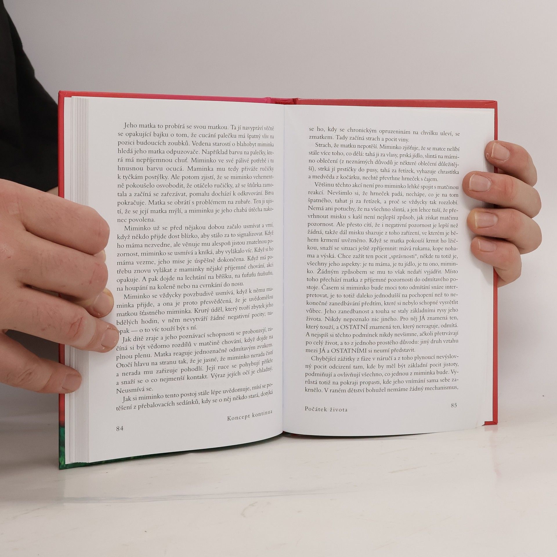 Autorka ve své světově proslulé knize odhaluje, proč jsou lidé žijící na Západě tak nespokojení a často nešťastní. Po několika expedicích mezi jihoamerické indiány rozpoznala, že tyto pocity mohou pramenit z neuspokojených potřeb miminek a malých dětí, které se na Západě snažíme vychovávat podle všemožných teorií, jen ne podle vlastní intuice a evolucí vytvořených jednoduchých pravidel a očekávání. V knize, kterou napsala již v r. 1975, velmi jasně a přesvědčivě vysvětluje, jak je potřeba zacházet s našimi nejmenšími, aby z nich vyrostly spokojené a samostatné děti a posléze dospělí lidé, kteří si nepotřebují „léčit“ své deprivace z dětství všemi možnými způsoby, počínaje drogovou závislostí a konče nezdravými partnerskými vztahy, a jsou schopni vést plnohodnotný život, jenž nebude naplněn věčnou nespokojeností a hledáním „něčeho“, co nalézt nelze. Našemu vlastnímu životu tak dává úplně nový rozměr a pomáhá lidem najít jednoduchou, a přitom málo předvídatelnou odpověď na často kladenou otázku – proč nejsme šťastní.