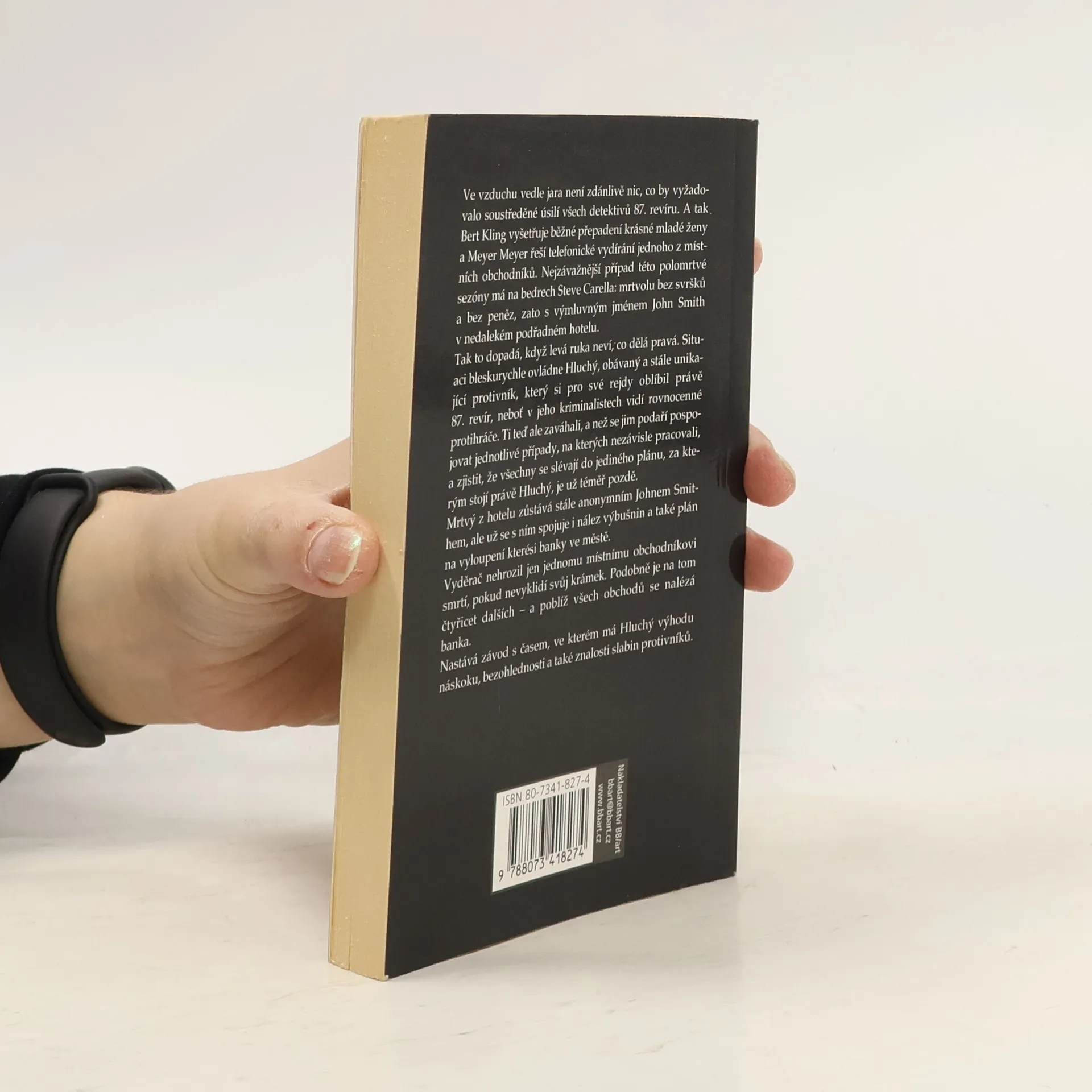 Ve vzduchu vedle jara není zdánlivě nic, co by vyžadovalo soustředěné úsilí všech detektivů 87. revíru. A tak Bert Kling vyšetřuje běžné přepadení krásné mladé ženy a Meyer Meyer řeší telefonické vydírání jednoho z místních obchodníků. Nejzávažnější případ této polomrtvé sezóny má na bedrech Steve Carella: mrtvolu bez svršků a bez peněz, zato s výmluvným jménem John Smith v nedalekém podřadném hotelu. Tak to dopadá, když levá ruka neví, co dělá pravá. Situaci bleskurychle ovládne Hluchý, obávaný a stále unikající protivník, který si pro své rejdy oblíbil právě 87. revír, neboť v jeho kriminalistech vidí rovnocenné protihráče. Ti teď ale zaváhali, a než se jim podaří pospojovat jednotlivé případy, na kterých nezávisle pracovali, a zjistit, že všechny se slévají do jediného plánu, za kterým stojí právě Hluchý, je už téměř pozdě. Mrtvý z hotelu zůstává stále anonymním Johnem Smithem, ale už se s ním spojuje i nález výbušnin a také plán na vyloupení kterési banky ve městě. Vyděrač nehrozil jen jednomu místnímu obchodníkovi smrtí, pokud nevyklidí svůj krámek. Podobně je na tom čtyřicet dalších – a poblíž obchodů všech z nich se nalézá banka. Nastává závod s časem, ve kterém má Hluchý výhodu náskoku, bezohlednosti a také znalosti slabin protivníků.