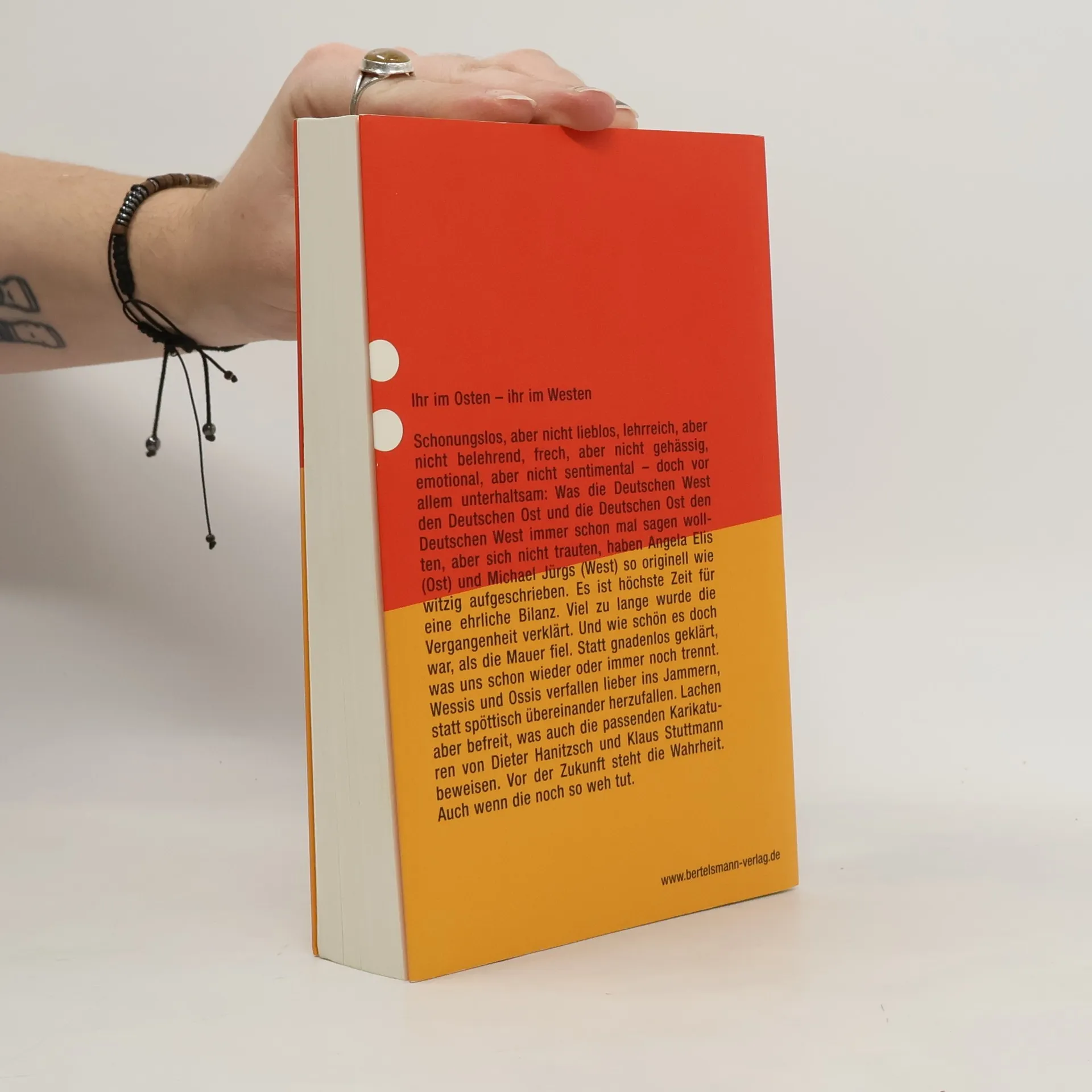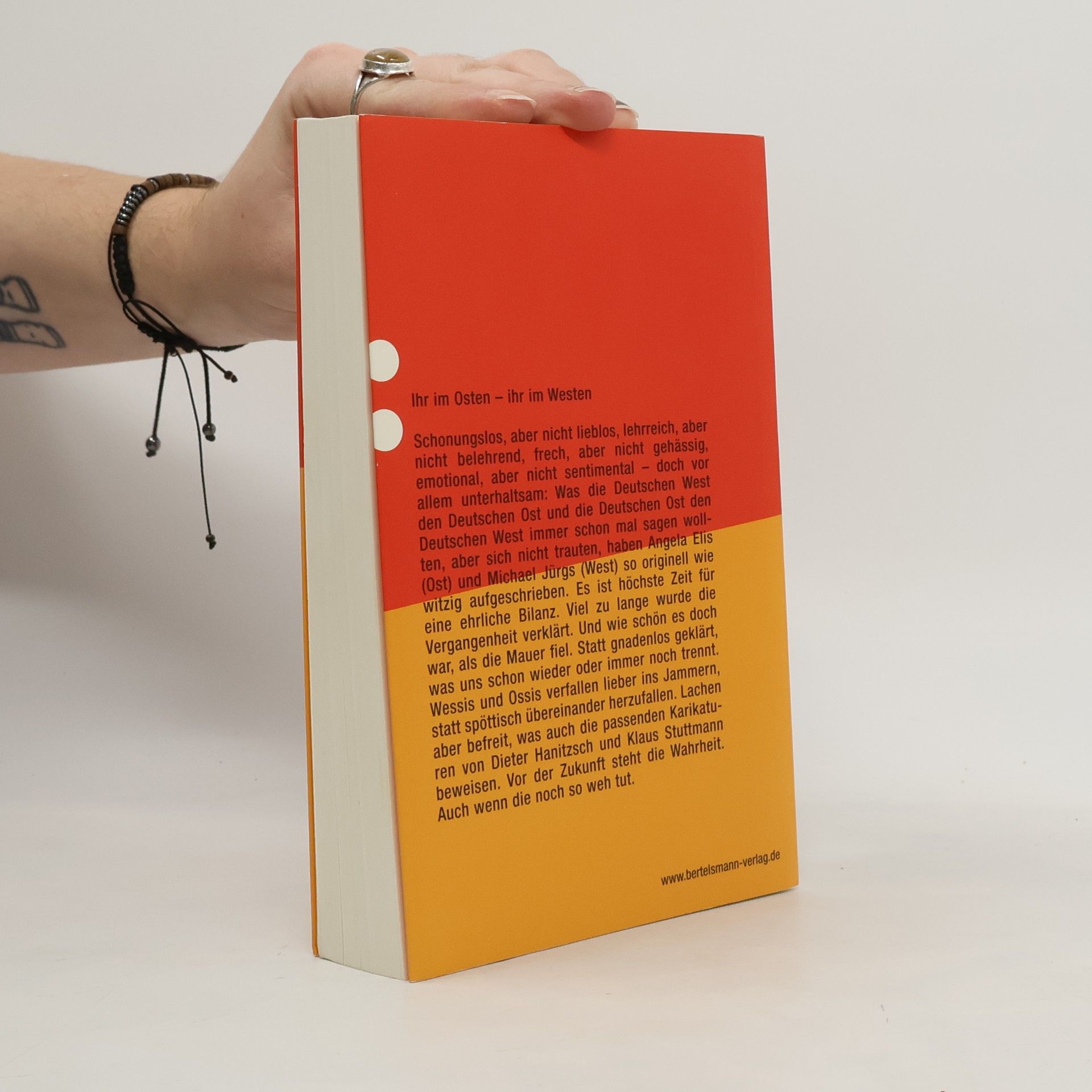 Höchste Zeit, einander den Spiegel vorzuhalten. Die einen wollen die Mauer wieder haben, die anderen wählen die Nachfolger jener Partei, die einst die DDR verrotten ließ, oder laufen gleich zu den rechten Parteien über: 15 Jahre nach der glücklichen Wiedervereinigung scheint das Verhältnis von Ossis und Wessis auf dem Tiefpunkt angelangt. Das Jammern über den jeweils anderen steht auf der Tagesordnung. Der Journalist Michael Jürgs aus Hamburg und die TV-Moderatorin Angela Elis aus Leipzig fordern mit ihrer Streitschrift ein Ende des Klagens. In einer schonungslosen Bilanz, aber niemals bierernst deutsch, sondern undeutsch ironisch konfrontieren sie die Wahrheiten Ost mit den Wahrheiten West. Harte Worte und der Mut, einander weh zu tun mit provokanten Urteilen und Vorurteilen, sind die Voraussetzungen für einen neuen Anfang. Deshalb diese längst fällige Abrechnung unter Brüdern und Schwestern nach dem Motto: raus aus dem Jammertal. Mit 20 Karikaturen von Dieter Hanitzsch und Klaus Stuttmann. Politisch unkorrekt, schonungslos, polemisch, witzig und: längst fällig! Erst wenn alle falschen Versprechen, alle Vorurteile und Schuldzuweisungen ausgesprochen sind, ist der Weg frei für Gemeinsamkeit von Ost und West. Streitbar und fundiert rechnen eine Ostlerin und ein Westler ab - für ein neues Deutschland.