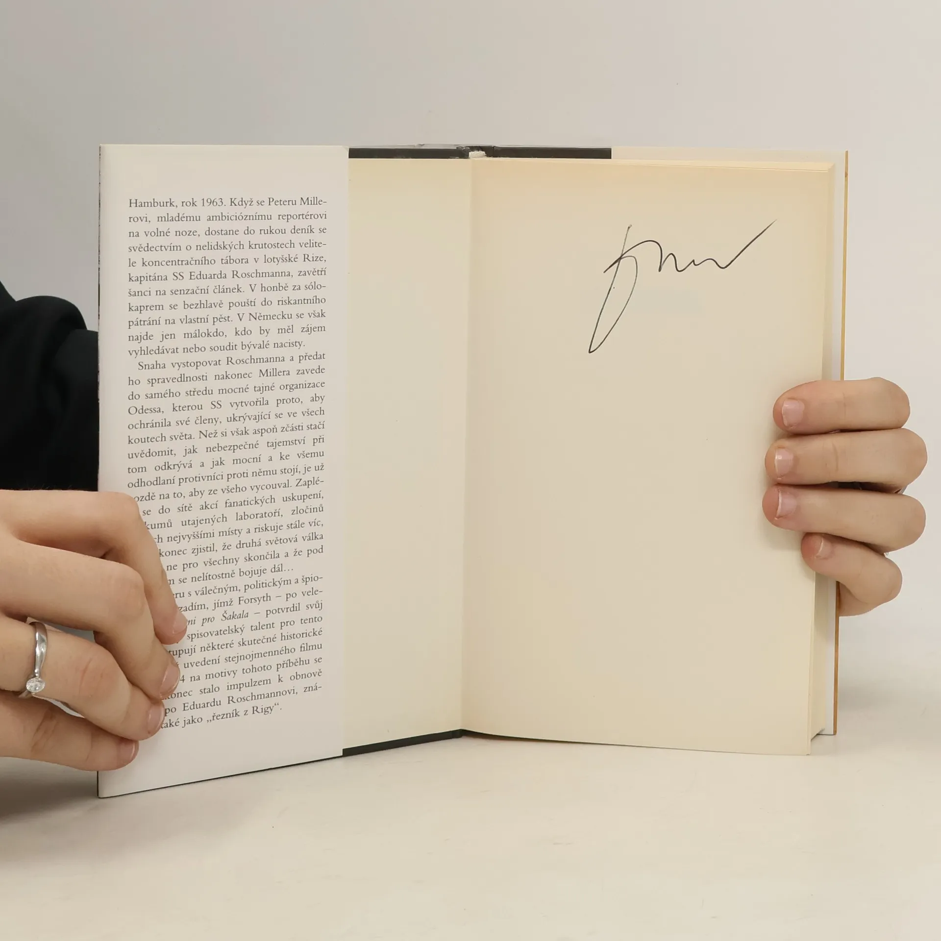 Hamburk, rok 1963. Když se Peteru Millerovi, mladému ambicióznímu reportérovi, dostane do rukou deník se svědectvím o nelidských krutostech velitele koncentračního tábora v lotyšské Rize, zavětří šanci na senzační článek. V honbě za sólokaprem se bezhlavě pouští do riskantního pátrání na vlastní pěst. V Německu se však najde jen málokdo, kdo by měl zájem vyhledávat nebo soudit bývalé nacisty. Snaha vystopovat Roschmanna a předat ho spravedlnosti nakonec Millera zavede do samého středu mocné tajné organizace Odessa, kterou SS vytvořila proto, aby ochránila své členy, ukrývající se ve všech koutech světa...