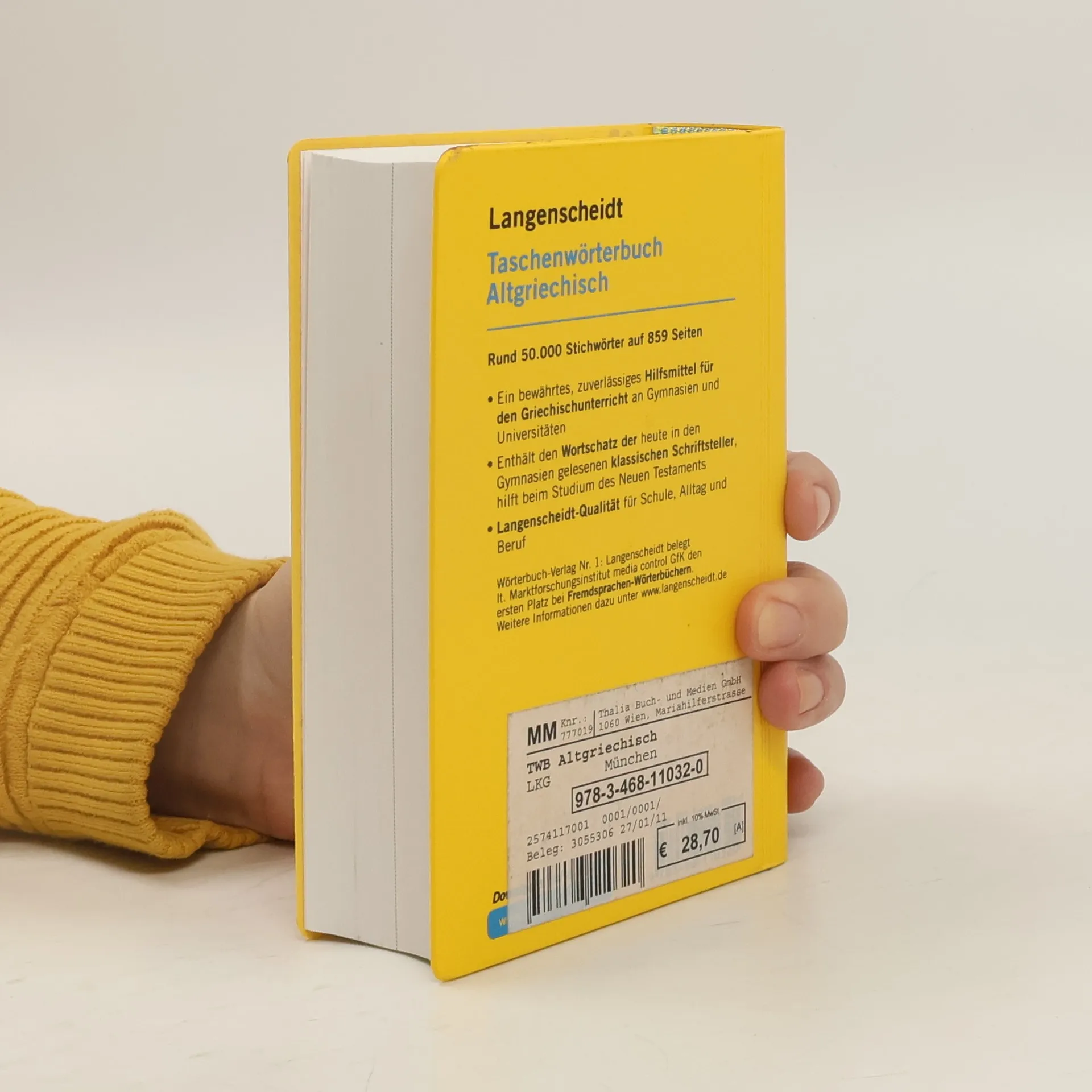 Das Taschenwörterbuch Altgriechisch des Langenscheidt Verlages ist mit seinem hohen Informationsgehalt das bewährte, zuverlässige Standard-Wörterbuch für den Griechisch-Unterricht an Gymnasien und Universitäten. Das Werk ist übersichtlich gegliedert und enthält eine Vielzahl an grammatischen Hinweisen und Konstruktionshilfen. Eine große Erleichterung des Umgangs mit Altgriechisch bildet die Eingrenzung des Bedeutungsbereiches einzelner Wörter durch verschiedene Mittel und die knappen Erklärungen historischer Sachverhalte, der sogenannten Realien. Rund 50.000 Stichwörter Wortschatz der heute gelesenen klassischen Schriftsteller Geeignet für das Studium des Neuen Testaments Zielgruppe: Schüler, Fachstudenten, Theologen und Historiker