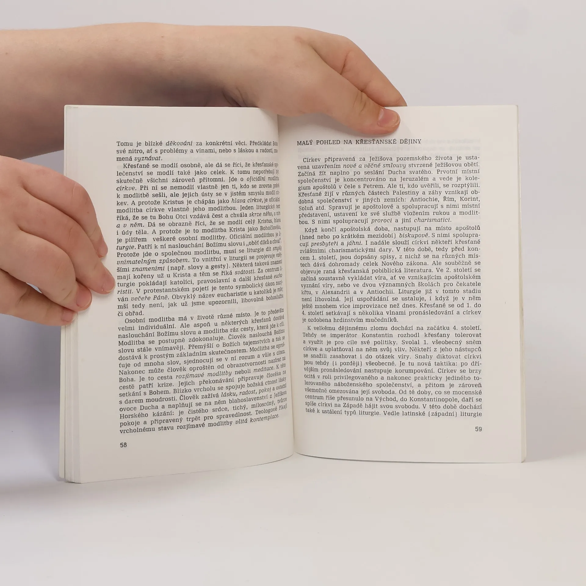 Kniha (následovaná později autorovými důkladnějšími zpracováními tématu) ve skromném rozsahu poskytuje na začátku 90. let přehled nejzákladnějších informací o mimokřesťanských náboženstvích a o něco podrobnější přehledný popis křesťanství, jeho víry, jeho větvení a důležitých etap jeho historie. Kniha byla původně míněna pro středoškolské studenty.
