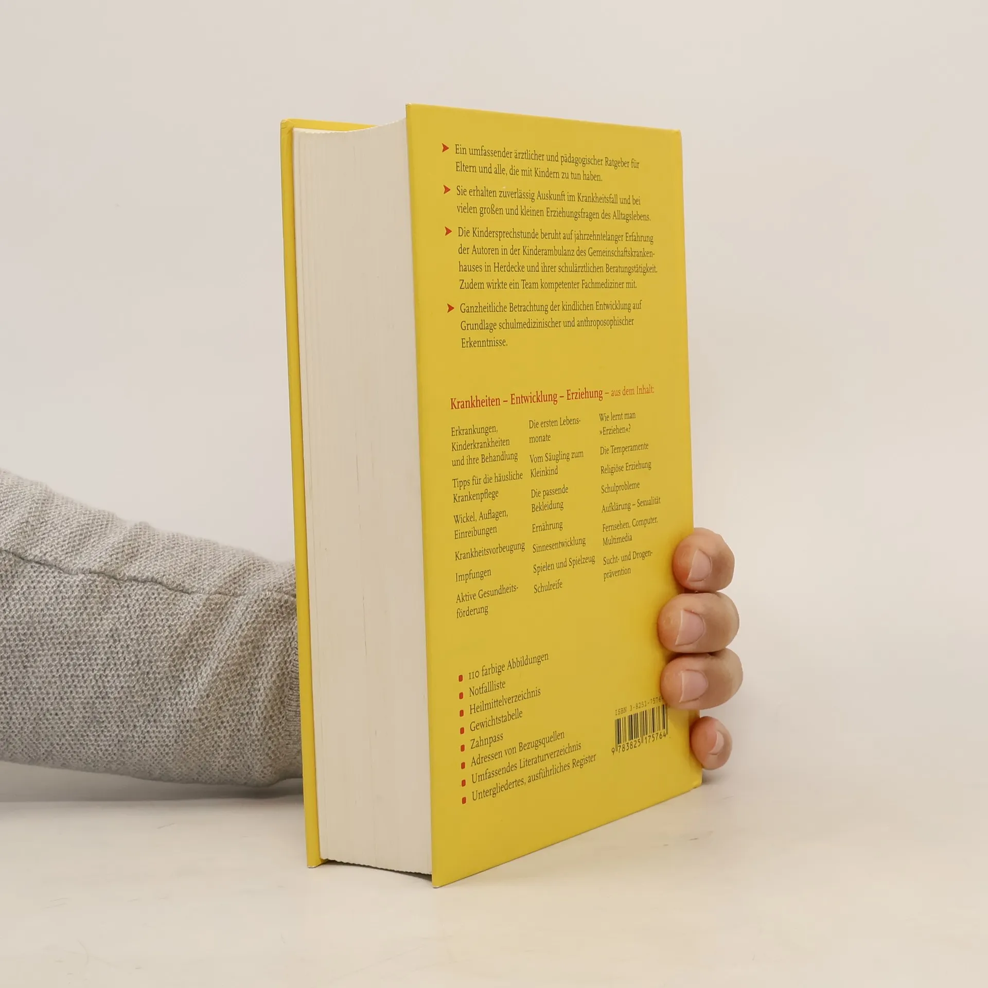 Dieses Buch ist ein umfassender ärztlicher und pädagogischer Ratgeber für Eltern und alle, die mit Kindern zu tun haben. Es ist sowohl ein Nachschlagewerk für Fragen im akuten Krankheitsfall als auch eine grundlegende Darstellung des Kindes in seiner Entwicklung und der dazu erforderlichen Pflege und Erziehung. Aus der langjährigen Erfahrung im klinischen Bereich und in der ambulanten Kinderarztpraxis des Gemeinschaftskrankenhaus Herdecke entstanden, basiert dieses Werk unter Berücksichtigung der modernen Schulmedizin auf den menschenkundlichen Grundlagen der Waldorfpädagogik und der anthroposophische orientierten Medizin. Aus dem Inhalt: Erkrankungen im Kindesalter und ihre Symptome / Grundbedingungen einer gesunden Entwicklung / Erziehung als Therapie / Anhang: Äußere Anwendungen in der häuslichen Krankenpflege. Mit beiliegendem Zahn- und Gesundheitspaß.