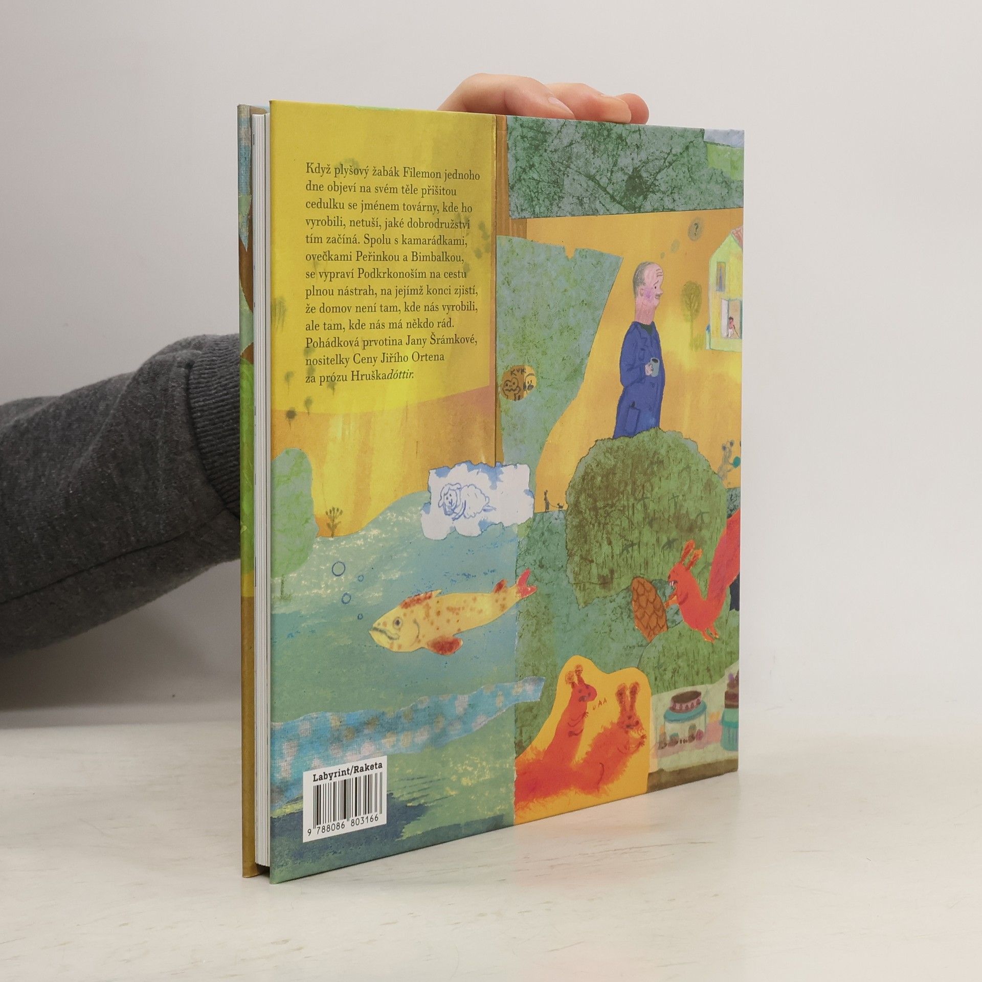 Pohádková prvotina Jany Šrámkové, která v roce 2009 získala za svou psychologickou novelu Hruškadóttir Cenu Jiřího Ortena. Když plyšový žabák Filemon jednoho dne objeví na svém těle přišitou cedulku se jménem továrny, kde ho vyrobili, netuší, jaké dobrodružství tím začíná. Spolu s kamarádkami, ovečkami Peřinkou a Bimbalkou, se vypraví Podkrkonoším na cestu plnou nástrah, na jejímž konci zjistí, že domov není tam, kde nás vyrobili, ale tam, kde nás má někdo rád. Pro děti od 6 do 12 let.
