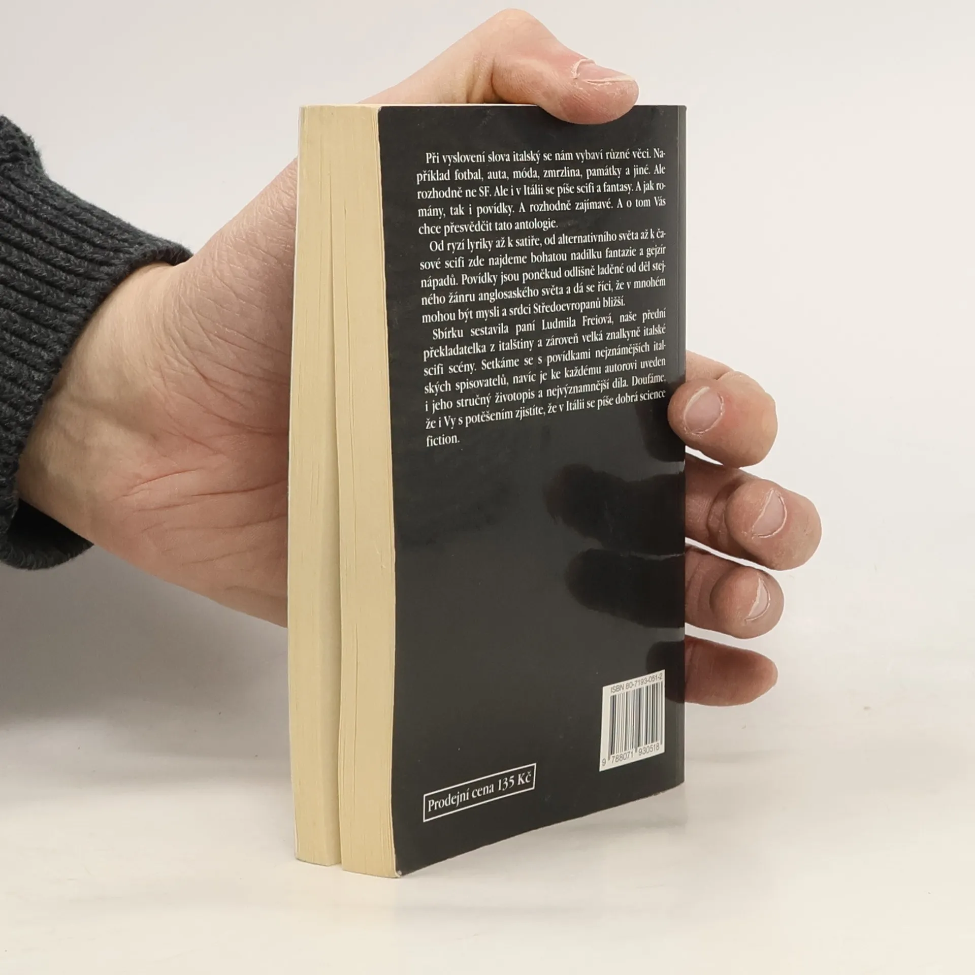 Antologie italských povídek sci-fi. Při vyslovení slova italský se nám vybaví různá věci. Například fotbal, auta, móda, zmrzlina, památky a jiné. Ale rozhodně ne SF. Ale i v Itálii se píše sci-fi a fantasy. A jak romány, tak i povídky. A rozhodně zajímavé. A o tom Vás chce přesvědčit tato antologie. Od ryzí lyriky až k satiře, od alternativního světa až k časové sci-fi zde najdete bohatou nadílku fantazie a gejzír nápadů. Povídky jsou poněkud odlišně laděné od děl stejného žánru anglosaského světa a dá se říci, že v mnohém mohou být mysli a srdci Středoevropanů bližší. Sbírku sestavila paní Ludmila Freiová, naše přední překladatelka z italštiny a zároveň velká znalkyně italské sci-fi scény. Setkáme se s povídkami nejznámějších italských spisovatelů, navíc je ke každému autorovi uveden i jeho stručný životopis a nejvýznamnější dí­la.