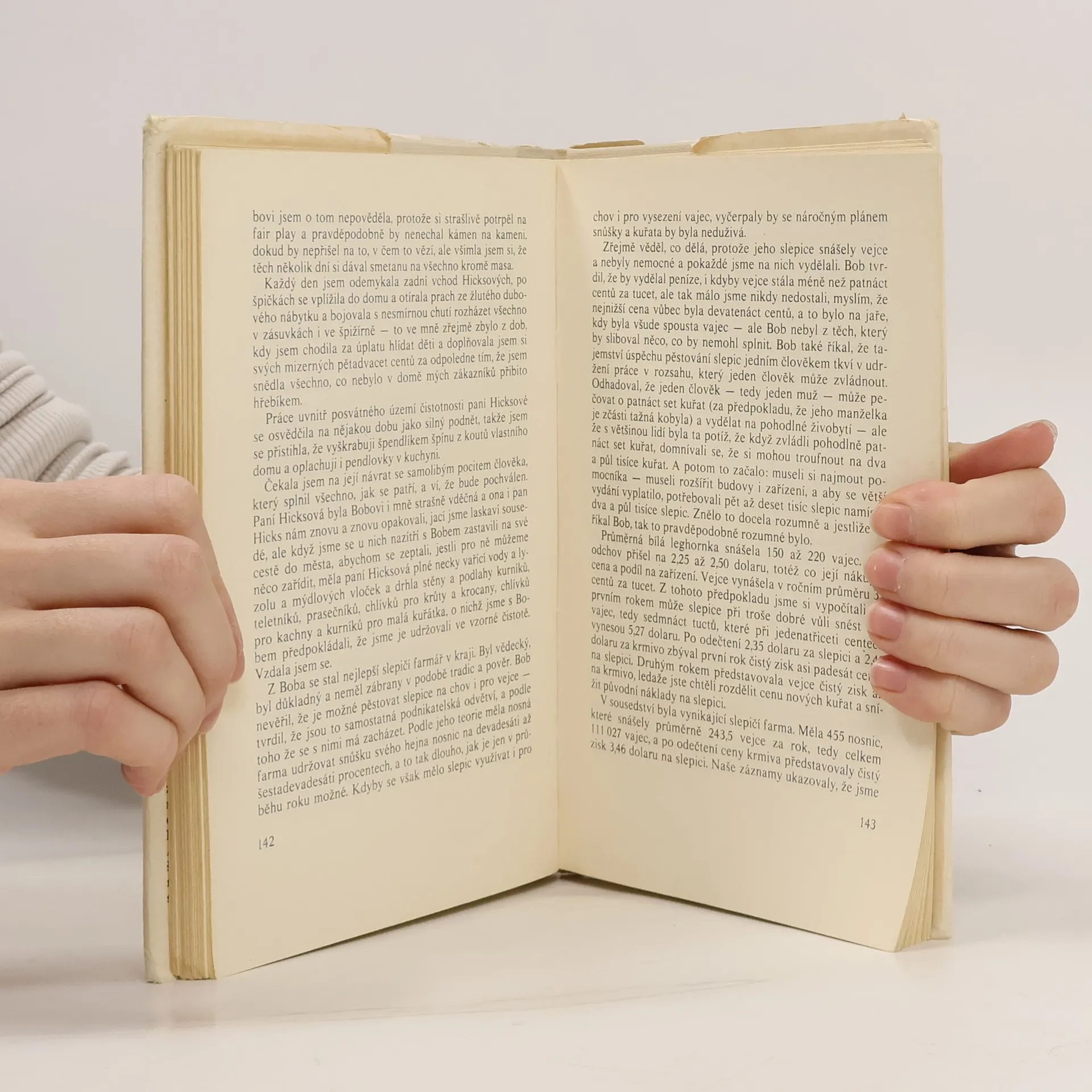 Autobiografický, humoristicky pojatý román americké spisovatelky, která v něm humornou formou zachycuje své zkušenosti z doby, kdy se svým manželem bez jakýchkoli zkušeností zakládala a budovala slepičí farmu na Olympských horách v Kalifornii. Vydavatel: Práce - Praha 5. vydání, v nakladatelství Práce 1. vydání.