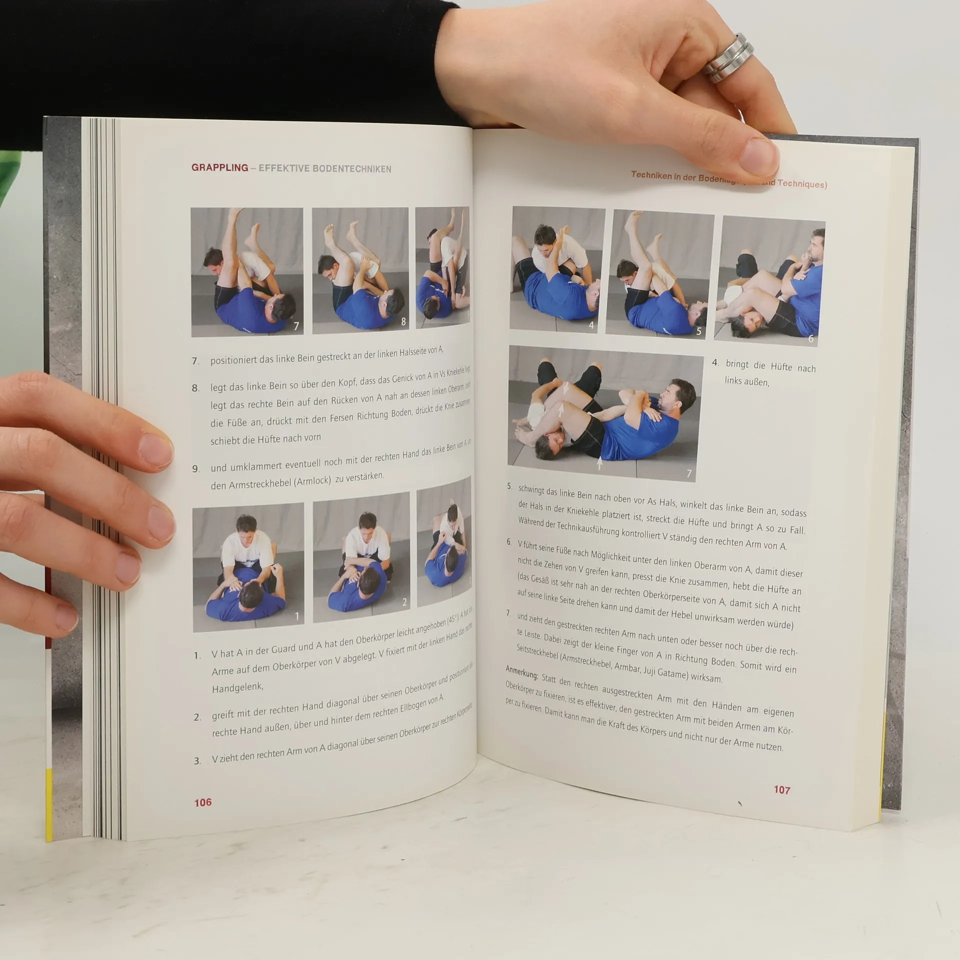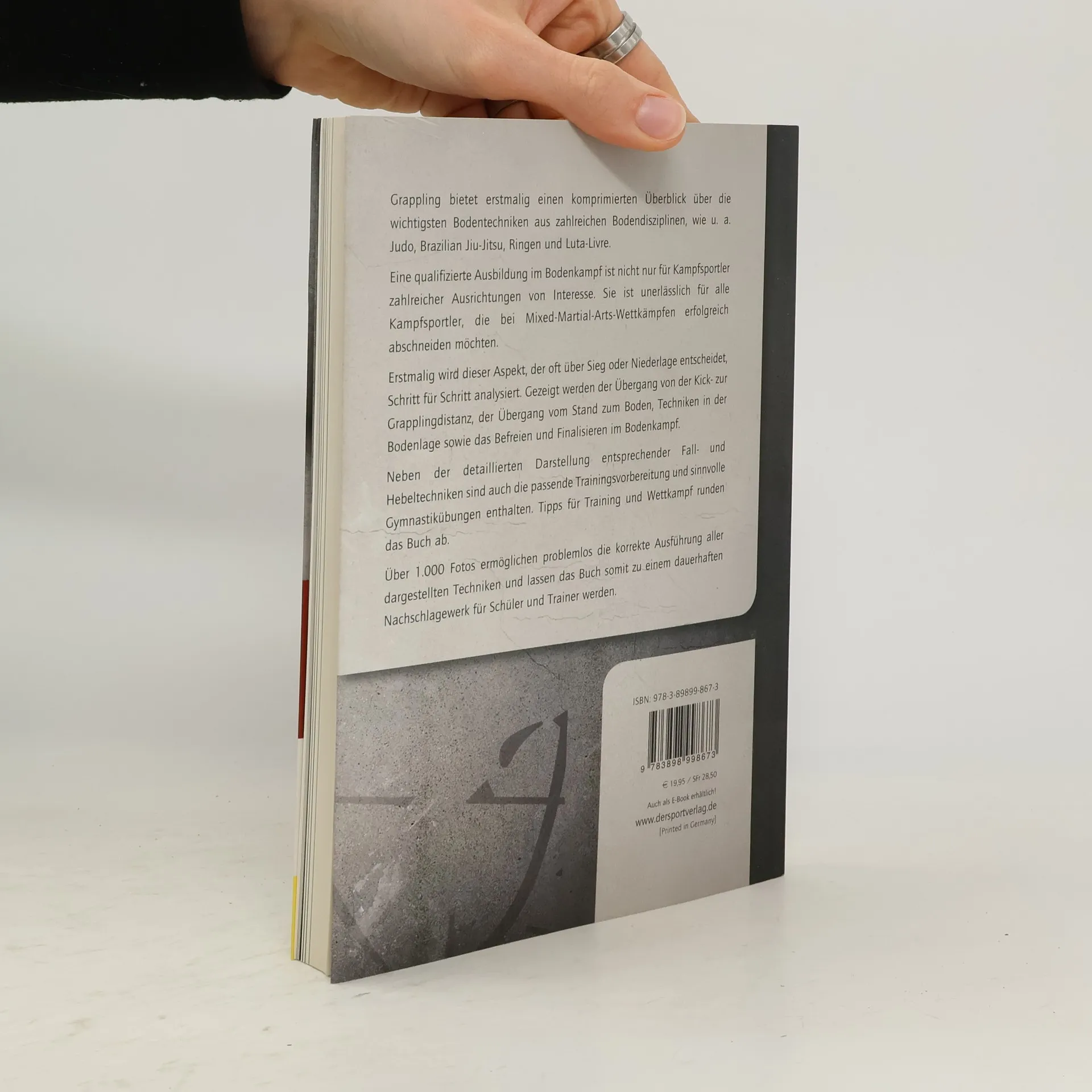 Grappling bietet erstmalig einen komprimierten Überblick über die wichtigsten Bodentechniken aus zahlreichen Bodendisziplinen, wie u. a. Judo, Brazilian Jiu-Jitsu, Ringen und Luta-Livre. Eine qualifizierte Ausbildung im Bodenkampf ist nicht nur für Kampfsportler zahlreicher Ausrichtungen von Interesse. Sie ist unerlässlich für alle Kampfsportler, die bei Mixed-Martial-Arts-Wettkämpfen erfolgreich abschneiden möchten. Erstmalig wird dieser Aspekt, der oft über Sieg oder Niederlage entscheidet, Schritt für Schritt analysiert. Gezeigt werden der Übergang von der Kick- zur Grapplingdistanz, der Übergang vom Stand zum Boden, Techniken in der Bodenlage sowie das Befreien und Finalisieren im Bodenkampf. Neben der detaillierten Darstellung entsprechender Fall- und Hebeltechniken sind auch die passende Trainingsvorbereitung und sinnvolle Gymnastikübungen enthalten. Tipps für Training und Wettkampf runden das Buch ab. Über 1.000 Fotos ermöglichen problemlos die korrekte Ausführung aller dargestellten Techniken und lassen das Buch somit zu einem dauerhaften Nachschlagewerk für Schüler und Trainer werden.
