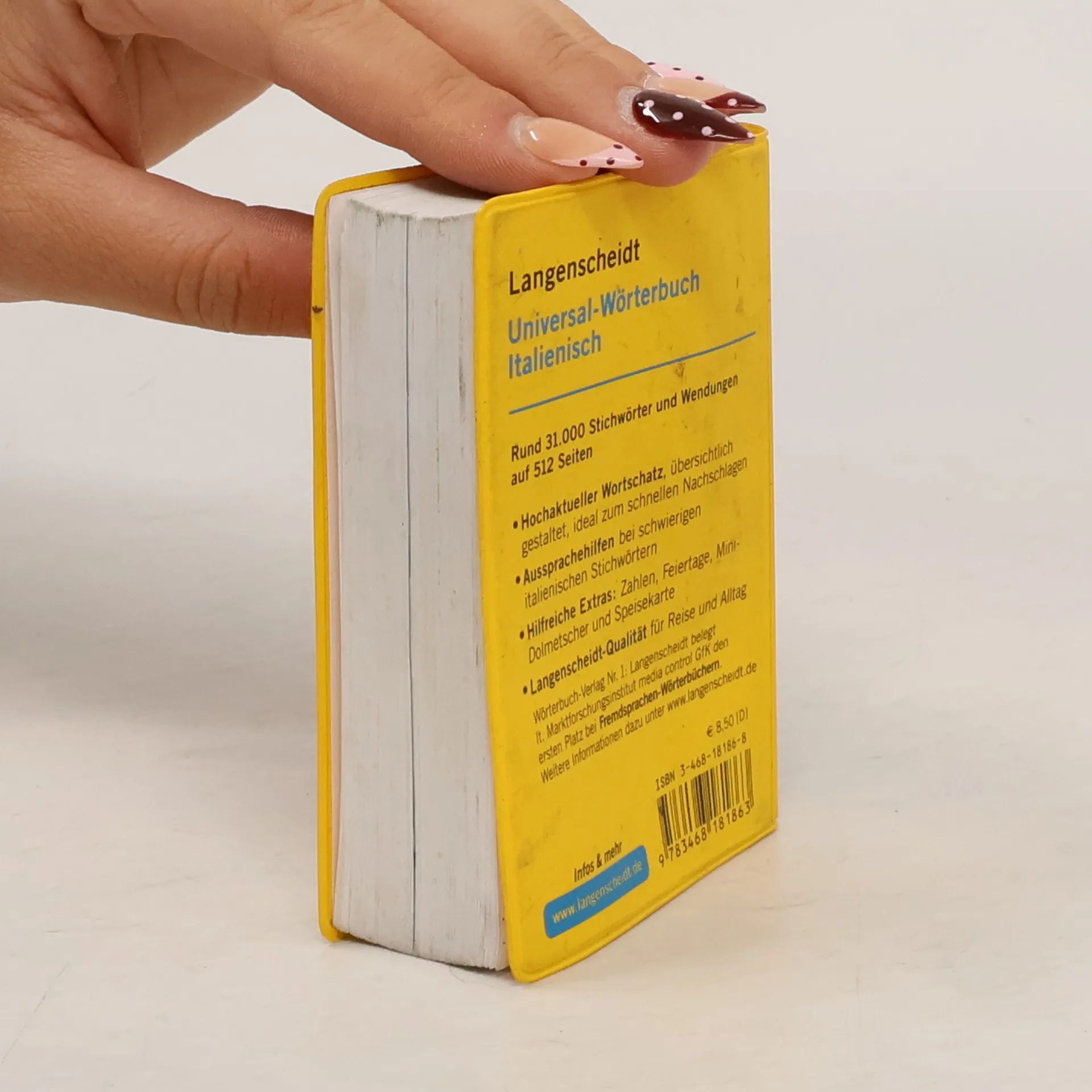Das universelle Wörterbuch mit aktuellem Wortschatz im besonders praktischen Format. Rund 31.000 Stichwörter und Wendungen alle Haupteinträge in Blau für die schnelle Orientierung hilfreiche Extras im Anhang: Feiertage, Mini-Dolmetscher zu wichtigen Sprechsituationen auf der Reise, italienische Speisekarte u. a. zum schnellen Nachschlagen auf Reisen und für den fremdsprachlichen Anfangsunterricht