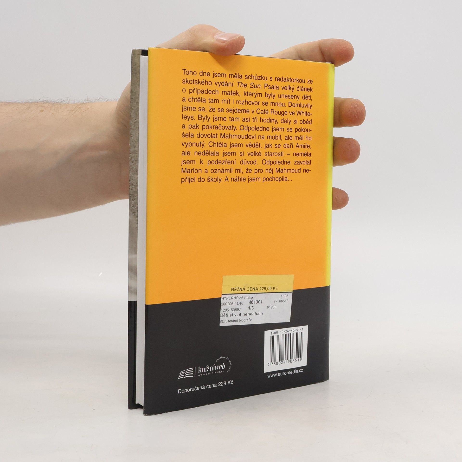 Podtitul: dramatický příběh o zoufalství, odhodlání a naději Životní příběh ženy, která dlouhá léta nezištně pomáhala ženám z nábožensky smíšených manželství, zpravidla poté, co jim muž unesl děti. Jednoho dne však musí autorka a hrdinka v jedné osobě čelit stejnému trápení jako jiné ženy, kterým dosud pouze pomáhala. Její manželství končí nezdarem a manžel rozchod řeší vlastním svérázným způsobem. Zabalí jejich společené děti a odjíždí z Anglie do Bagdádu.