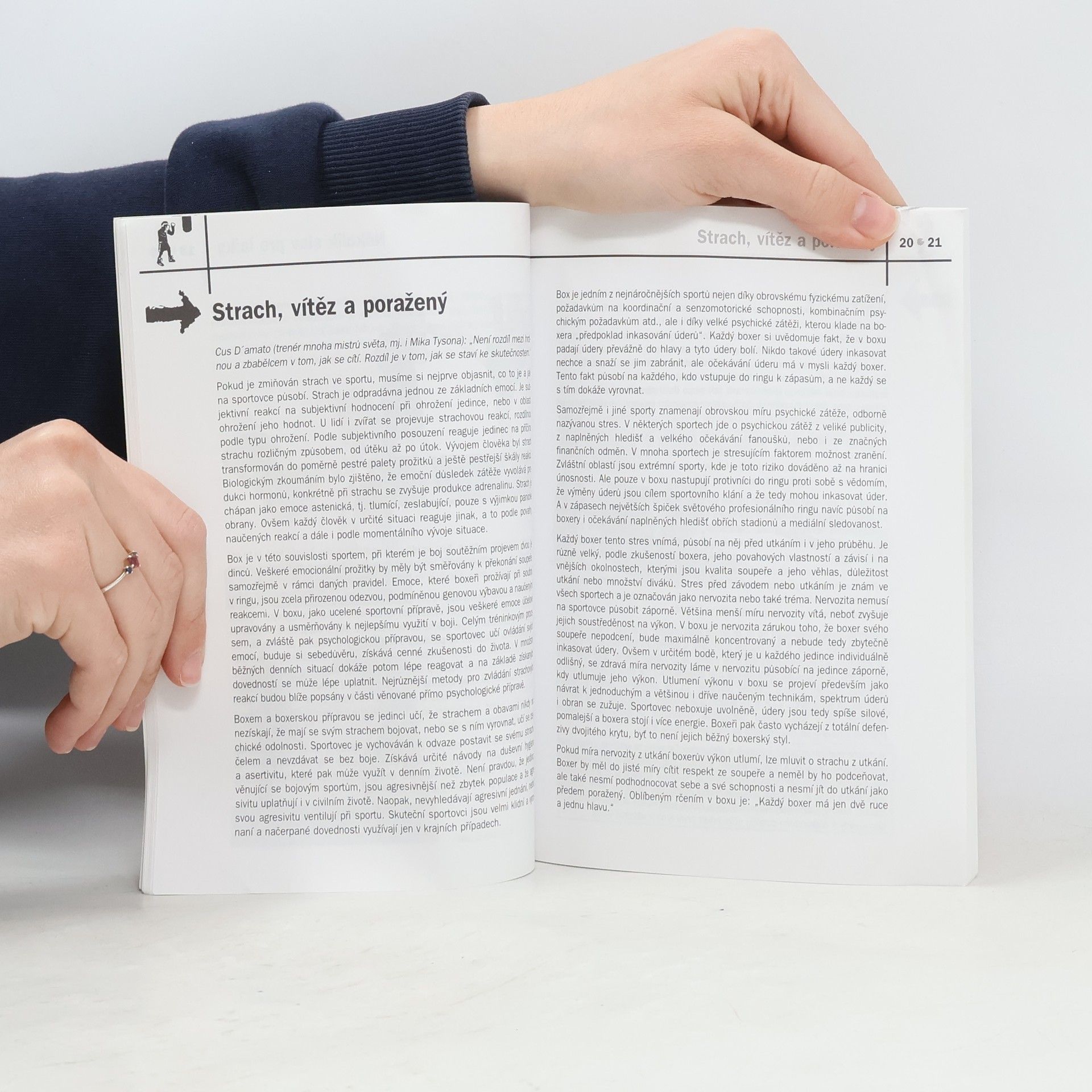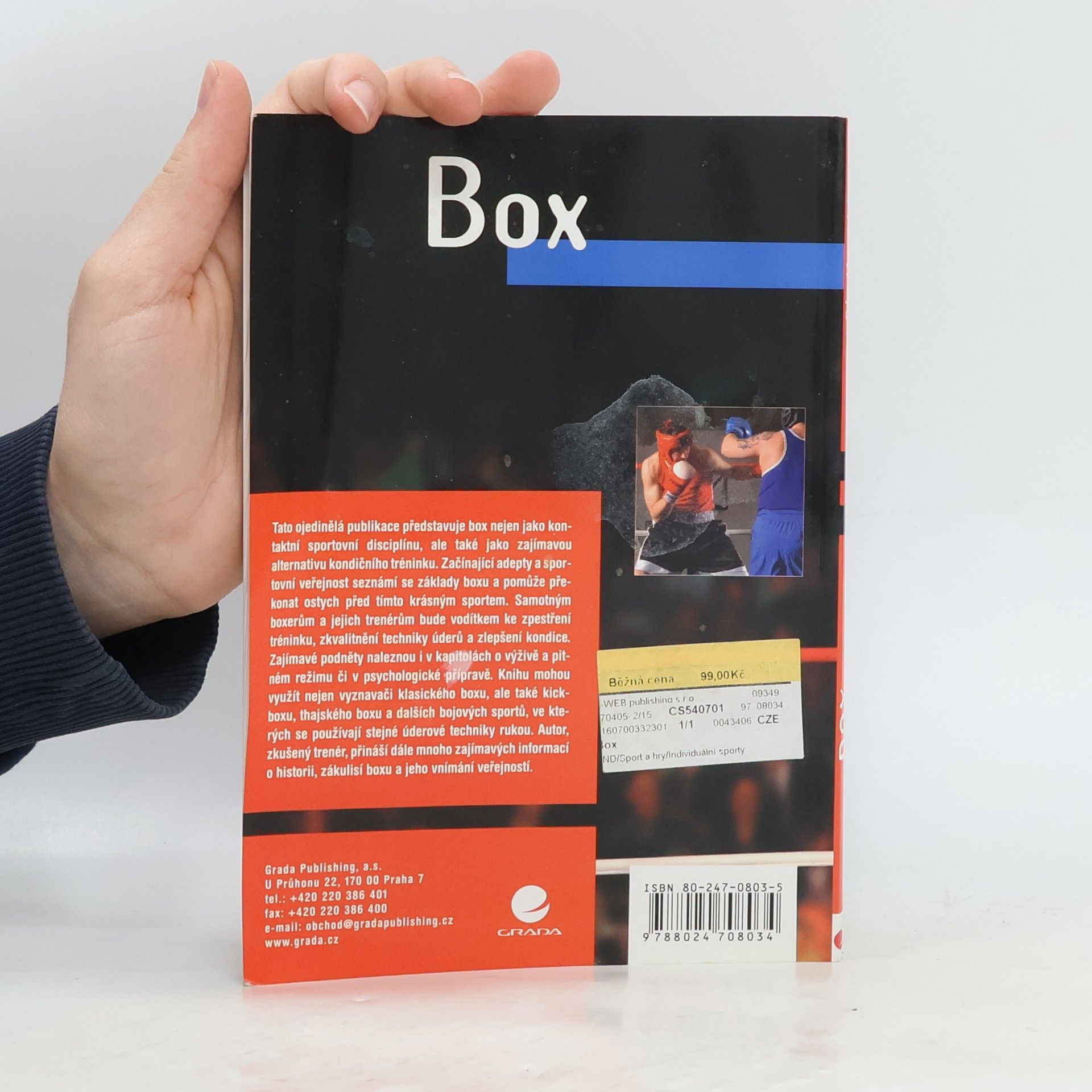 Tato ojedinělá publikace představuje box nejen jako kontaktní sportovní disciplínu, ale také jako zajímavou alternativu kondičního tréninku. Začínající adepty a sportovní veřejnost seznámí se základy boxu a pomůže překonat ostych před tímto krásným sportem. Samotným boxerům a jejich trenérům bude vodítkem ke zpestření tréninku, zkvalitnění techniky úderů a zlepšení kondice. Zajímavé podněty naleznou i v kapitolách o výživě a pitném režimu či v psychologické přípravě. Knihu mohou využít nejen vyznavači klasického boxu, ale také kickboxu, thajského boxu a dalších bojových sportů, ve kterých se používají stejné úderové techniky rukou. Autor, zkušený trenér, přináší dále mnoho zajímavých informací o historii, zákulisí boxu a jeho vnímání veřejností.... celý text