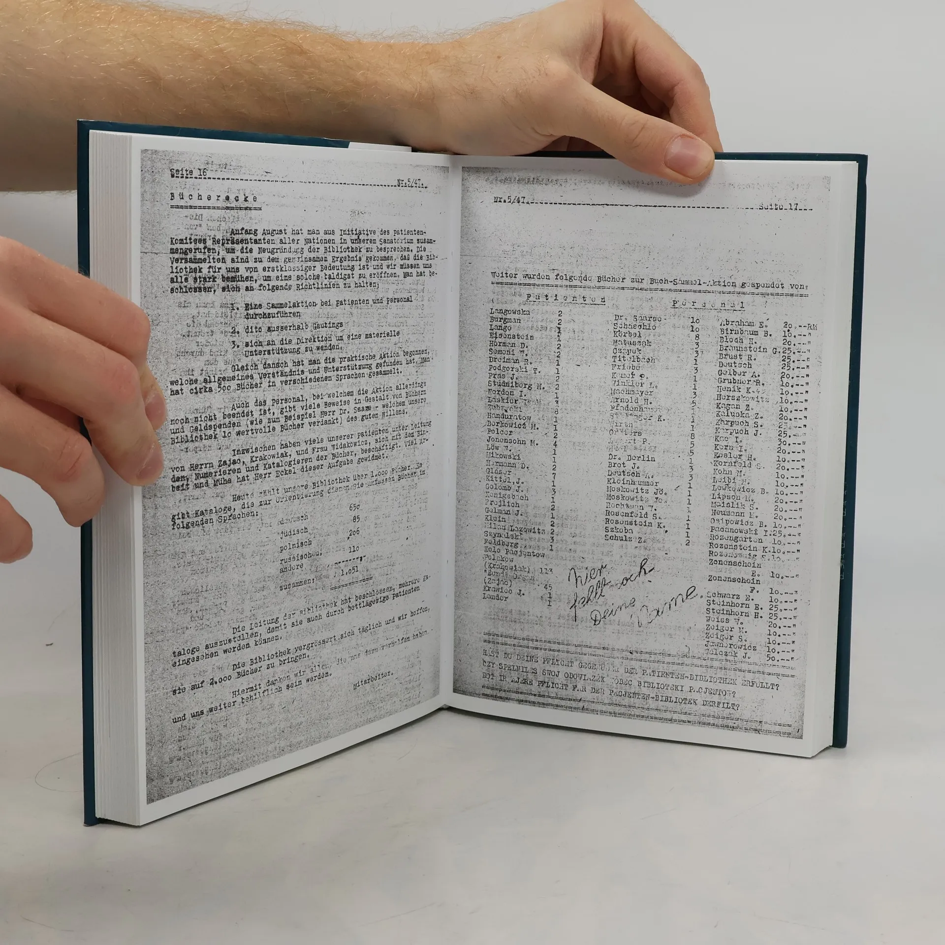 Vorgeschichte des DP-Hospitals • Das DP-Hospital der Amerikaner, der UNRRA und IRO 1945-1951 • Zahl der Lagerinsassen in den DP-Lagern und im DP-Hospital Gauting • Verhältnis zum Umfeld • Vom täglichen Leben • Der eigene Radiosender • Staatliches Tbc-Sanatorium und -Krankenhaus der LVA 1951-2000 • Die Sterbefälle 1945-1952 • Schwere Krankheit, Sterben, Tod • Verstorbene Juden • Verstorbene nichtjüdische Ausländer • Faksimile-Abdruck der Patientenzeitung „Unser Leben“ (250 Seiten) und der Festschrift zur 1000. Sendung von „Radio Gauting“