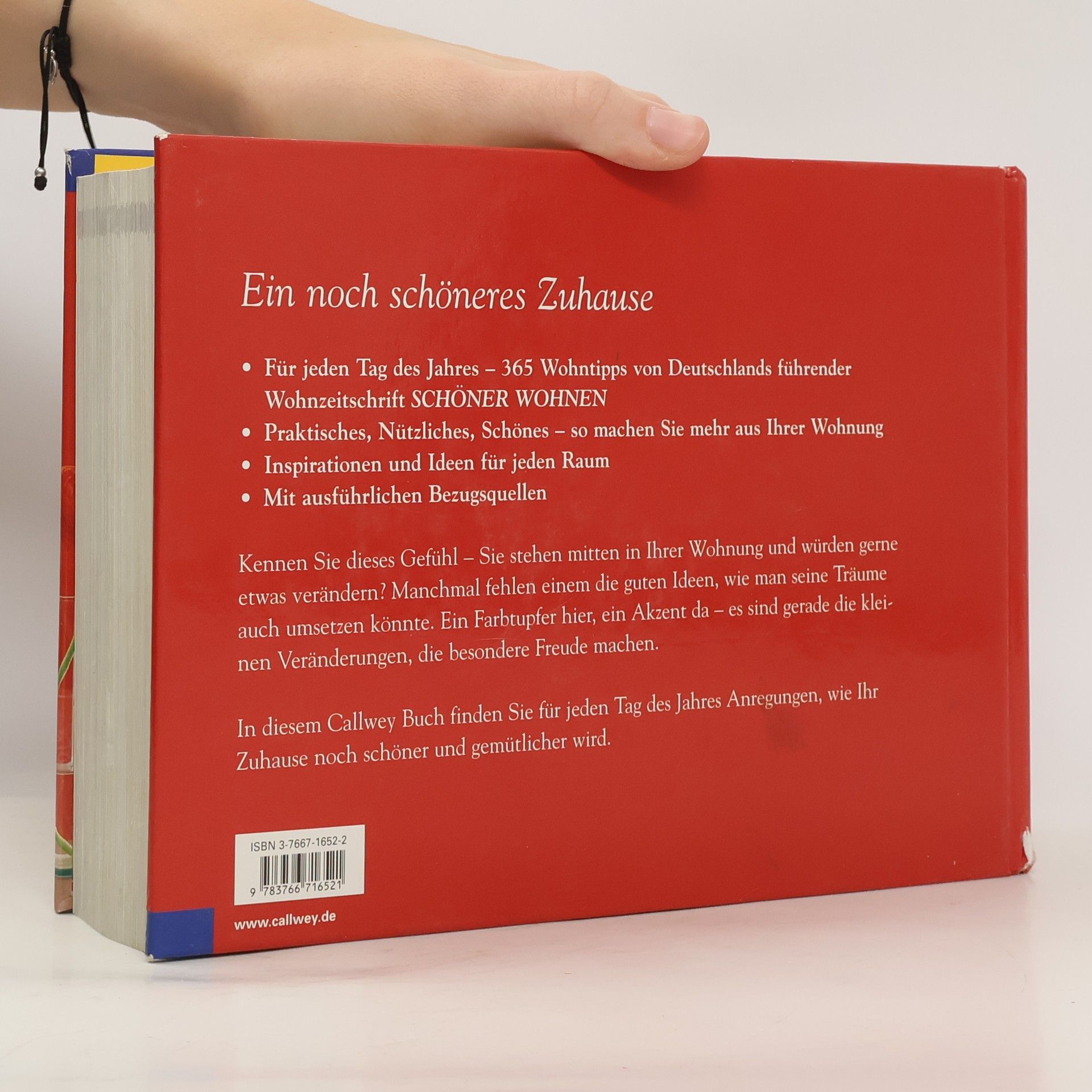 §B§Wohnratgeber, Ewiger Kalender und Tagebuch in einem!§§S§Ab und zu beschleicht einen das Gefühl, in den eigenen vier Wänden irgendetwas ändern zu müssen. Und sei es nur eine Kleinigkeit. Doch manchmal fehlen einem einfach die Ideen. Dieses Buch macht es leicht: Mehr Stauraum schaffen? Kinderzimmer, die mit wachsen? Endlich Farbe in die Wohnung? Wohin mit den Gästen? Neue Ideen für Fensterdekoration und phanatsievolle Vorschläge für den Festtagsschmuck? Dieser Kalender hält für jeden Tag des Jahres einen Tipp bereit, wie man sein Zuhause einfach schöner gestalten kann.