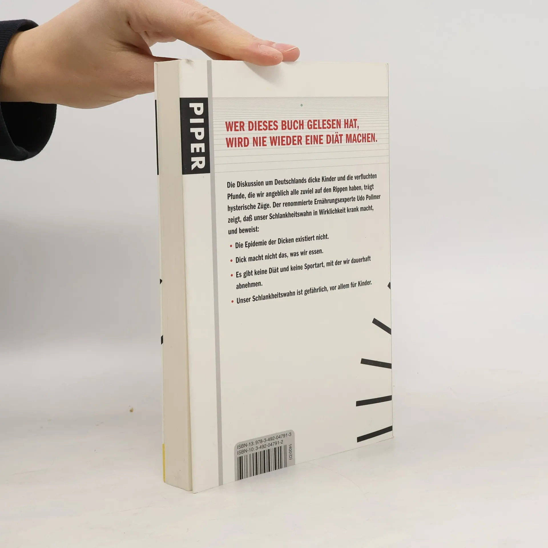Die Krankenkassen, die Politiker, die Medien, die Diätbestseller – alle behaupten, die Zahl der Dicken steige explosionsartig, es drohe eine gefährliche Fettepidemie. Wir essen zu viel und zu fett, wir bewegen uns zu wenig. Desaströse Folge: Wir werden dick und krank. Pollmer, Knoll und Friebe belegen anhand von Zahlen und aus der Ernährungswissenschaft heraus, daß das Gegenteil der Fall ist: Wir machen uns verrückt, die ganze Diskussion über unsere übergewichtige Gesellschaft ist krank. Wer schon Kindern vermittelt, sie seien zu dick, verunsichert sie und fördert Eßstörungen. Hier droht die wirkliche Gefahr für unsere Gesundheit, vom psychischen Druck ganz zu schweigen. Der Kult um die Schlankheit läßt bereits die Hälfte aller erwachsenen Frauen und ein Viertel der Männer nicht mehr normal essen, müssen wir tatsächlich alle eßgestört werden?