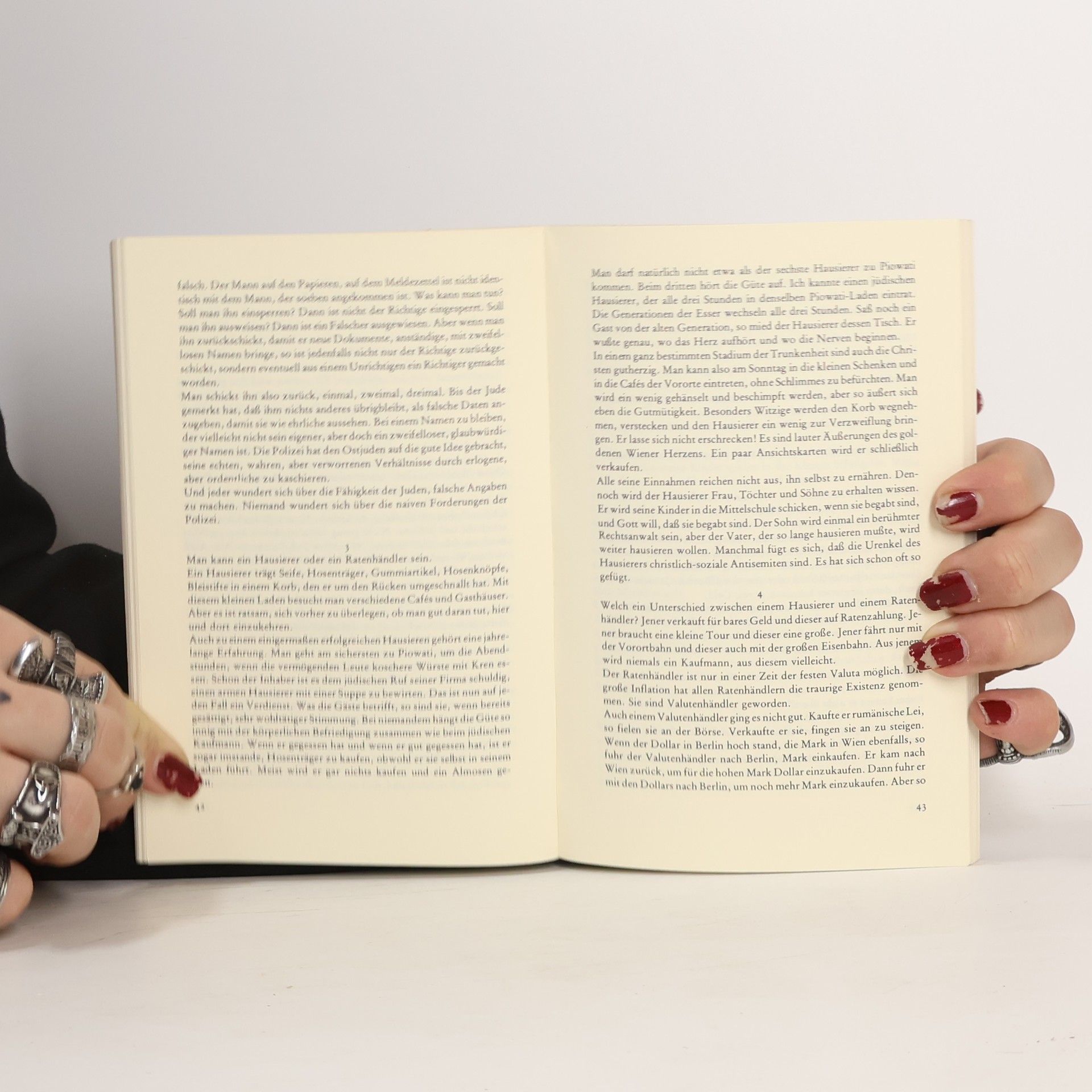Der liebesvollen, oft auch ironischen Zeichnung der ostjüdischen Kultur, ihrer Städte, Feiertage, Wunderrabbis, Hochzeiten und Bethäuser, vor allem aber des Elends, das so viele in die Welt hinaus trieb folgt im zweiten Teil die Beschreibung ihrer neunen Heimatorte, der Judenviertel in Wien, Berlin, Paris und New York.