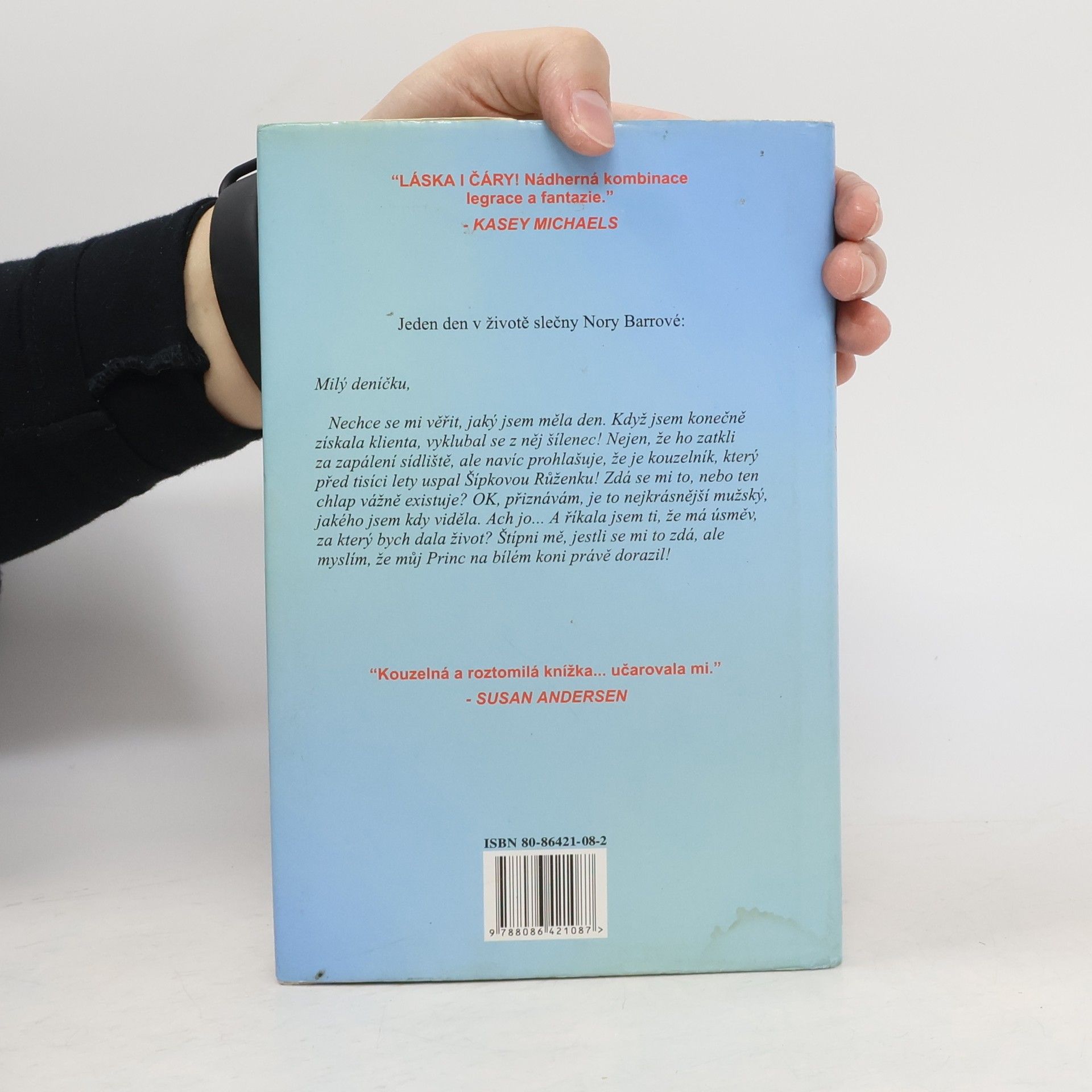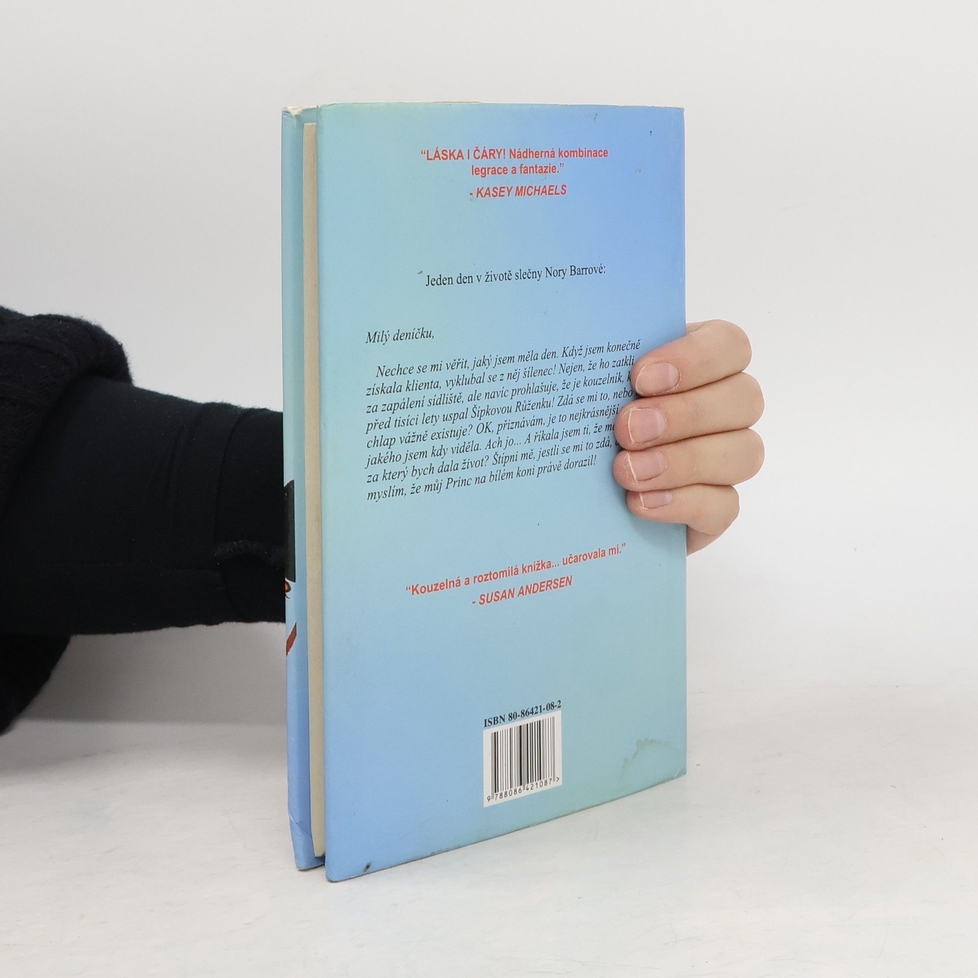 Román, který je plný lásky a samozřejmě i čar. Jeden den v životě slečny Nory Barrové: Milý deníčku, Nechce se mi věřit, jaký jsem měla den. Když jsem konečně získala klienta, vyklubal se z něj šílenec! Nejen, že ho zatkli za zapálení sídliště, ale navíc prohlašuje, že je kouzelník, který před tisíci lety uspal Šípkovou Růženku! Zdá se mi to, nebo ten chlap vážně existuje? OK, přiznávám, je to nejkrásnější mužský, jakého jsem kdy viděla. Ach jo...A říkala jsem ti, že má úsměv, za který bych dala život? Štípni mě, jestli se mi to zdá, ale myslím, že můj Princ na bílém konci právě dorazil!