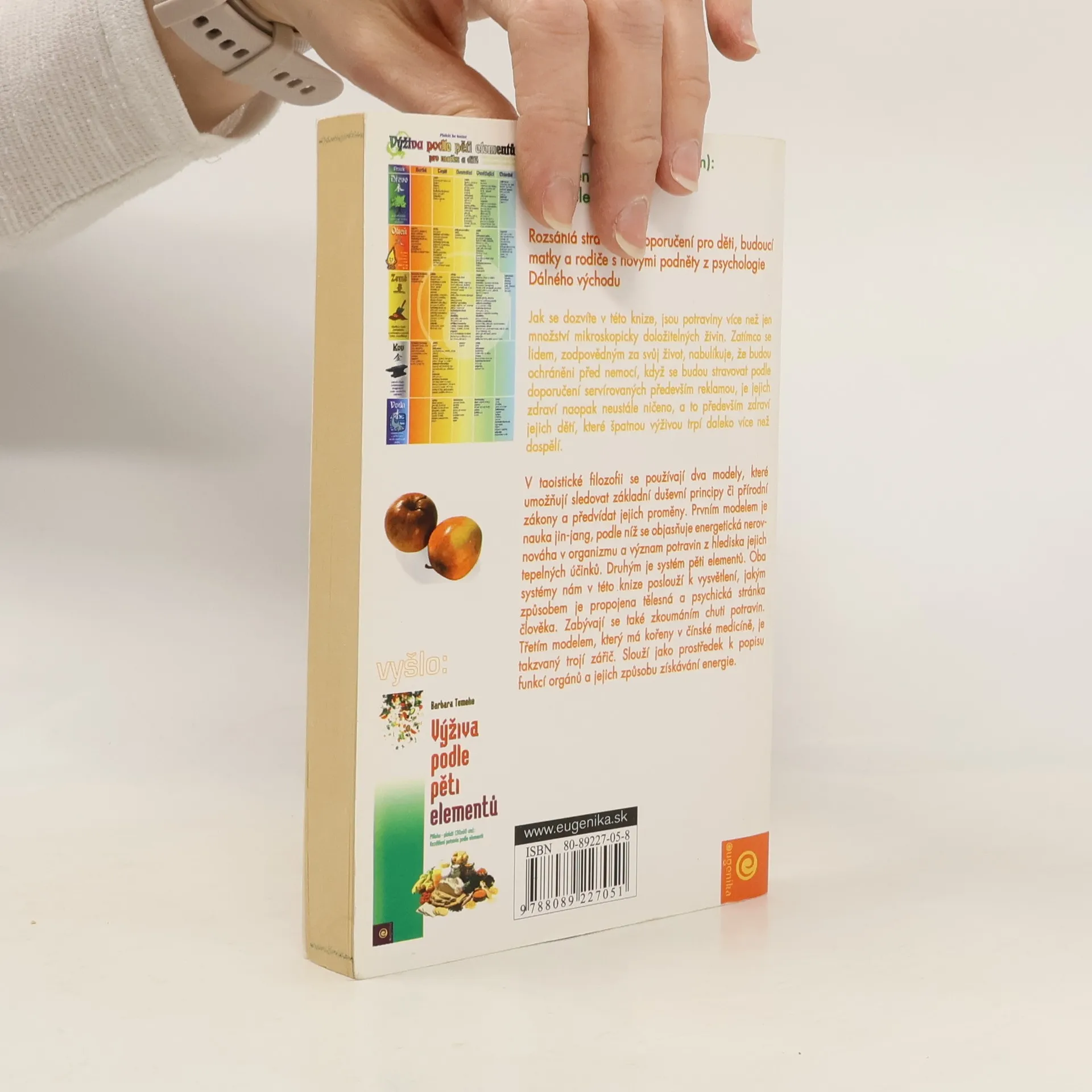 Kniha pojednává o výživě z hlediska východního myšlení. Potraviny zkoumá vzhledem k jejich tepelným účinkům. Důraz klade na propojení tělesné a psychické stránky člověka. Zaměřuje se na výživu související s přípravou na rodičovství, kojením a vařením pro děti. Najdete zde množství důležitých informací, údajů, doporučení a receptů. ... celý text