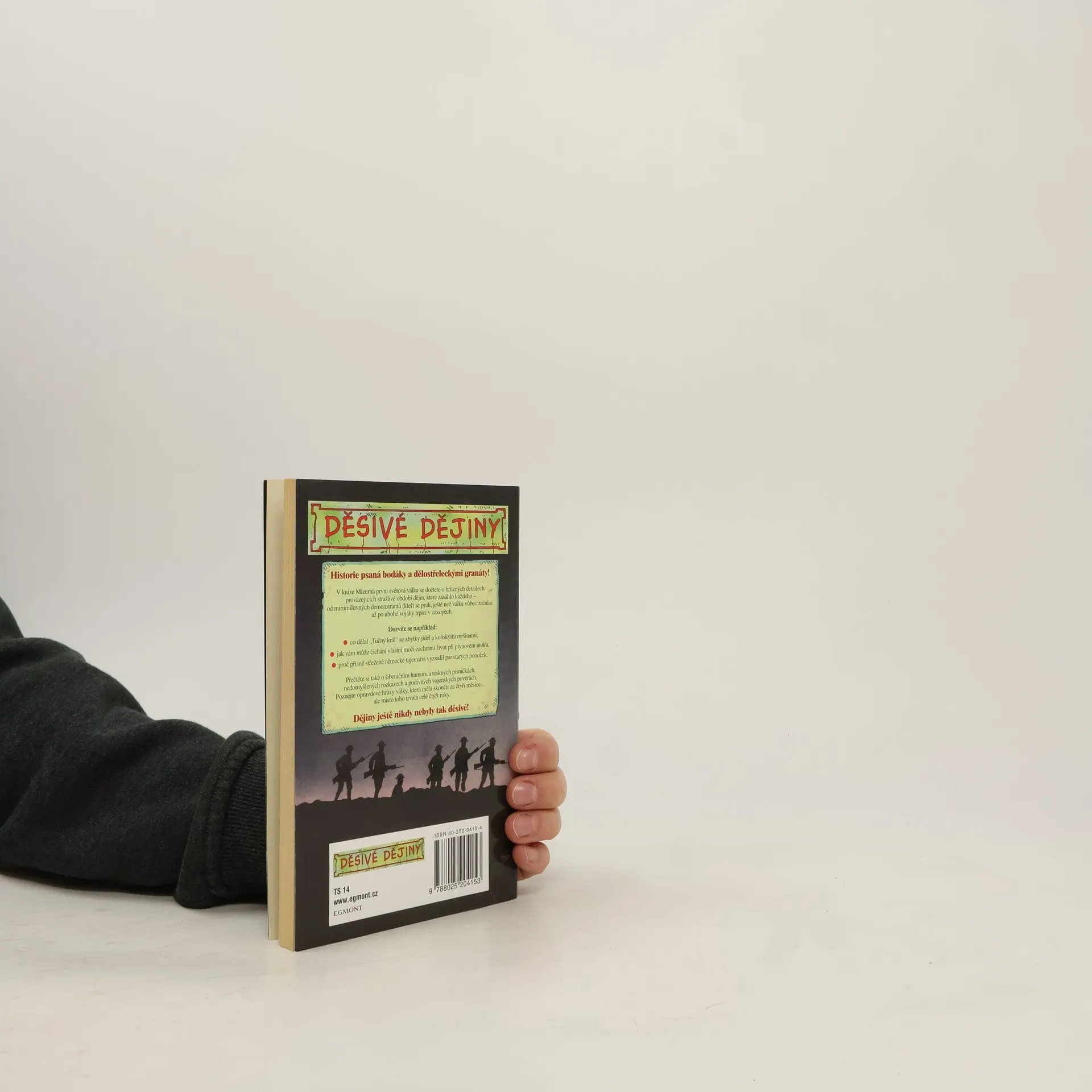 V knize Mizerná první světová válka se dočtete o hrůzných detailech provázejících strašlivé období dějin, které zasáhlo každého – od mírumilovných demonstrantů (kteří se prali, ještě než válka začala) až po ubohé vojáky trpící v zákopech. Dozvíte se například, co dělal „Tučný král“ se zbytky jídel a koňskými mršinami, jak vám může čichání vlastní moči zachránit život při plynovém útoku nebo proč přísně střežené německé tajemství vyzradil pár starých ponožek. Přečtěte si také o šibeničním humoru a teskných písničkách, nedomyšlených rozkazech a vojenských pověrách, které vznikly za války, která měla skončit za čtyři měsíce, a místo toho trvala celé čtyři roky. Dějiny nikdy nebyly tak děsivé!