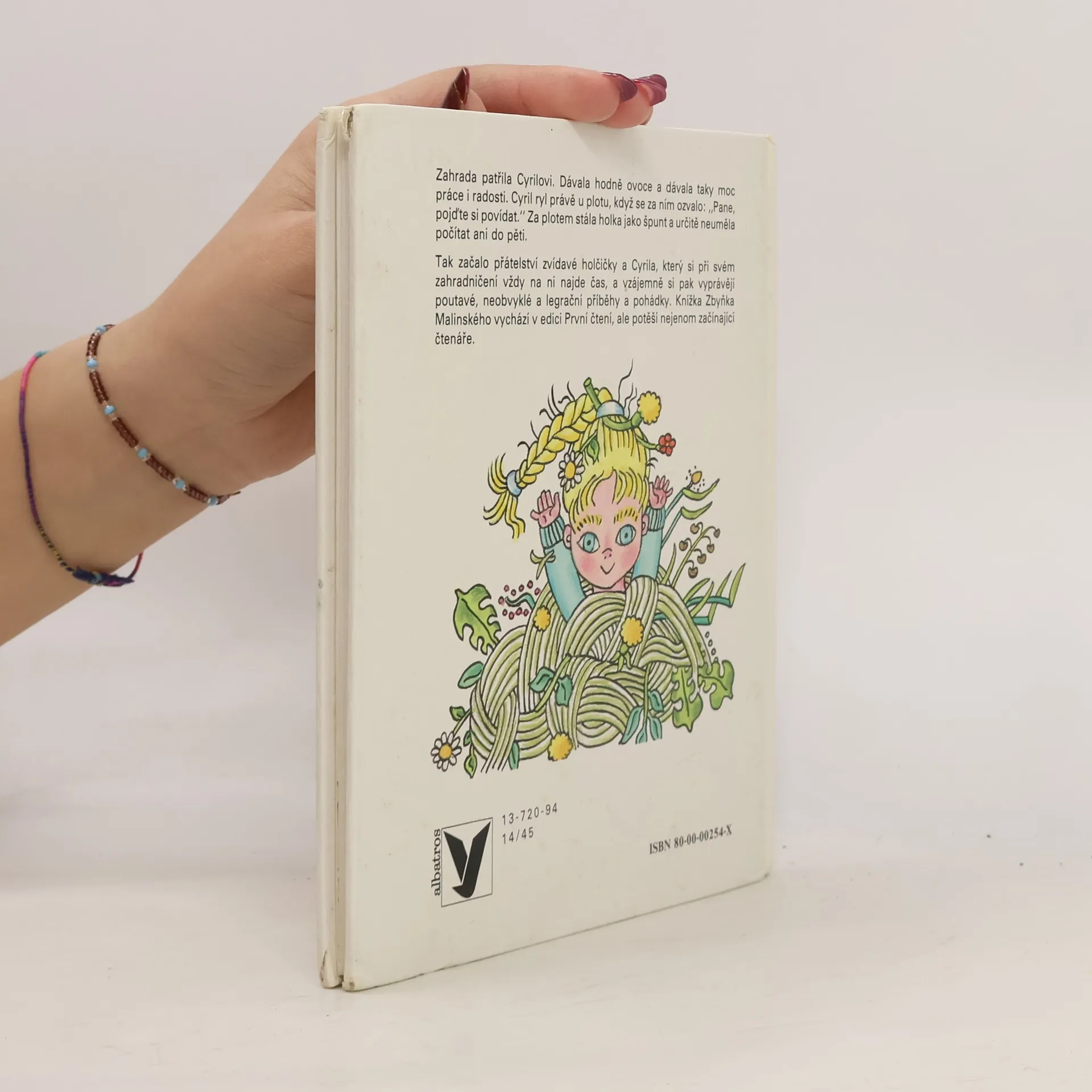 Zahrada patřila Cyrilovi. Dávala hodně ovoce a dávala taky moc práce i radosti. Cyril ryl právě u plotu, když se za ním ozvalo: ,,Pane, pojďte si povídat". Za plotem stála holka jako špunt a určitě neuměla počítat ani do pěti. Tak začalo přátelství zvídavé holčičky a Cyrila, který si při svém zahradničení vždy na ní najde čas, a vzájemně si pak vyprávějí poutavé, neobvyklé a legrační příběhy a pohádky. Knížka Zbyňka Malinského vychází v edici První čtení, ale potěší nejenom začínající čtenáře.