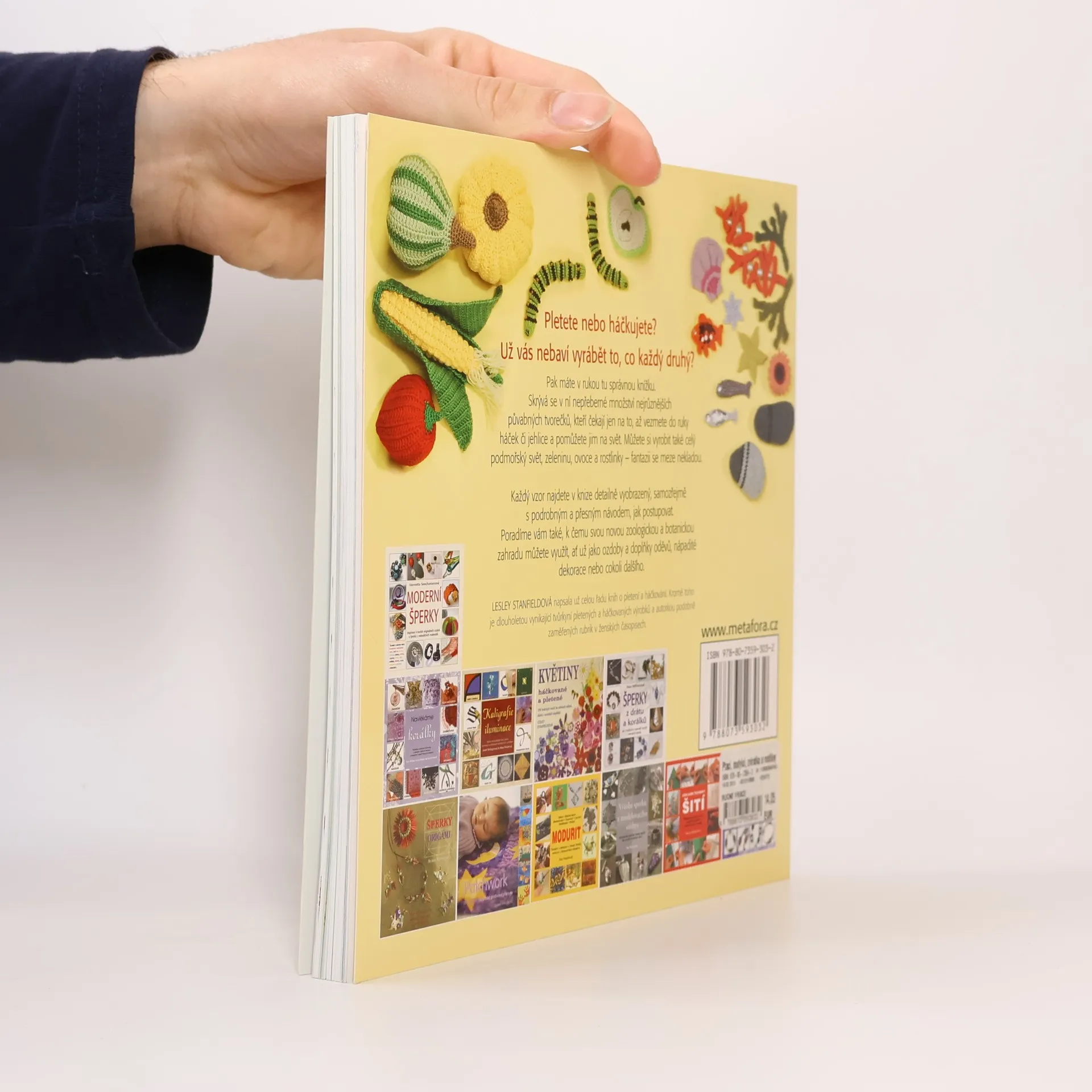 Pletete nebo háčkujete? A už vás nebaví vyrábět to, co každý druhý? Pak máte v rukou tu správnou knížku. A v ní se skrývá nepřeberné množství nejrůznějších půvabných tvorečků, kteří čekají jen na to, až vezmete do ruky háček či jehlice. Můžete si vyrobit také celý podmořský svět, zeleninu, ovoce a rostlinky – fantazii se meze nekladou. Každý vzor najdete v knize detailně barevně vyobrazený, samozřejmě s podrobným a přesným návodem, jak postupovat, aby výsledek byl co nejlepší.