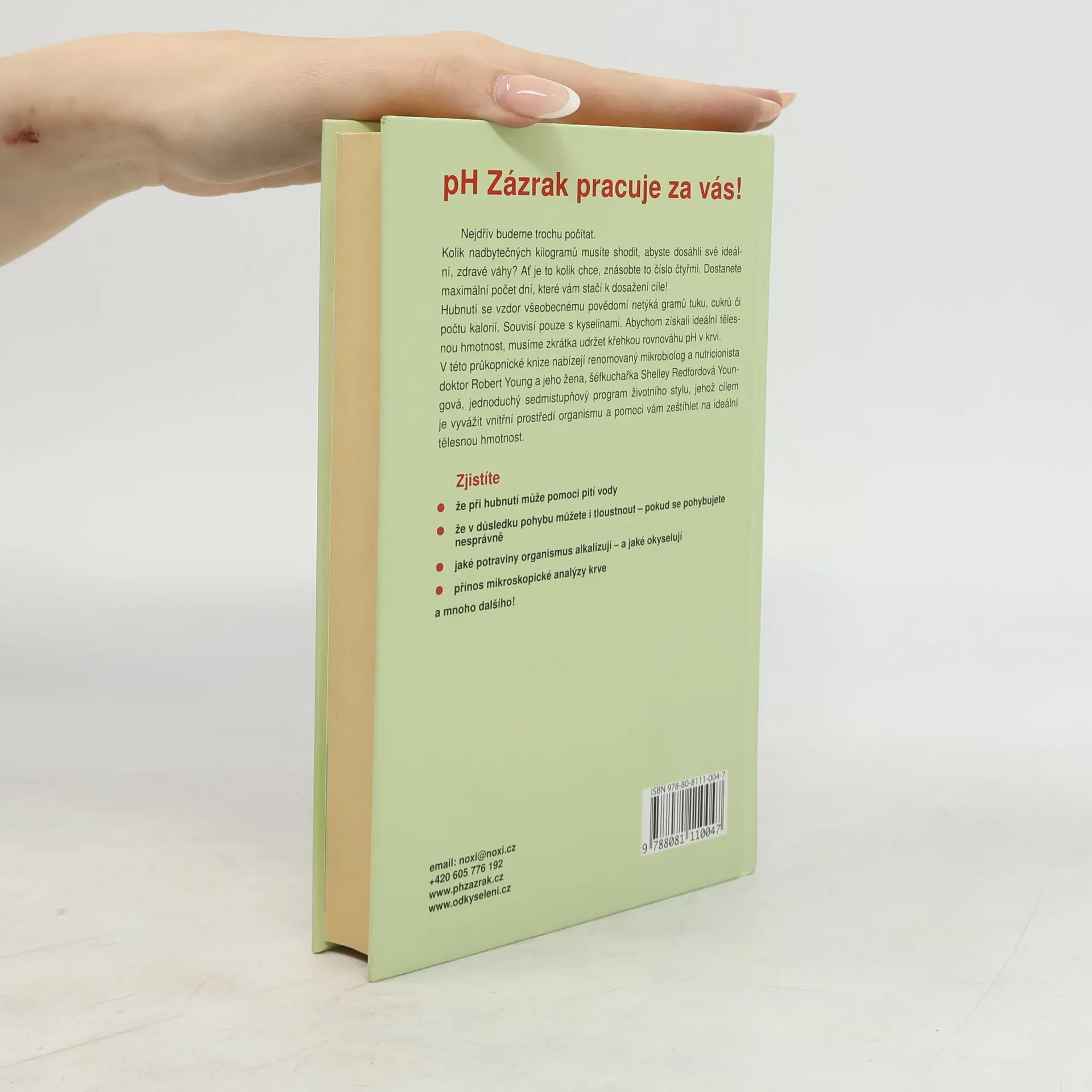 Jak dosáhnout vyváženého vnitřního prostředí a ideální tělesné hmotnosti. Nejdřív budeme trochu počítat. Kolik nadbytečných kilogramů musíte shodit, abyste dosáhli své ideální, zdravé váhy? Ať je to kolik chce, znásobte to číslo čtyřmi. Dostanete maximální počet dní, které vám stačí k dosažení cíle! Hubnutí se vzdor všeobecnému povědomí netýká gramů tuku, cukrů či počtu kalorií. Souvisí pouze s kyselinami. Abychom získali ideální tělesnou hmotnost, musíme zkrátka udržet křehkou rovnováhu pH v krvi. V této průkopnické knize nabízejí renomovaný mikrobiolog a nutricionista doktor Robert Young a jeho žena, šéfkuchařka Shelley Redfordová Youngová, jednoduchý sedmistupňový program životního stylu, jehož cílem je vyvážit vnitřní prostředí organismu a pomoci vám zeštíhlet na ideální tělesnou hmotnost. Zjistíte - že při hubnutí může pomoci pití vody - že následkem pohybu můžete i tloustnout pokud se pohybujete nesprávně - jaké potraviny organismus alkalizují a jaké okyselují - přínos mikroskopické analýzy krve a mnoho dalšího!