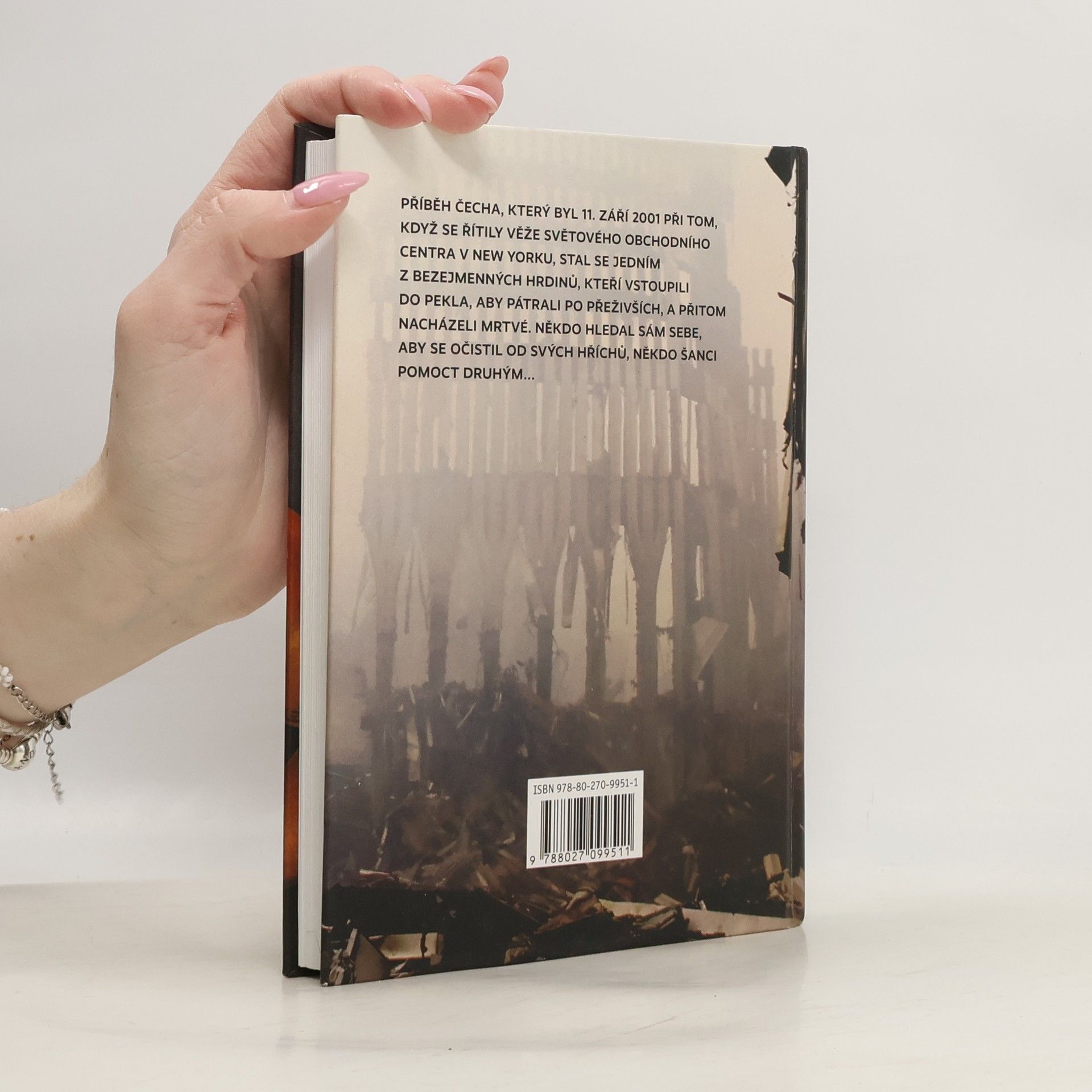 Autobiografický příběh Čecha, který pracoval v září roku 2001 jako projektový manažer na jedné z newyorských staveb a po útoku na New York se podílel na záchranných a odklízecích pracích v oblasti Světového obchodního centra. Kniha přibližuje atmosféru v New Yorku v období jednoho roku (od léta 2001). Bezprostředně po teroristickém útoku na věže WTC začal autor-hlavní hrdina pomáhat při odstraňování trosek na Manhattanu. Knížka, ve které se mísí skutečné a fiktivní postavy a v níž se střídají románové postupy a vysloveně reportážní popis událostí, výstižně zachycuje situaci a nálady obyvatel New Yorku po 11. září - na jedné straně hluboké zoufalství, na druhé obrovské odhodlání jít a žít dál. Publikace na pomezí beletrie a literatury faktu obsahuje množství zajímavých informací o New Yorku, jeho historii, architektuře a jeho obyvatelích. Je jakýmsi vyznáním lásky autora k městu, ve kterém pracuje a žije (knihu v textu přirovnává k "milostnému dopisu nejúžasnějšímu městu New Yorku"). Na obálce je použita fotografie jednoho z přeživších amerických hasičů Tiernacha Cassidyho, jehož tetovaná záda jsou vzpomínkou na zemřelé kamarády.