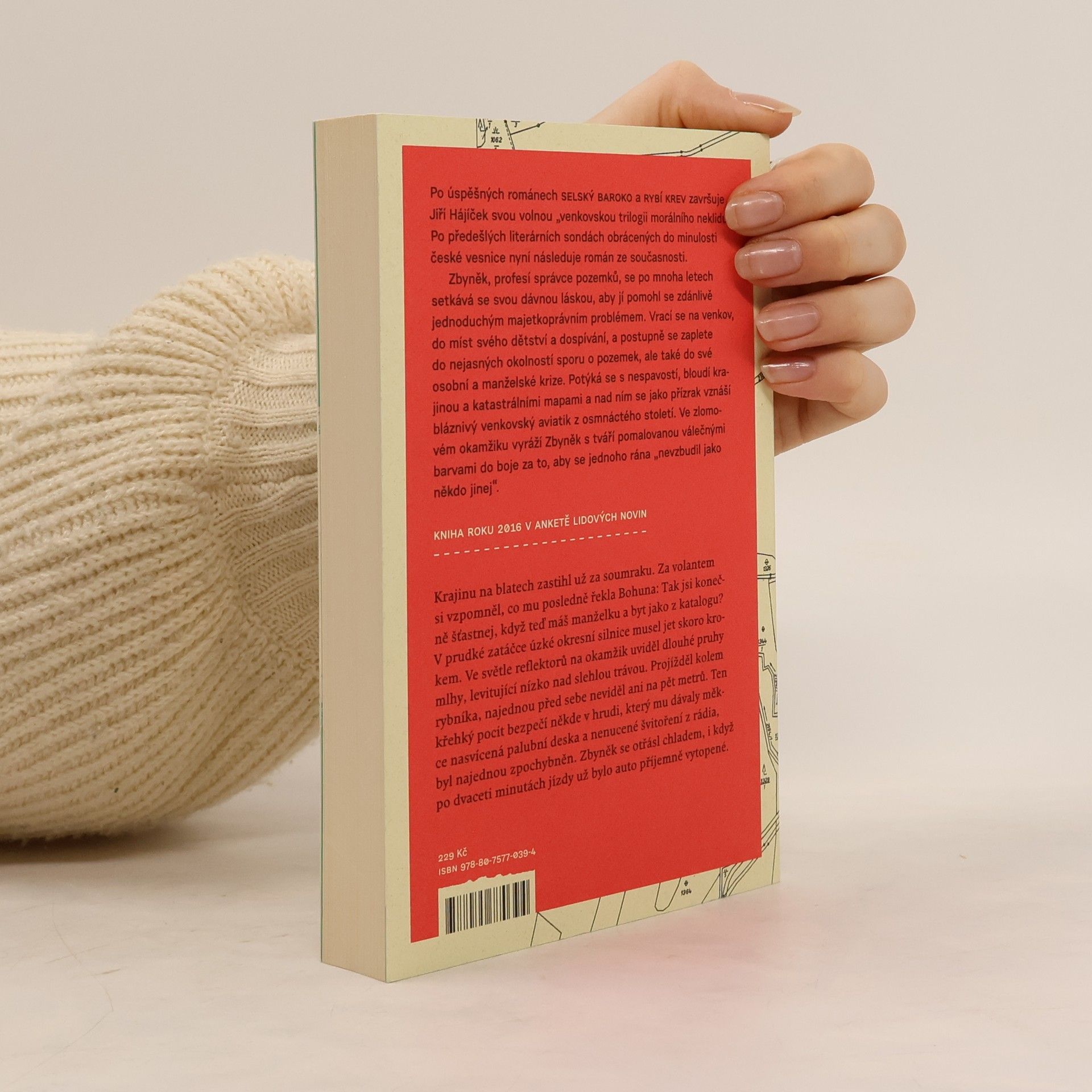 Po úspěšných románech Selský baroko a Rybí krev završuje Jiří Hájíček svou volnou „venkovskou trilogii morálního neklidu“. Předešlé literární sondy obrácené do minulosti české vesnice následuje nyní román ze současnosti. Opět silný příběh, v němž kromě lidí tentokrát hrají důležitou roli pozemky — zděděná pole a spory kolem jejich vlastnictví. Venkovská krajina jihočeských blat je vůbec v textu silně přítomna a kromě jedinečné atmosféry dodává příběhu i historický kontext a také nepřímo vstupuje do osudů hlavních postav. Zbyněk, profesí správce pozemků, se po mnoha letech setkává se svou dávnou láskou, aby jí pomohl se zdánlivě jednoduchým majetkoprávním problémem. Vrací se na venkov, na místa svého dětství a dospívání, a zamotává se do nejasných okolností pozemkového sporu, ale také do osobní a manželské krize. Potýká se s nespavostí, bloudí krajinou a katastrálními mapami a nad ním se jako přízrak vznáší bláznivý venkovský aviatik z osmnáctého století. Ve zlomovém okamžiku jde Zbyněk s tváří pomalovanou válečnými barvami do boje. Za to, co považuje za správné, za sny dětství a „aby se jednoho rána neprobudil jako někdo jiný“.