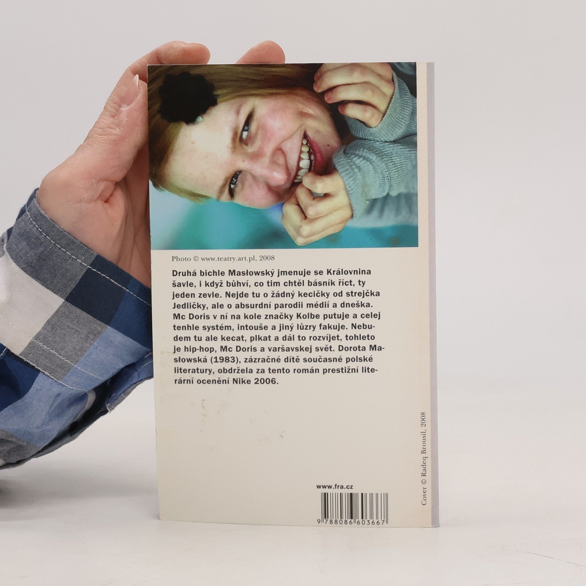 Dorotě Maslowské bylo 22 let, když napsala Královninu šavli, svou druhou knihu, na kterou všichni tak dlouho čekali. Zázračná dívka polské literatury už jednu revoluci udělala: její debut Červená a bílá (česky 2004) znamenal vpád mladé generace do vydýchaného ovzduší polské prózy. Kniha byla přeložena do mnoha jazyků, několikrát inscenována, natáčí se její filmová adaptace. Autorka se objevuje v módních časopisech, v bulváru, uděluje jeden rozhovor za druhým... Po delší odmlce, v roce 2005, vydává Královninu šavli, a všechno se rozbíhá nanovo. Obhájit titul je však těžší, než jej získat. Přesto Dorota všem vytřela zrak. Kritici čekali uhlazenost, vytříbenost, propracovaný styl, a dostali agresivní fosforovou hmotu, jež pohltila nejen hrdiny a vypravěče, ale také autorku a nakonec i čtenáře.
