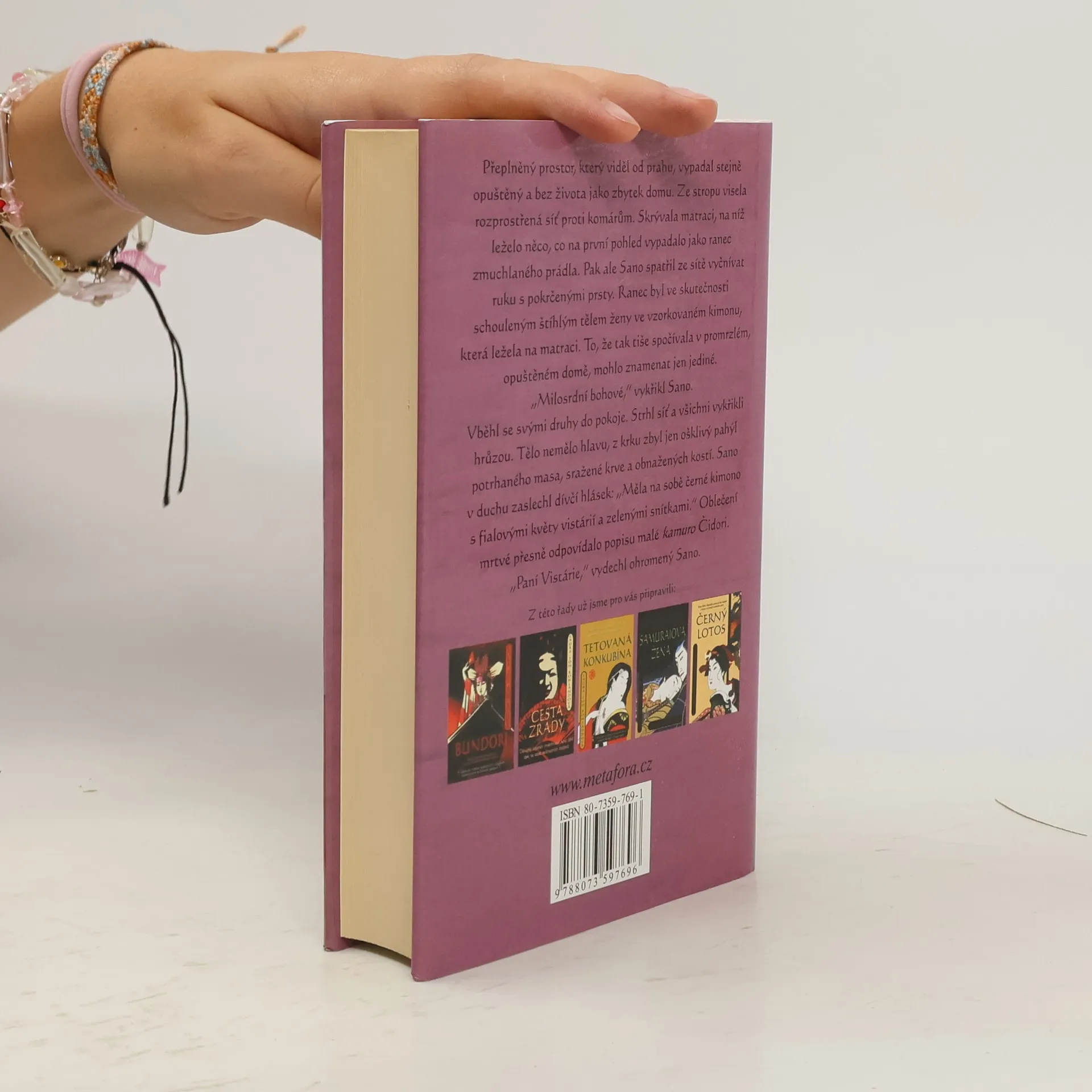 Historický detektivní román ze starého Japonska o vraždě šógunova následníka, kterou řeší samuraj a vyšetřovatel Sano Ičiró. V budoáru veřejného domu byl zavražděn bratranec a zamýšlený nástupce samotného šóguna, jeho smyslná společnice kurtizána Vistárie zmizela a s ní i její deník. Sano, který s ní měl kdysi pletky, stojí před těžkým úkolem: vypátrat vraha a zatajit svůj dávný prohřešek. Nepřátelské intriky nakonec způsobí, že je sám obviněn; v nebezpečí života musí zdvojnásobit své pátračské úsilí, při čemž mu vydatně pomáhá neohrožená choť Reiko. Tentokrát nás autorka vpouští do zábavní čtvrti Jošiwara, sídla svůdných doupat neřesti. Tradičně napínavý, již sedmý příběh ctihodného Sana Ičiró opět vyvolává fascinující atmosféru japonského šógunátu v 17. století