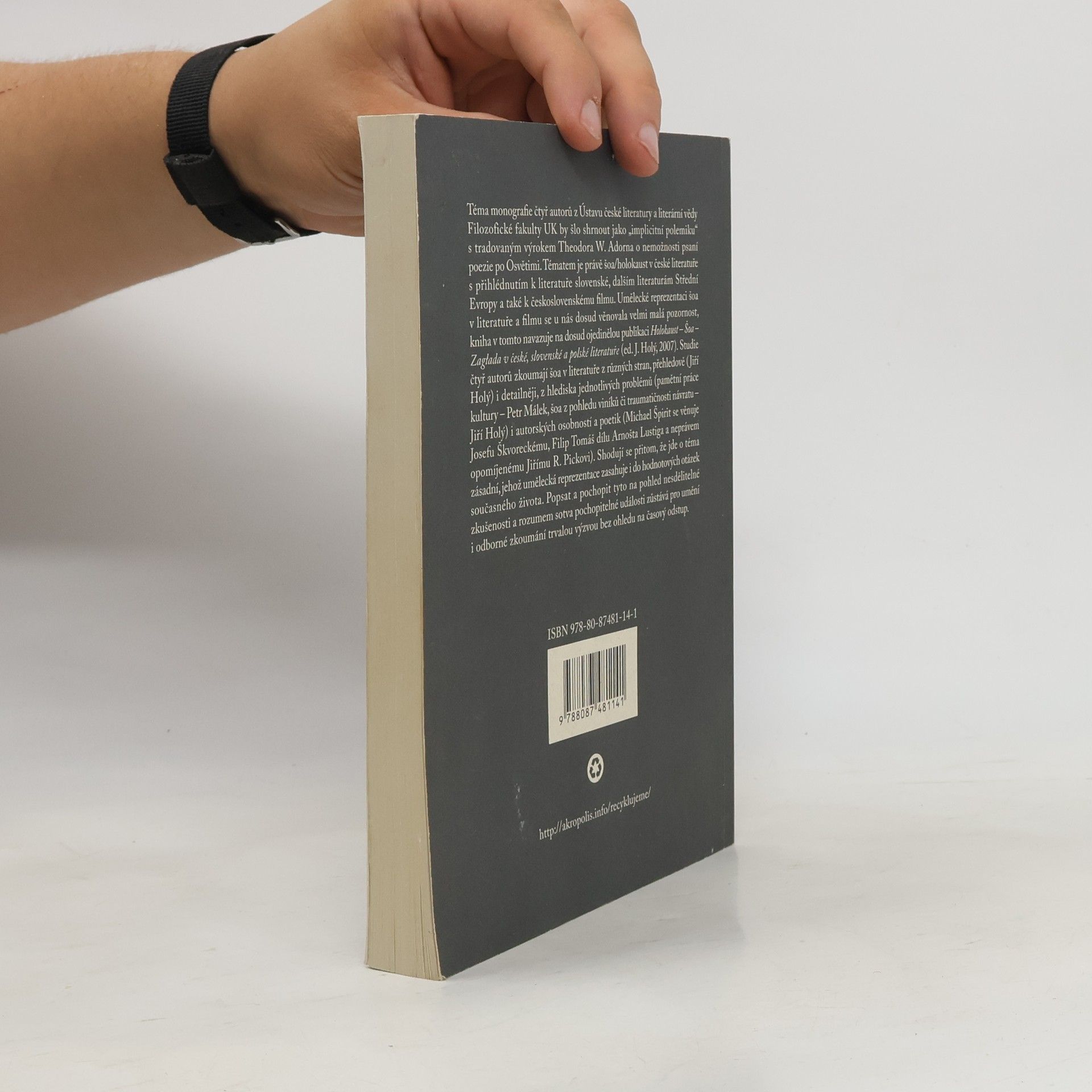 Téma monografie čtyř autorů z Ústavu české literatury a literární vědy Filozofické fakulty UK by šlo shrnout jako "implicitní polemiku" s tradovaným výrokem Theodora W. Adorna o nemožnosti psaní poezie po Osvětimi. Tématem je právě šoa/holokaust v české literatuře s přihlédnutím k literatuře slovenské, dalším literaturám Střední Evropy a také k československému filmu. Umělecké reprezentaci šoa v literatuře a filmu se u nás dosud věnovala velmi malá pozornost, kniha v tomto navazuje na dosud ojedinělou publikaci Holokaust v české, slovenské a polské literatuře (ed. J. Holý, 2007). Studie čtyř autorů zkoumají šoa v literatuře z různých stran, přehledově (Jiří Holý) i detailněji, z hlediska jednotlivých problémů (pamětní práce kultury - Petr Málek, šoa z pohledu viníků či traumatičnosti návratu - Jiří Holý) i autorských osobností a poetik (Michael Špirit se věnuje Josefu Škvoreckému, Filip Tomáš dílu Arnošta Lustiga a neprávem opomíjenému Jiřímu R. Pickovi). Shodují se přitom, že jde o téma zásadní, jehož umělecká reprezentace zasahuje i do hodnotových otázek současného života. Popsat a pochopit tyto na pohled nesdělitelné zkušenosti a rozumem sotva pochopitelné události zůstává pro umění i odborné zkoumání trvalou výzvou bez ohledu na časový odstup.
