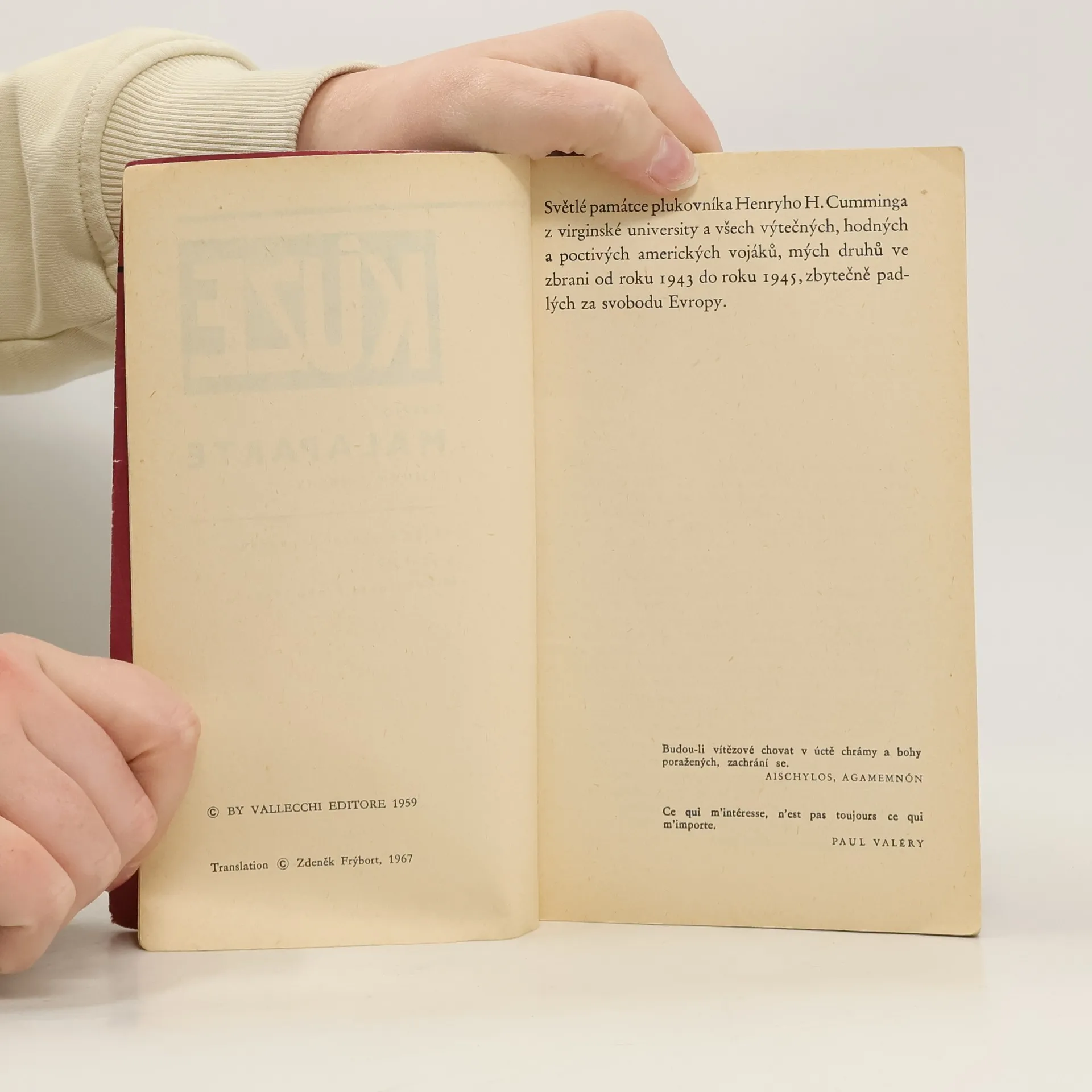 Kniha reportáží jednoho z nejvýznamnějších italských spisovatelů, která zachycuje zdrcující obraz Evropy z konce války a prvních dnů znovu získané svobody. Je to doba, kdy se pod dojmem vítězství rozkládala morálka poražených i vítězů a kdy neplatilo nic jiného než vlastní kůže. Autor zde zachycuje apokalyptické obrazy nesmyslných hrůz, lidské krutosti a mravní zkázy. Kniha, která vychází u nás téměř s dvacetiletým zpožděním, přičemž zůstává stále knihou živou a nabádající.