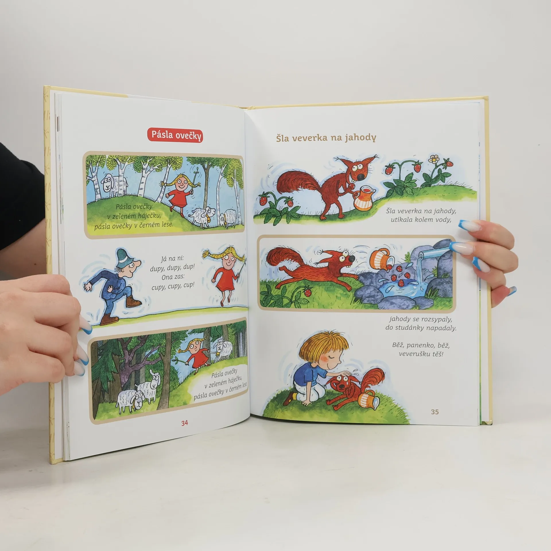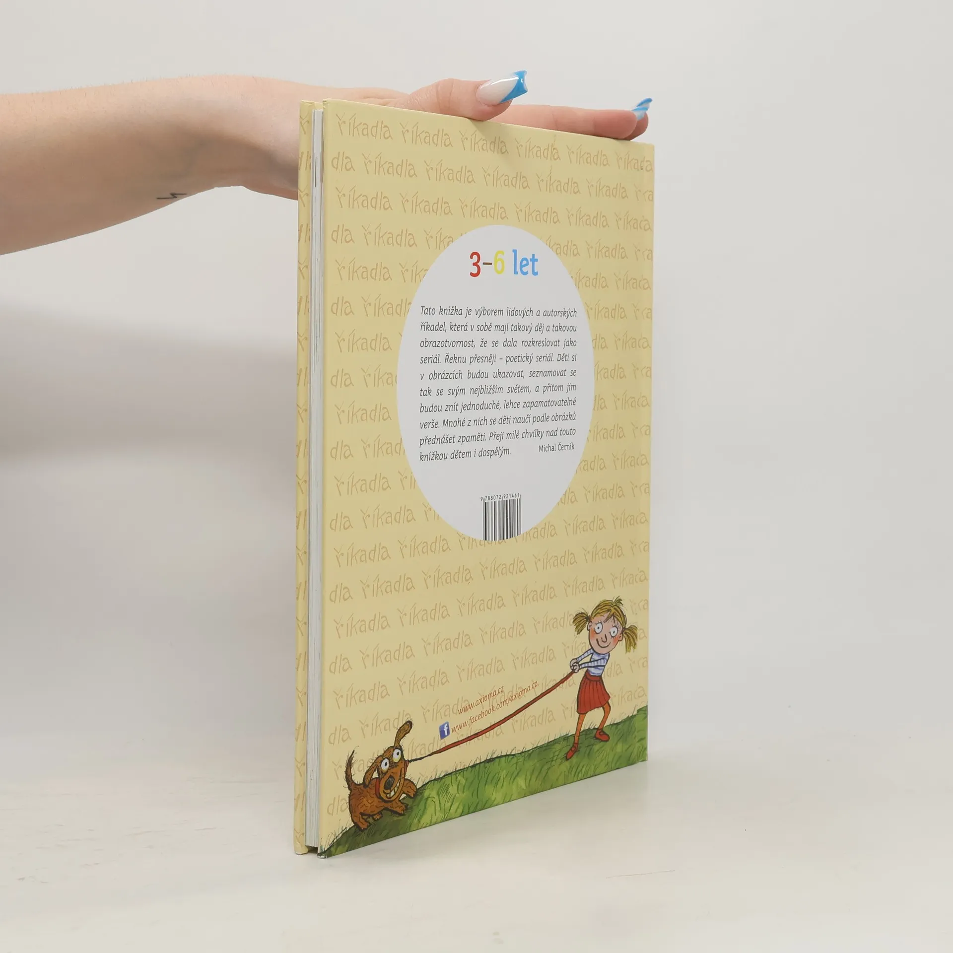 Tato knížka je výborem lidových a autorských říkadel (František Hrubín, Jan Čarek, Michal Černík, Jiří Žáček, Jan Vodňanský aj.), která v sobě mají takový děj a takovou obrazotvornost, že se každý verš dal rozkreslit do jednotlivých obrázků jako seriál nebo komiks. Děti si tak mohou v obrázcích ukazovat, seznamovat se se svým nejbližším světěm, a přitom jim budou znít jednoduché, snadno zapamatovatelné verše, které se pomocí obrázků snadno naučí nazpaměť.