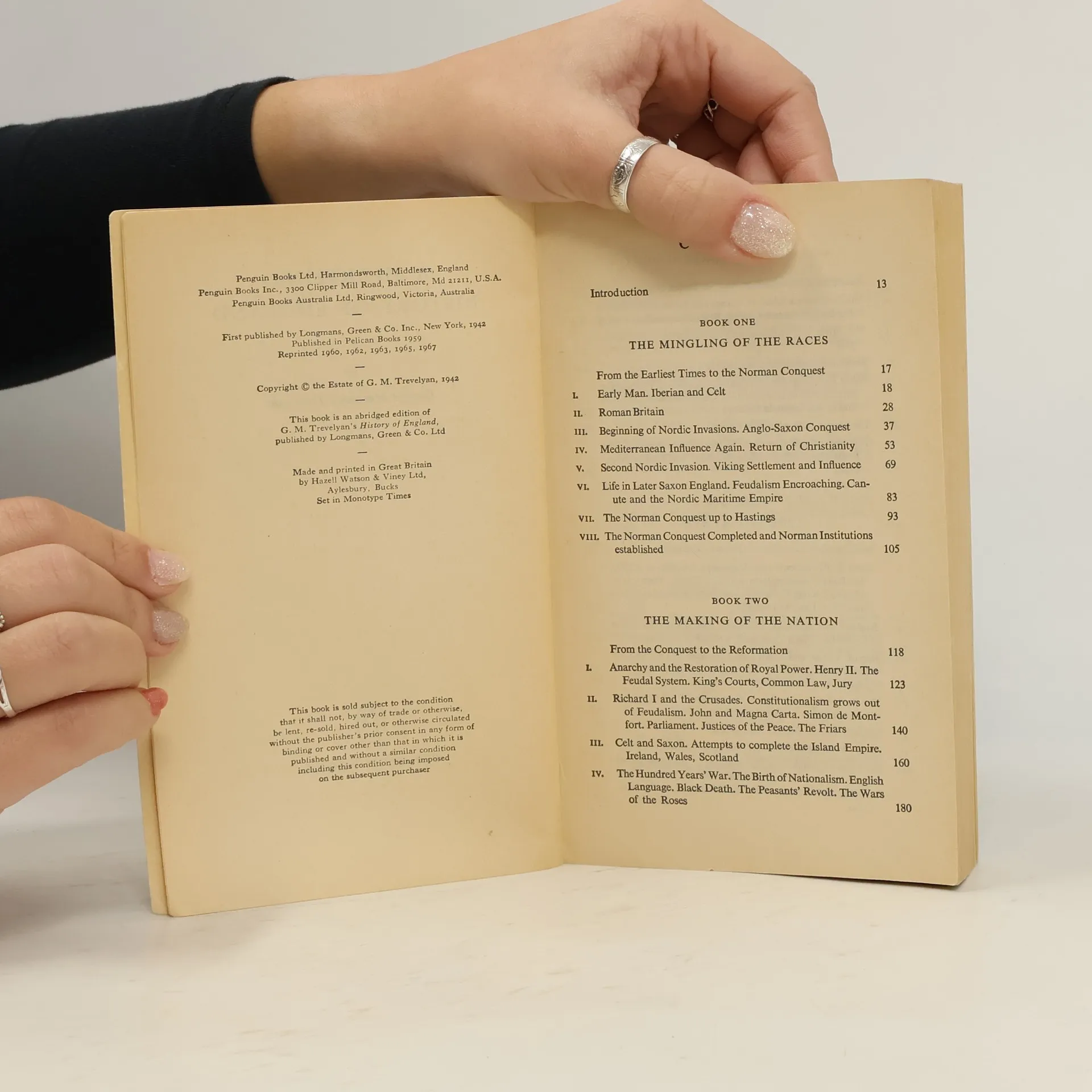 "Chronological outline for Trevelyan's History of England by William Huse Dunham, Jr.": p. [561]-586.Abridged edition of the author's History of England.Reprint. Previously published: Harmondsworth : Pelican, 1959.Includes index