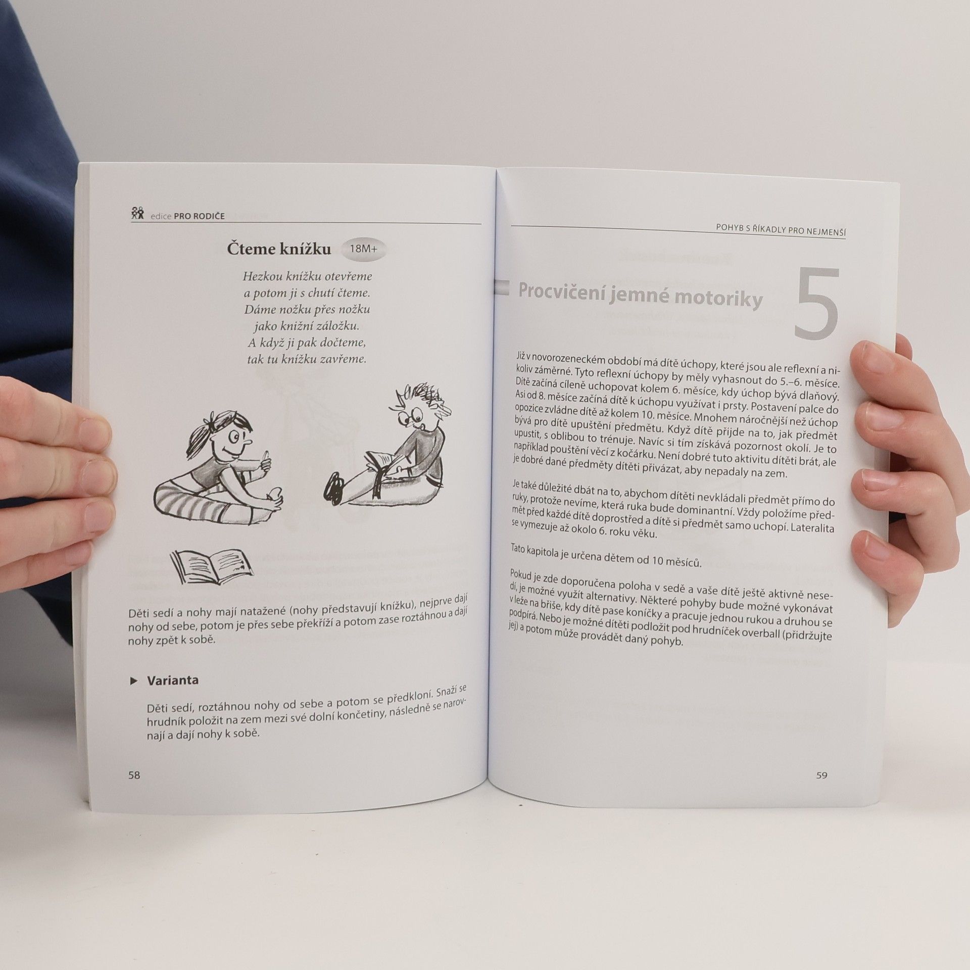 Již v prenatálním období můžeme u dětí pozorovat pohybové aktivity, které se po narození dále rozvíjejí. Přinášíme vám proto knihu plnou námětů, říkanek a praktických ukázek, jak vést své ratolesti zajímavou formou k pohybu již od útlého věku. Ptáte se, jaký mají říkanky vliv na rozvoj pohybových vlastností? Význam říkanek není pouze v tom, že je s nimi cvičení pro děti veselejší, ale i ve velkém vlivu na psychický vývoj dítěte. Děti se díky nim učí snáze mluvit a osvojí si rytmus řeči, který je tak potřebný pro získávání školních dovedností, zejména psaní a čtení. Doufáme, že se vám říkanky budou líbit a přejeme vám mnoho úspěchů při cvičení s vašimi dětmi.
