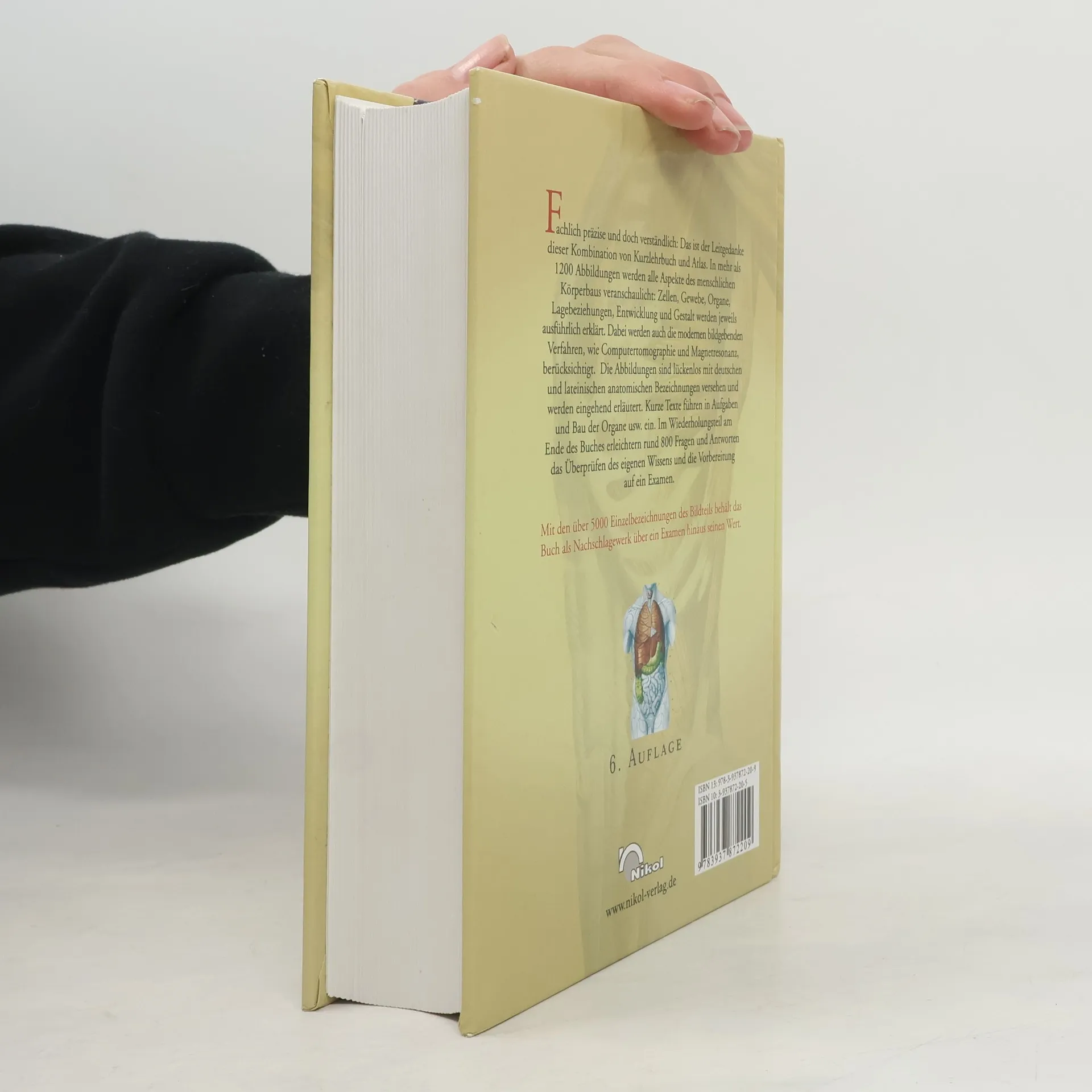 Fachlich präzise und doch verständlich: Das ist der Leitgedanke dieser Kombination von Kurzlehrbuch und atlas. In mehr als 1200 Abbildungen werden alle Aspekte des menschlichen Körperbaus veranschaulicht: Zellen, Gewebe, Organe, Lagebeziehungen, Entwicklung und Gestalt werden jeweils ausführlich erklärt. Dabei werden auch die modernen bildgebenden Verfahren, wie Computertomographie und Magnetresonanz, berücksichtigt. Die Abbildungen sind lückenlos mit deutschen und lateinischen anatomischen Bezeichnungen versehen und werden eingehend erläutert. Kurze Texte führen in Aufgaben und Bau der Organe usw. ein. Im Wiederholungsteil am Ende des Buches erleichtern rund 800 Fragen und Antworten das Überprüfen des eigenen Wissens und die Vorbereitung auf ein Examen. Mit den über 5000 Einzelbezeichnungen des Bildteils behält das Buch als Nachschlagewerk über ein Examen hinaus seinen Wert.