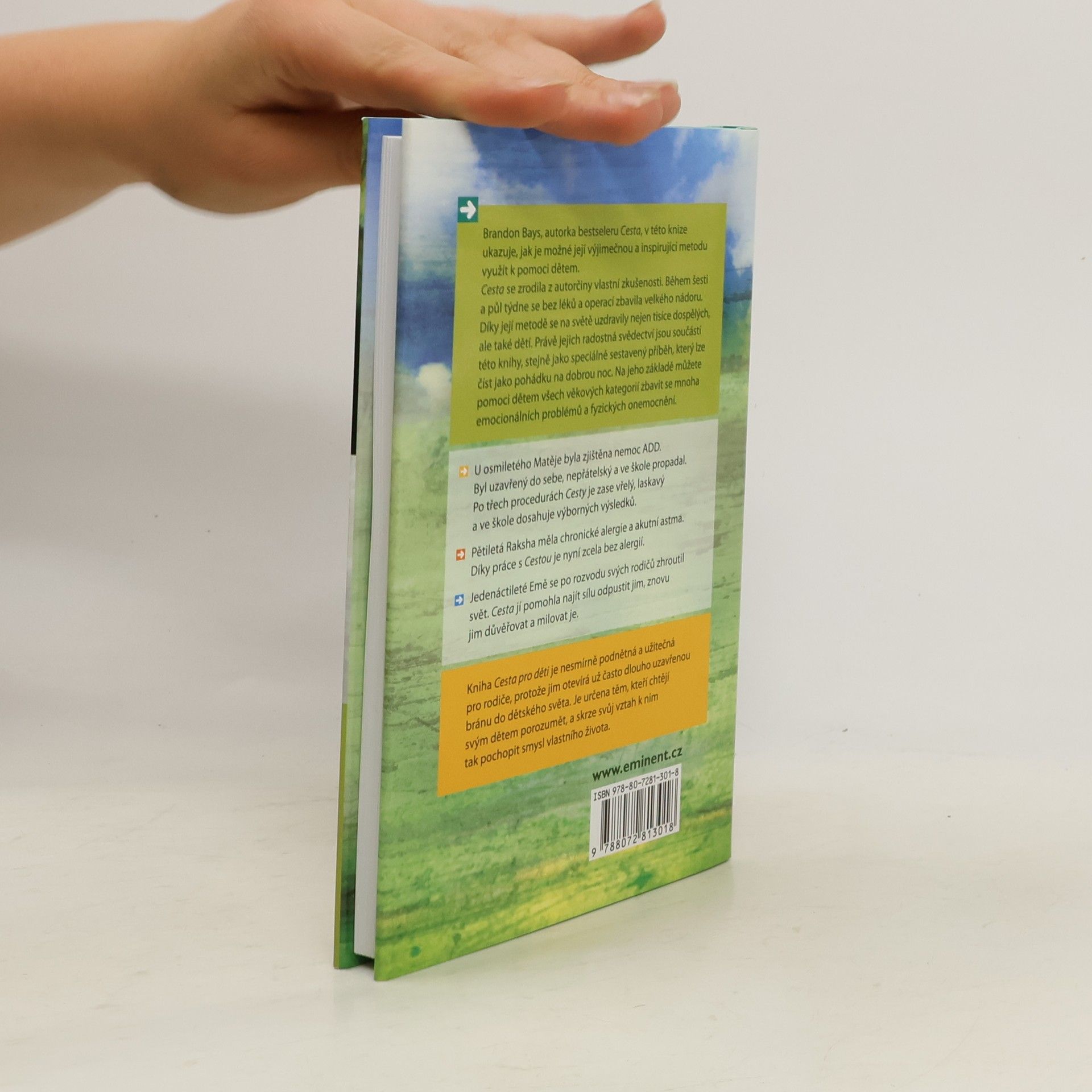 Brandon Bays, autorka bestseleru Cesta, v této knize ukazuje, jak je možné její výjimečnou a inspirující metodu využít k pomoci dětem. Cesta se zrodila z autorčiny vlastní zkušenosti. Během šesti a půl týdne se bez léků a operací zbavila velkého nádoru. Díky její metodě se na světě uzdravily nejen tisíce dospělých, ale také dětí. Právě jejich radostná svědectví jsou součástí této knihy, stejně jako speciálně sestavený příběh, který lze číst jako pohádku na dobrou noc. Na jeho základě můžete pomoci dětem všech věkových kategorií zbavit se mnoha emocionálních problémů a fyzických onemocnění.