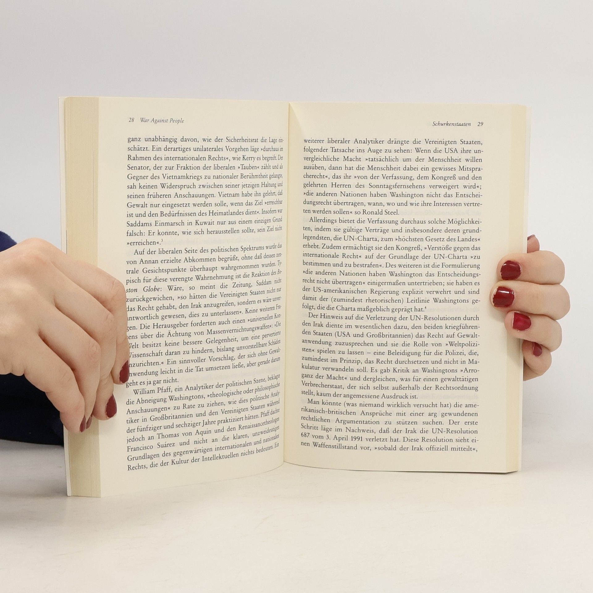 »Profit Over People« – so bezeichnet Noam Chomsky den Neoliberalismus, der den Profit über alles Menschliche stellt. Scharfsichtig kritisiert er die Logik des freien Marktes und plädiert für demokratischere Alternativen. »War Against People« ist eine Abrechnung mit den westlichen Staaten – denn sie sind die wahren Schurkenstaaten und nicht die Diktaturen der sogenannten Entwicklungsländer. Die Machtpolitik der USA missachtet die Menschenrechte und missbraucht diese zur Legitimation ihrer Gewaltanwendung.