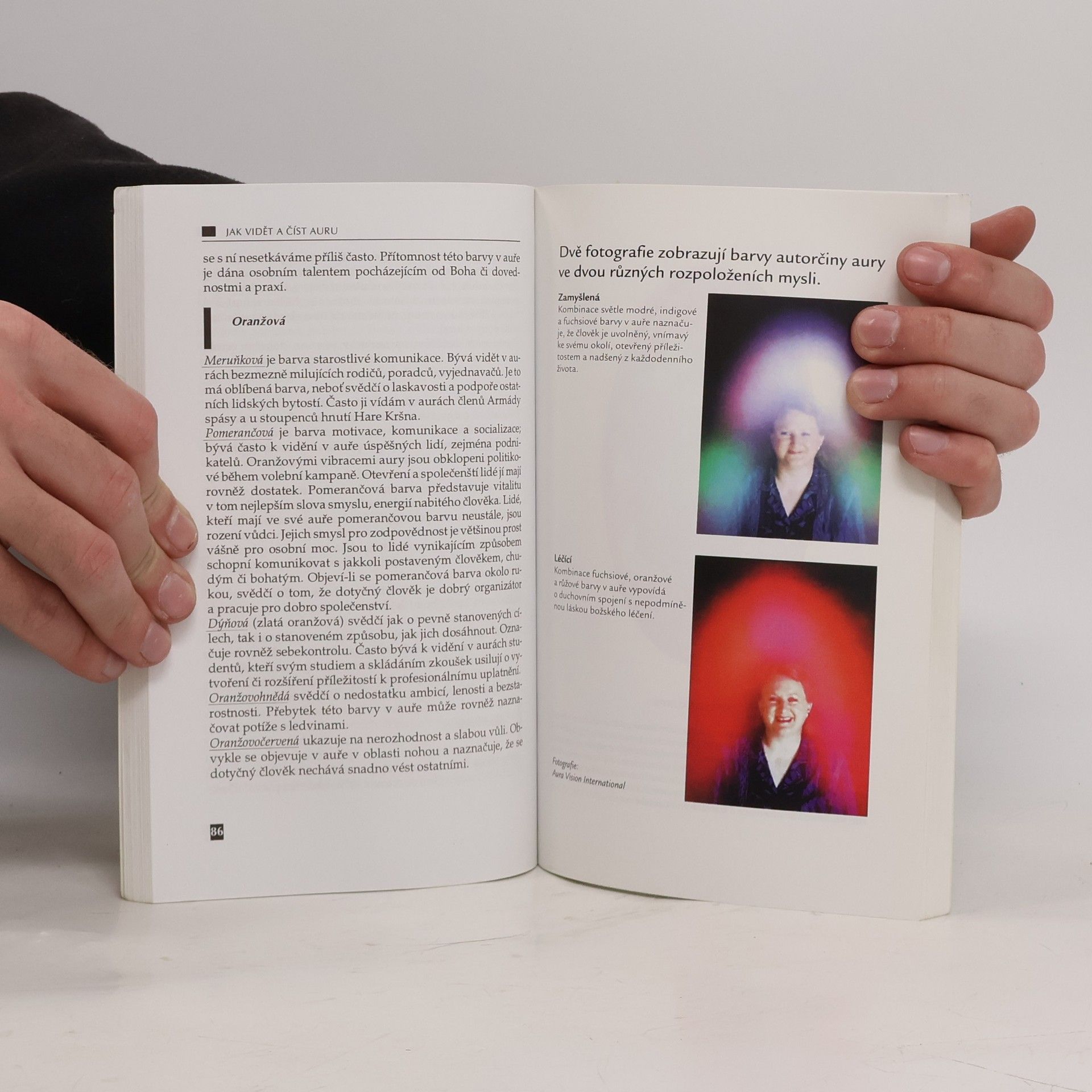 Jak se naučit znát svou auru a jak ji posílit a chránit, jak porozumět sobě i ostatním, jak na sebe aury vzájemně působí a jak využít schopnost vidět auru k analýze a léčení sebe sama. Obsah: Předmluva Úvodem 1. Má cesta 2. Lidská aura 3. Jak vidět a vnímat auru 4. Barvy v auře 5. Zdraví a aura 6. Živoucí aura přírody 7. Zesilování a ochrana aury 8. Dvacet nejčastějších otázek Zdroje Rejstřík