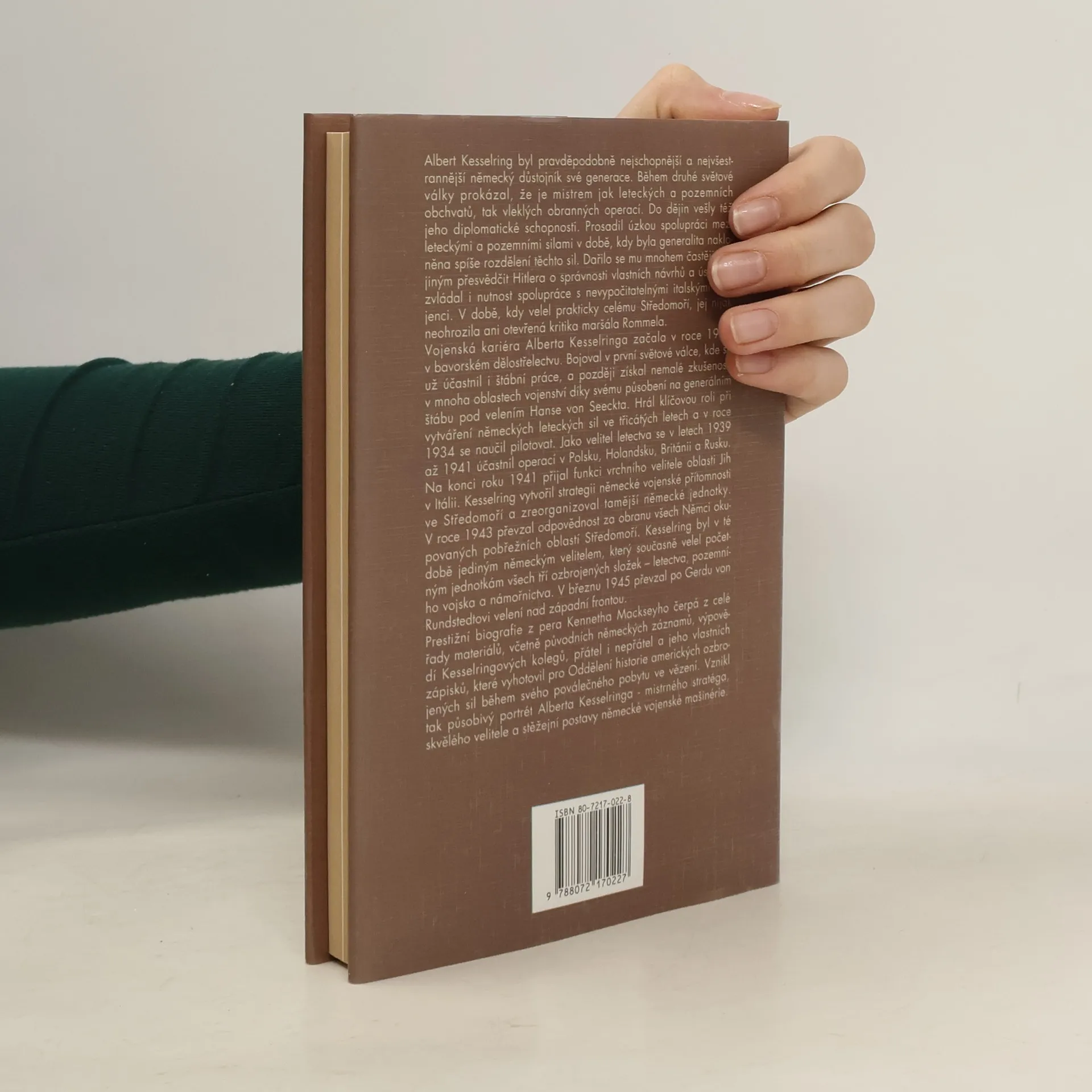 Prestižní biografie čerpá z celé řady materiálů, včetně původních německých záznamů, výpovědí Kesselringových kolegů, přátel i nepřátel a jeho vlastních zápisků, které vyhotovil pro Oddělení historie amerických ozbrojených sil během svého poválečného pobytu ve vězení. Vznikl tak působivý portrét Alberta Kesselringa - mistrného stratéga, skvělého velitele a stěžejní postavy německé vojenské mašinérie.