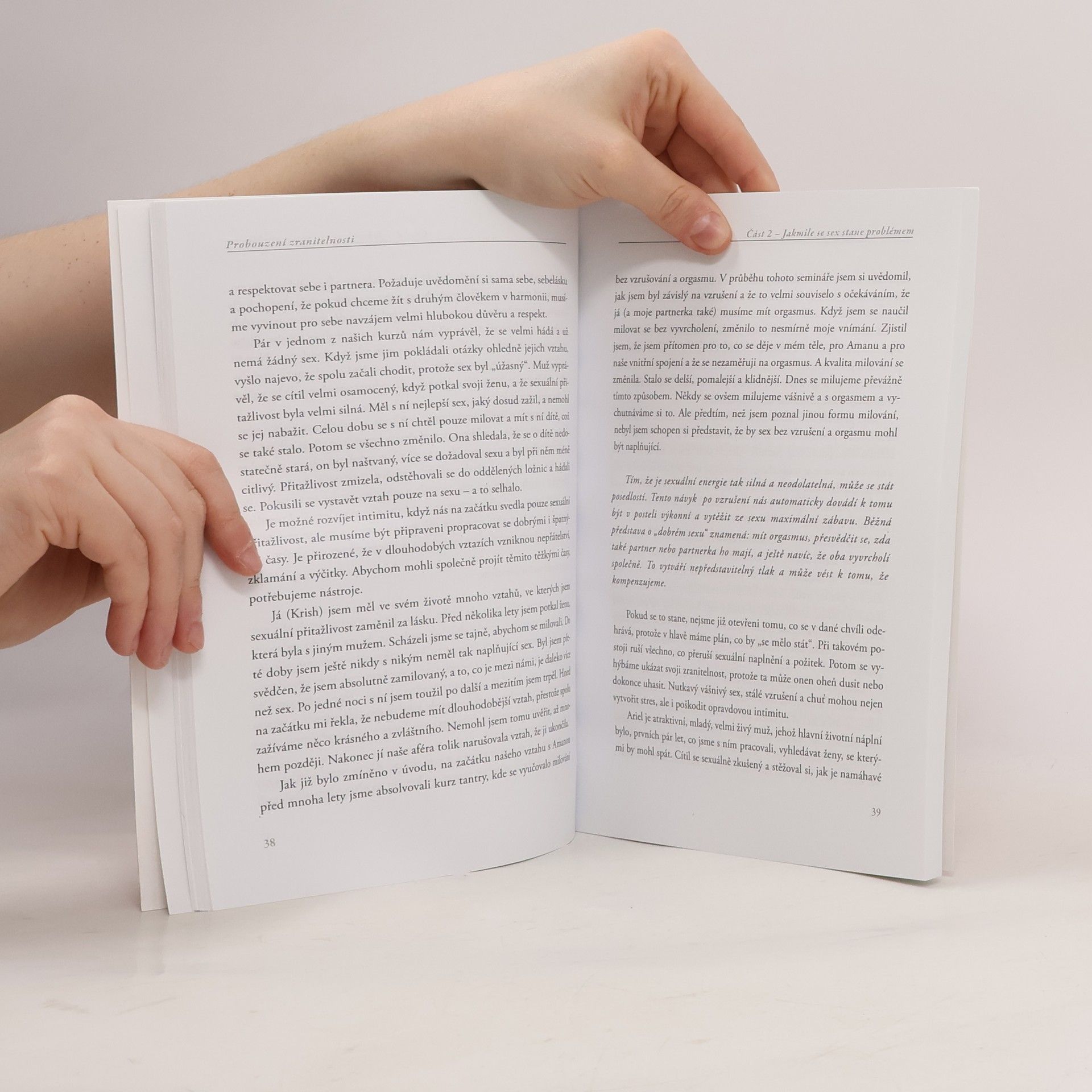 Když se s někým seznámíme a zamilujeme se, je sex většinou vášnivý a vzrušující. Ale čím hlubší je intimita, mění se také sex. Při milování může vyvstat strach, stud a pochybnosti o nás samých. V této knize nabízejí autoři způsob, jak spojit dohromady sexualitu a zranění, aby se rozvinula možnost prožívat hlubší a bohatší intimitu. Vztahy a sexualita ztroskotávají velmi často právě proto, že nerozumíme citlivosti toho druhého a chybí nám nástroje k vzájemné komunikaci a rozpuštění hněvu a bolesti. Tato kniha ukazuje konkrétní cesty, jak s těmito tématy zacházet.