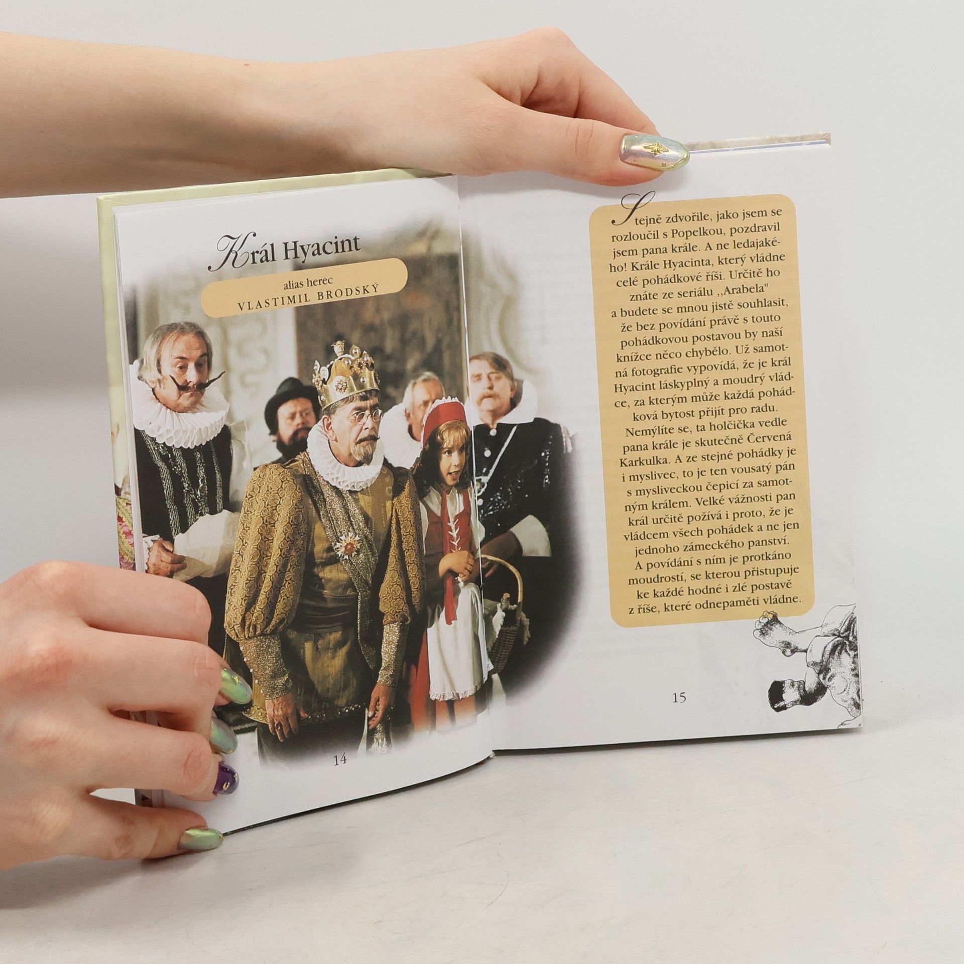 Rozhovory s filmovými a televizními představiteli pohádkových postav jsou zaměřeny na dětského čtenáře. Na vysokém kopci stojí zámek plný kouzel. Za úplňku se sem sjíždějí snad všechny pohádkové postavy. Veselí se, tančí, hodují - a autor této knížky měl to štěstí, že se mu podařilo s některými z nich pohovořit. Zajímá vás nejoblíbenější jídlo Popelky Evy Hruškové? Nebo s čím si nejraději hrál malý Princ Ricardo Michala Dlouhého? Čeho se v dětství může bát čert - třeba ten z pohádky "Z pekla štěstí"? A kterou pohádku měla nejraději Zlatovláska Jorga Kotrbová, když byla tak velká jako vy? Na to všechno (a ledacos dalšího) byl zvědavý i Luboš Nečas. Co se dověděl, sepsal v této knížce - a doplnil recepty na oblíbená jídla pohádkových představitelů.
