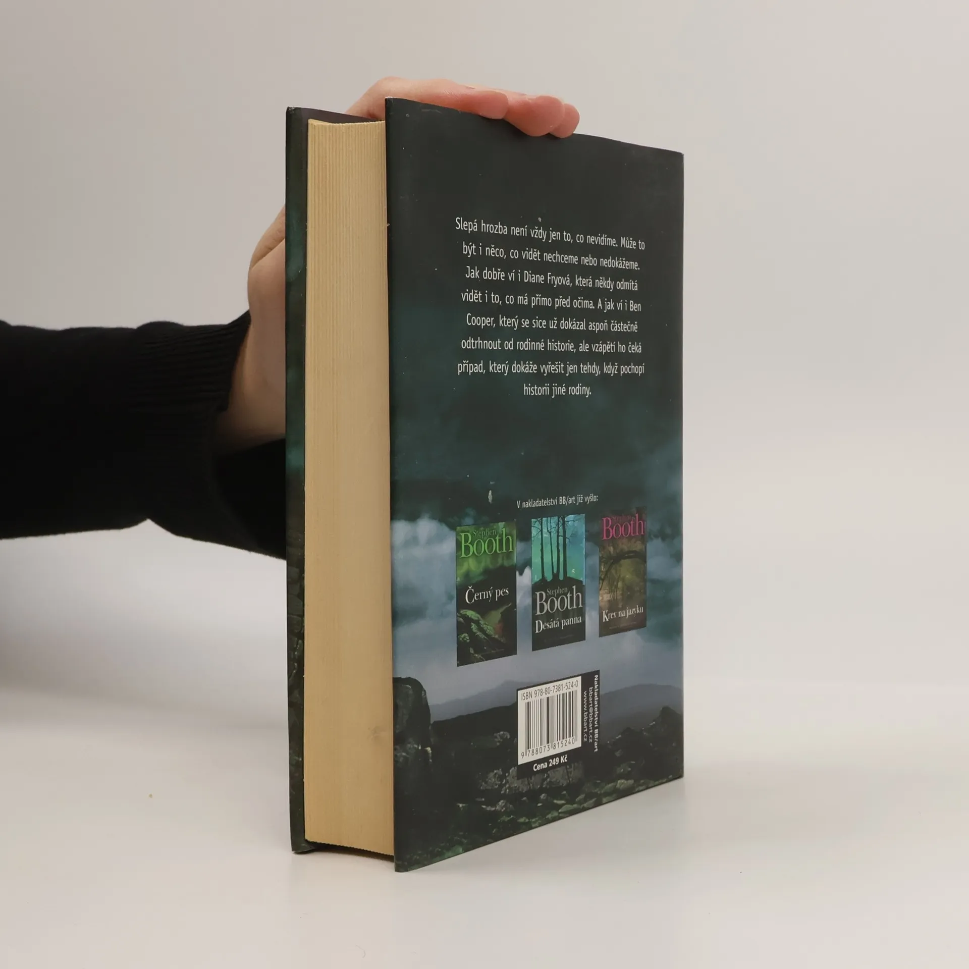 Slepá hrozba není vždy jen to, co nevidíme. Může to být i něco, co vidět nechceme nebo nedokážeme. Jak dobře ví i Diane Fryová, která někdy odmítá vidět i to, co má přímo před očima. A jak ví i Ben Cooper, který se sice už dokázal aspoň částečně odtrhnout od rodinné historie, ale vzápětí ho čeká případ, který dokáže vyřešit jen tehdy, když pochopí historii jiné rodiny. Blíží se květen a pod Černou horou leží vesnice Withens. Není to žádná poklidná víska, ale místo vandalismu, zlodějství a podivných zmizení. A nyní i vraždy.