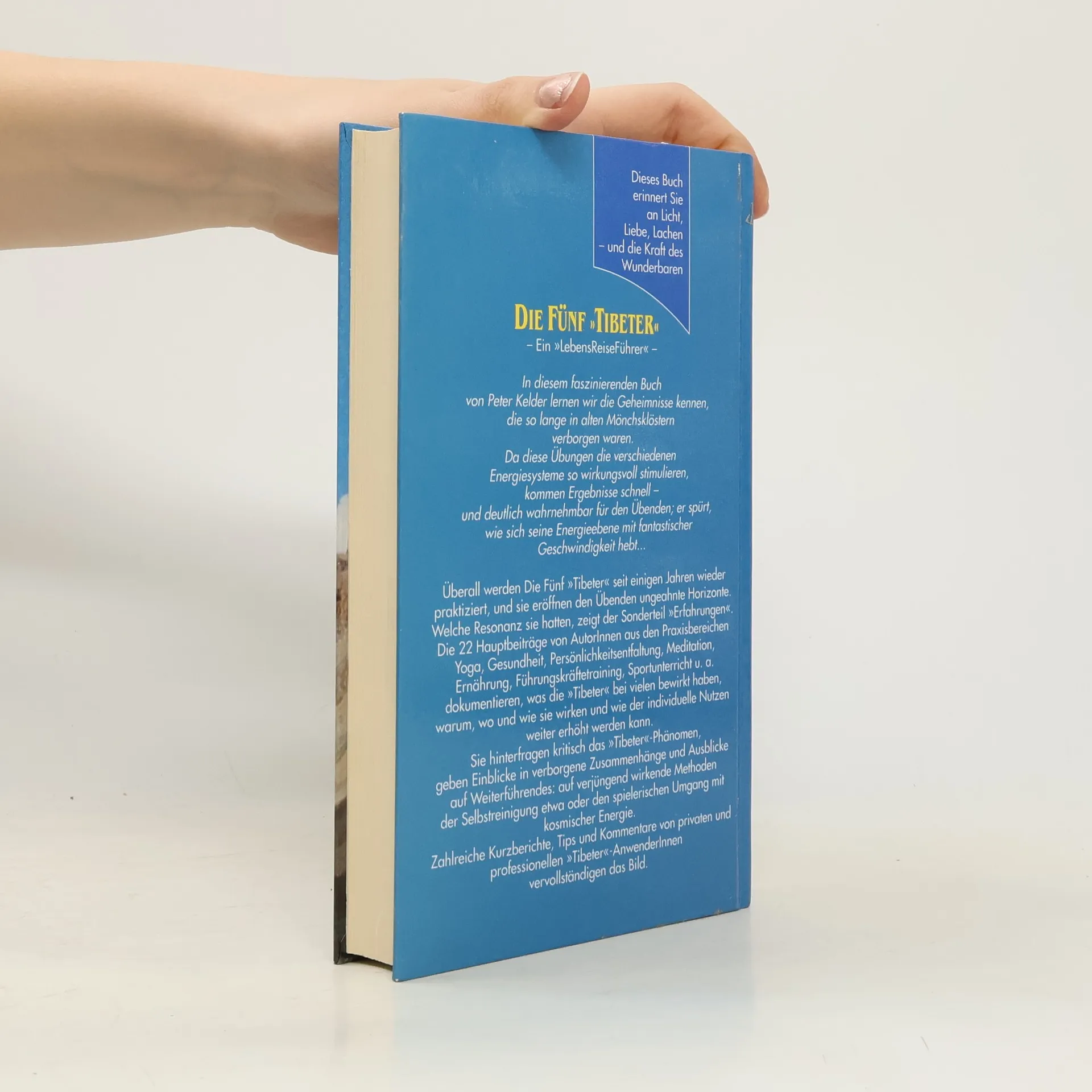 Das alte Geheimnis aus den Hochtlern des Himalaya lt Sie Berge versetzen. Umfangreicher ServiceteilGebundenes BuchSanfte Wellness mit den Fnf "Tibetern"In einem verborgenen Kloster im Himalaja entdeckte Peter Kelder die Quelle ewiger Jugend. Mit den bungen der Fnf "Tibeter" lernte er den sanften Weg zu Wellness - den Schlssel zu mehr Lebendigkeit und Krperbewusstsein. ber 1,3 Millionen Menschen steigern heute allein in Deutschland ihr Wohlbefinden mit diesen bungen. 15 Minuten "Tibetern" tglich und Sie sind fit!
