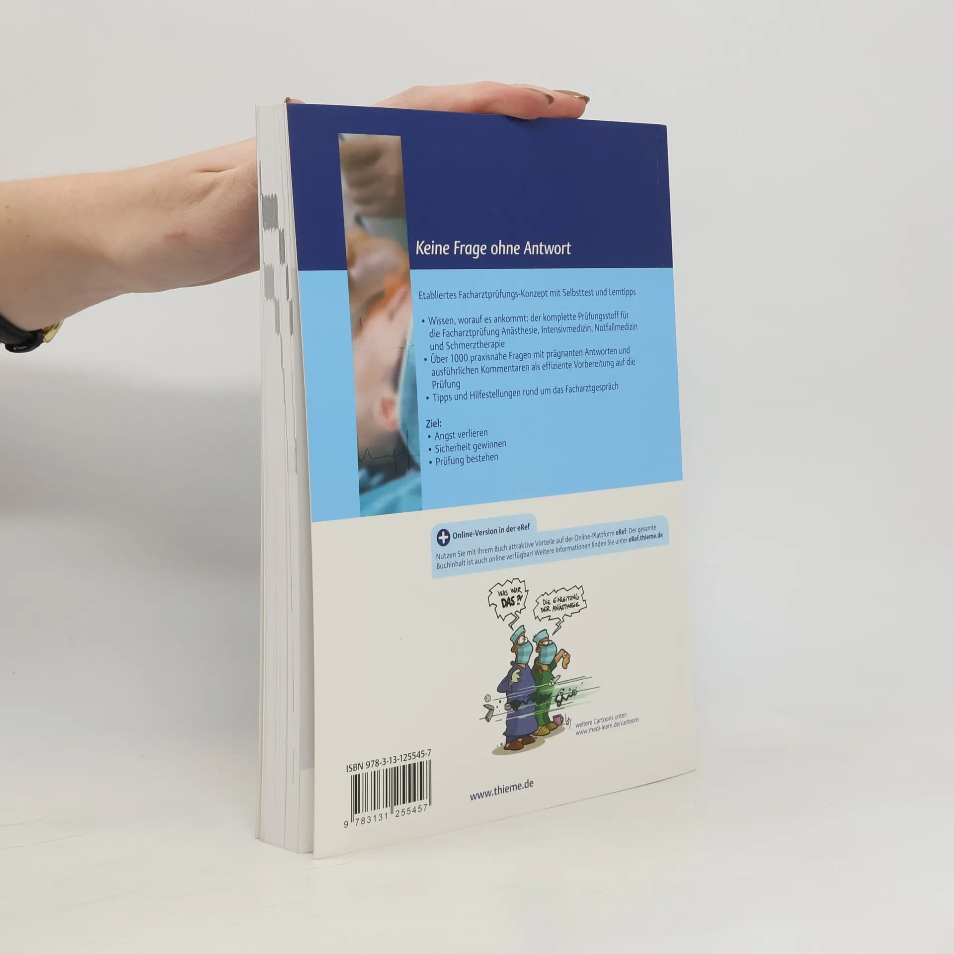 Locker über die letzte Hürde Selbsttest und Lerntipps: Schätzen Sie Ihren Lernstil realistisch ein und optimieren Sie ihn. Prüfungsrhetorik: Trainieren Sie aktiv die „Prüfungskommunikation“. Organisation: Vergessen Sie nichts bei Antragstellung und Einreichung der Unterlagen Sie wissen, was auf Sie zukommt. Sie haben den kompletten Prüfungsstoff durchgearbeitet. Sie gehen stress- und angstfrei in die Prüfung. Optimale Prüfungsvorbereitung durch über 1000 Fragen aus allen Themengebieten der Anästhesie, Intensivmedizin, Notfallmedizin und Sch Systematisches Lernen und praxisnahe Erfolgskontrolle durch die Prüfu Trainieren, auf was es ankommt: komplexe Fragestellungen strukturiert beantworten, klinische Probleme Schritt für Schritt lösen, Fakten bewerten, Kernsätze erarbeiten etc. Optimal zur Prüfungsvorbereitung, aber auch für Fachärzte zur Repetition, Überprüfung und Vertiefung ihres Wissens