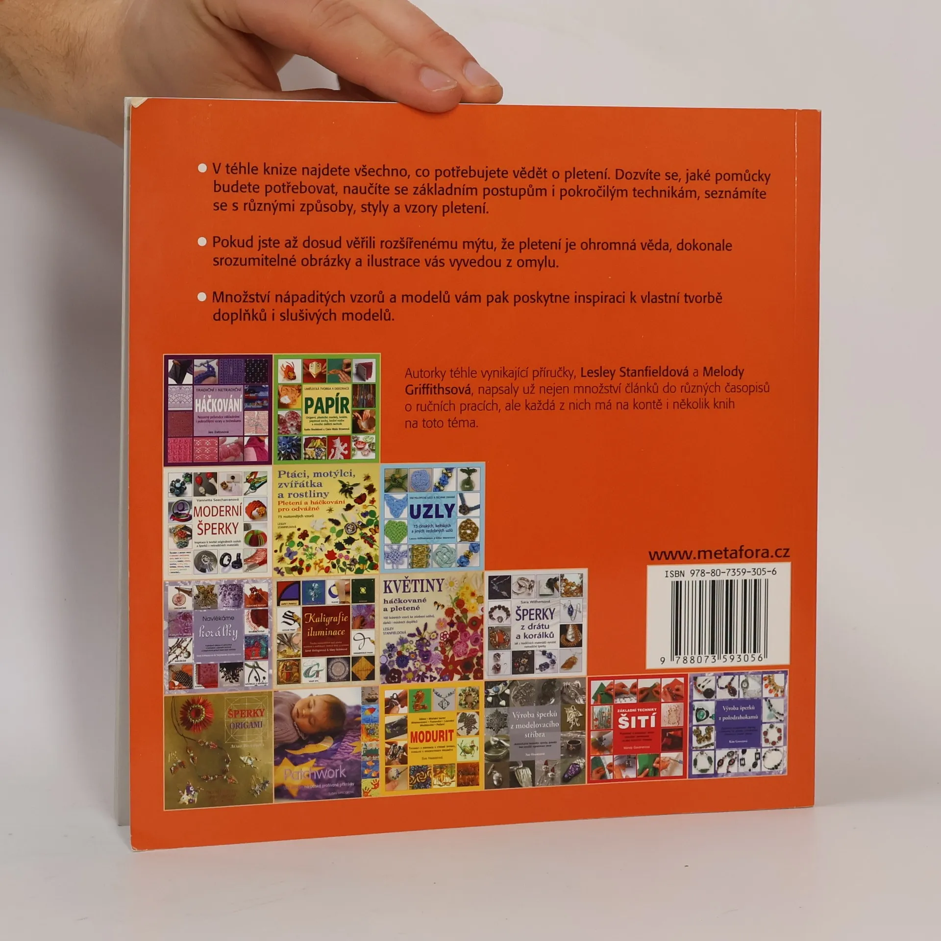 Názorný průvodce základními i pokročilými vzory a technikami- V téhle knize najdete všechno, co potřebujete vědět o pletení. Dozvíte se, jaké pomůcky budete potřebovat, naučíte se základním postupům i pokročilým technikám, seznámíte se s různými způsoby, styly a vzory pletení. Pokud jste až dosud věřili rozšířenému mýtu, že pletení je ohromná věda, dokonale srozumitelné obrázky a ilustrace vás vyvedou z omylu. Množství nápaditých vzorů a modelů vám pak poskytne inspiraci k vlastní tvorbě doplňků i slušivých modelů.