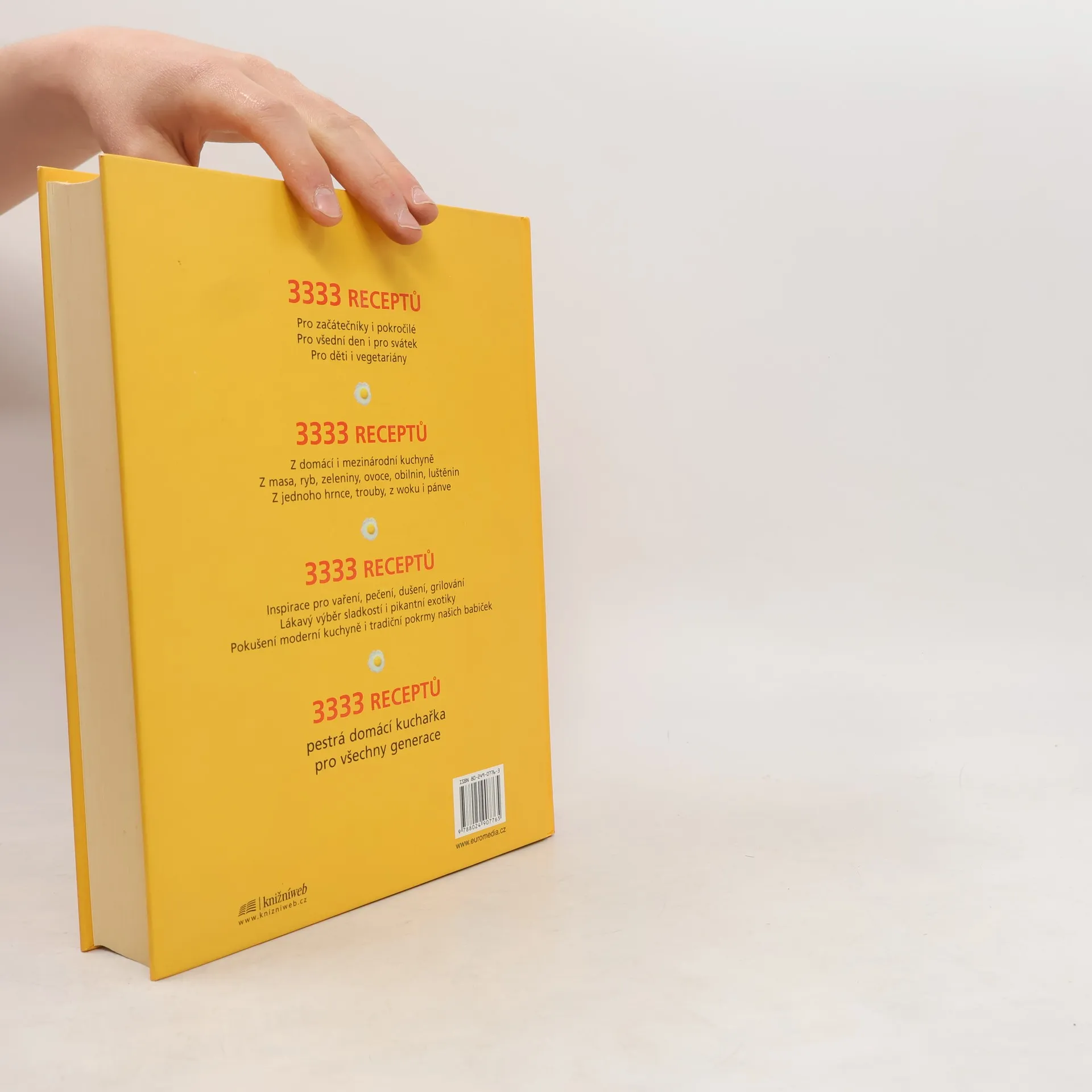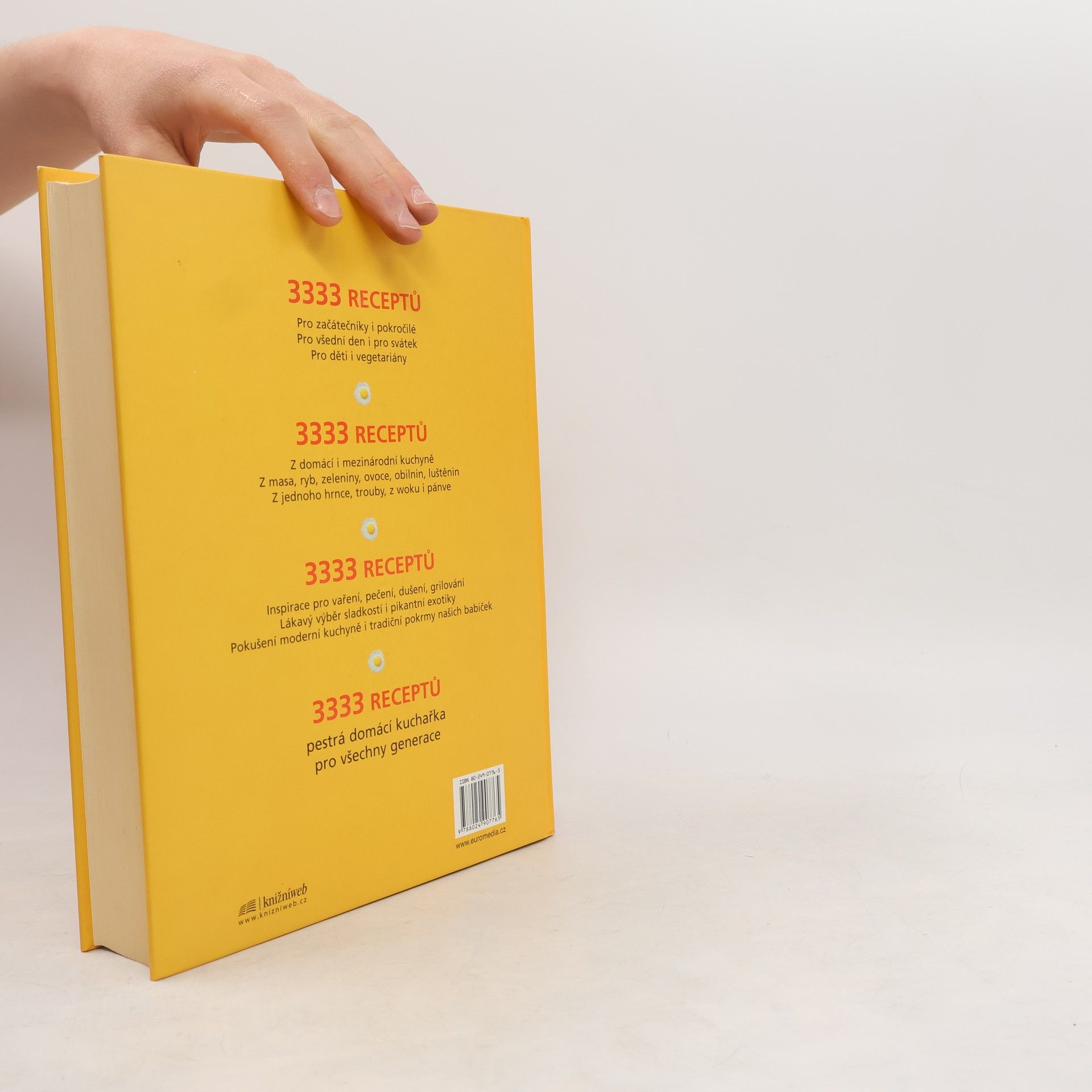 3333 receptů Pro začátečníky i pokročilé Pro všední den i pro svátek Pro děti i vegetariány 3333 receptů Z domácí i mezinárodní kuchyně Z masa, ryb, zeleniny, ovoce, obilnin, luštěnin Z jednoho hrnce, trouby, z woku i pánve 3333 receptů Nekonečná inspirace pro vaření, pečení, dušení, grilování Lákavý výběr sladkostí i pikantní exotiky Pokušení moderní kuchyně i tradiční pokrmy našich babiček 3333 receptů - pestrá domácí kuchařka pro všechny generace.
