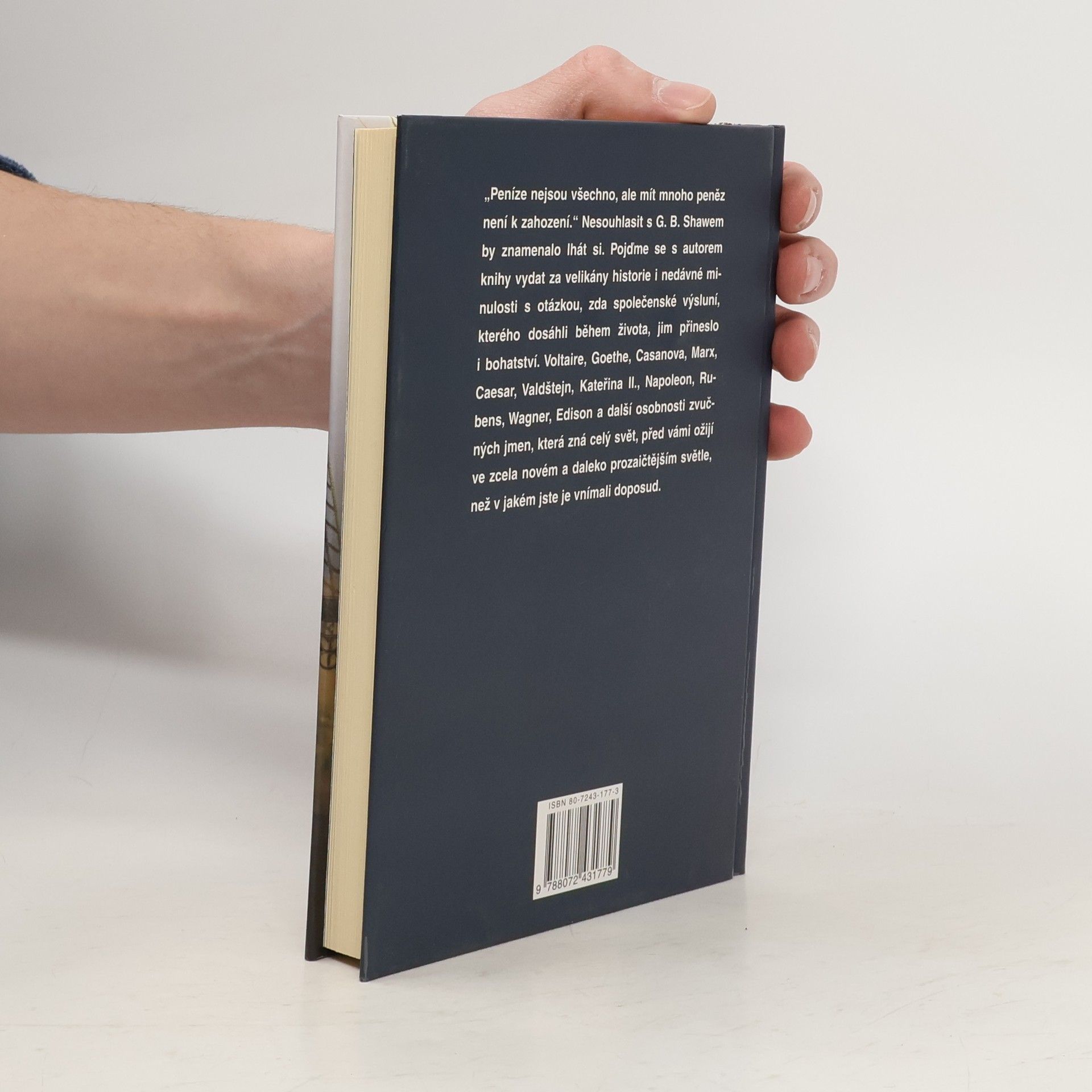Bohatství i chudoba velkých umělců, státníků a objevitelů Vyprávění o tom, jak ovlivnilo velké bohatství či chudoba některé slavné historické osobnosti. Voltaire, Goethe, Casanova, Marx, Caesar, Valdštejn, Napoleon, Edison a další slavná jména, která zná celý svět. Přinesla jim sláva i peníze a bohatství? Uměli si majetek udržet a rozmnožit, měli vedle talentu a fantazie i podnikatelské a organizační schopnosti, nebo nedokázali s penězi zacházet? Ojedinělý pohled na velké osobnosti lidských dějin, který odkrývá i jejich lidské slabosti a ukazuje je ze zcela prozaické, úplně jiné stránky než obvykle.