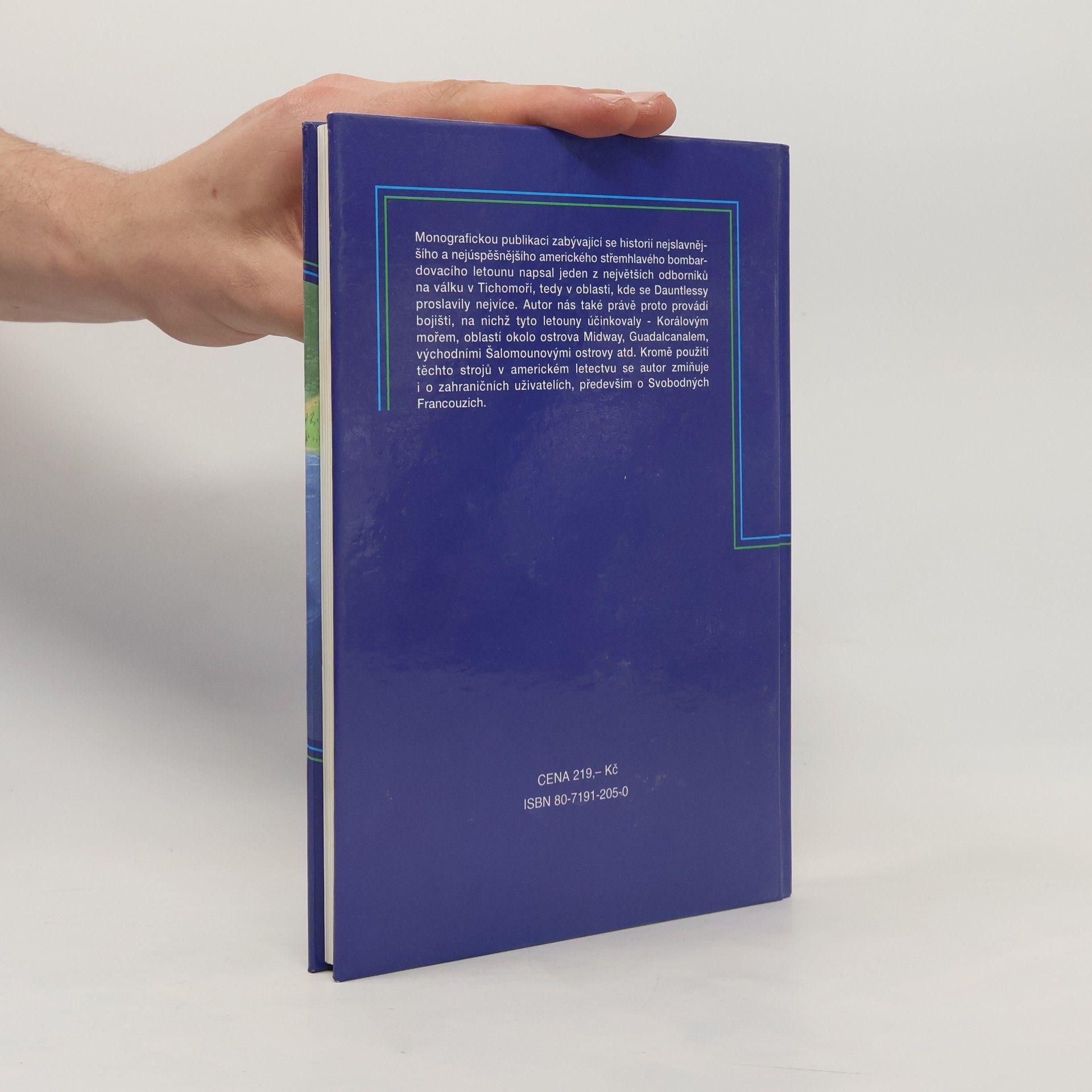 Monografickou publikaci zabývající se historií nejslavnějšího a nejúspěšnějšího amerického střemhlavého bombardovacího letounu napsal jeden z největších odborníků na válku v Tichomoří, tedy v oblasti, kde se Dauntlessy proslavily nejvíce. Autor nás také právě proto provádí bojišti, na nichž tyto letouny účinkovaly - Korálovým mořem, oblastí okolo ostrova Midway, Guadalcanalem, východními Šalamounovými ostrovy atd. Kromě použití těchto strojů v americkém letectvu se autor zmiňuje i o zahraničních uživatelích, především o Svobodných Francouzích.