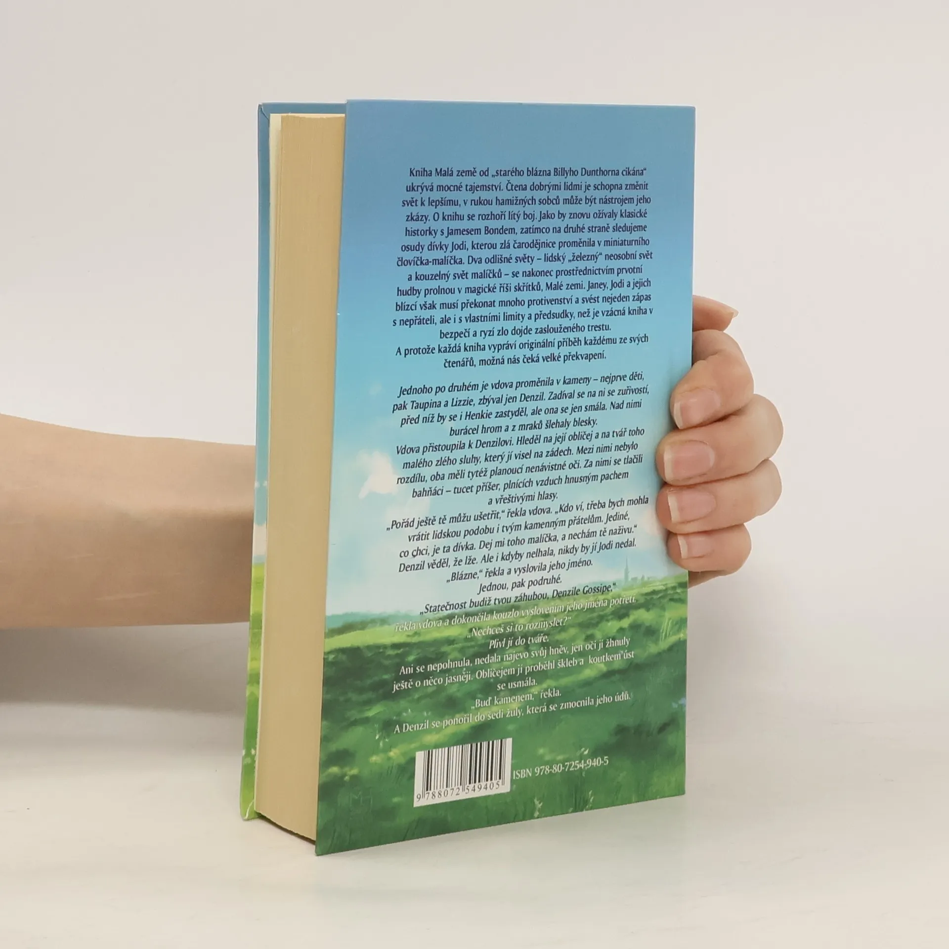 Kniha Malá země od „starého blázna Billyho Dunthorna cikána“ ukrývá mocné tajemství. Čtena dobrými lidmi je schopna změnit svět k lepšímu, v rukou hamižných sobců může být nástrojem jeho zkázy. O knihu se rozhoří lítý boj. Jako by znovu ožívaly klasické historky s Jamesem Bondem, zatímco na druhé straně sledujeme osudy dívky Jodi, kterou zlá čarodějnice proměnila v miniaturního človíčka-malíčka. Dva odlišné světy lidský železný neosobní svět a kouzelný svět malíčků se nakonec prostřednictvím prvotní hudby prolnou v magické říši skřítků, Malé zemi. Janey, Jodi a jejich blízcí však musí překonat mnoho protivenství a svést nejeden zápas s nepřáteli, ale i s vlastními limity a předsudky, než je vzácná kniha v bezpečí a ryzí zlo dojde zaslouženého trestu. A protože každá kniha vypráví originální příběh každému ze svých čtenářů, možná nás čeká velké překvapení.